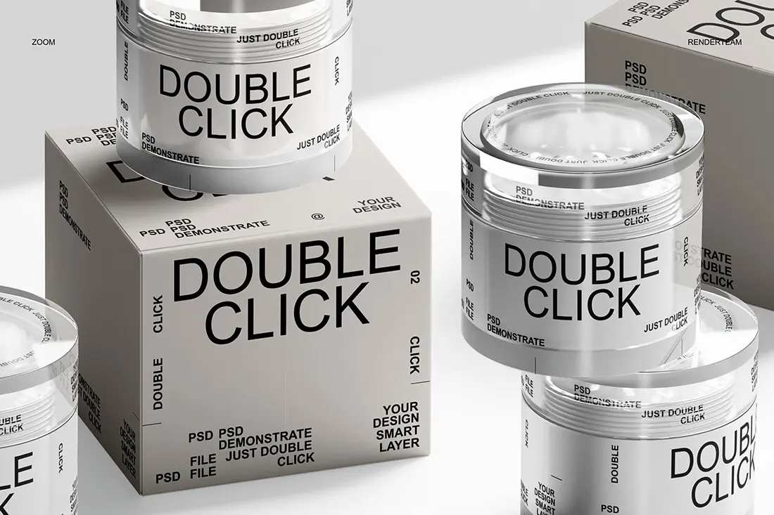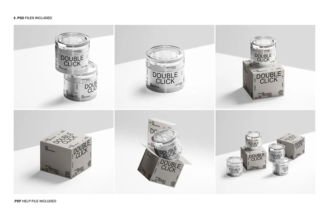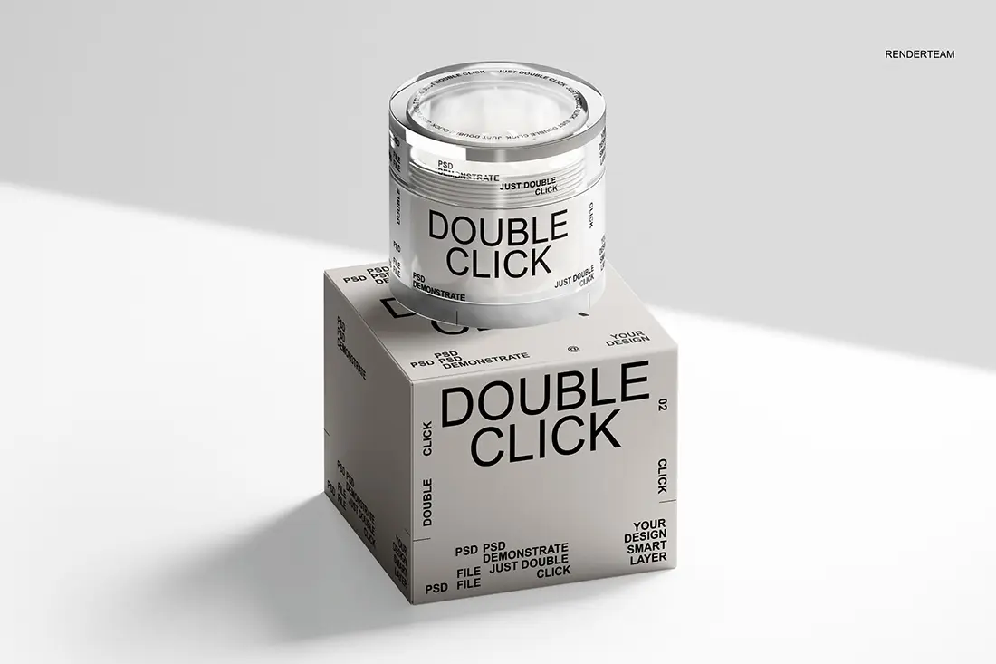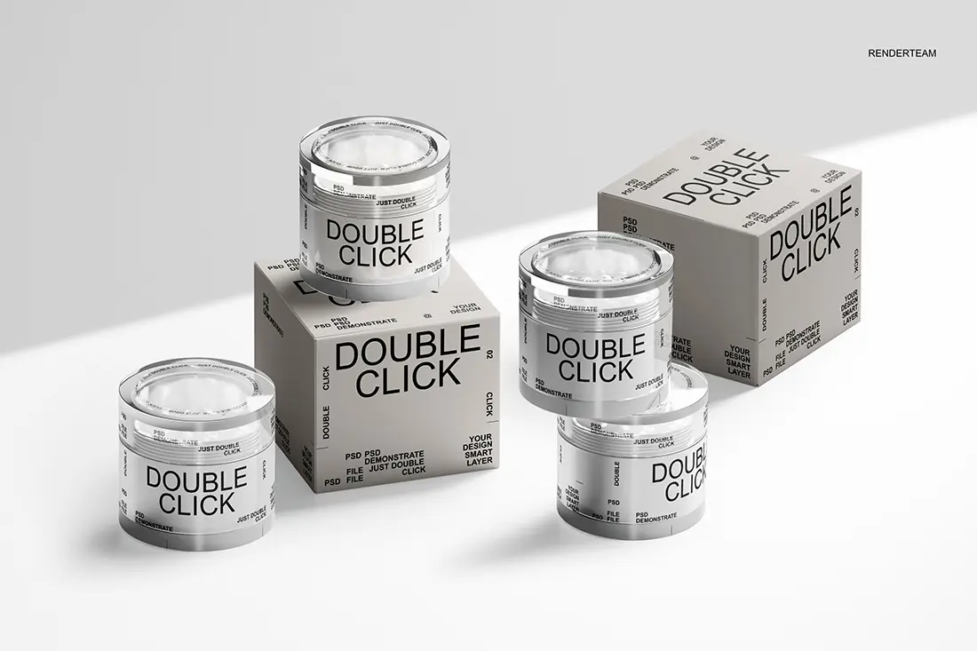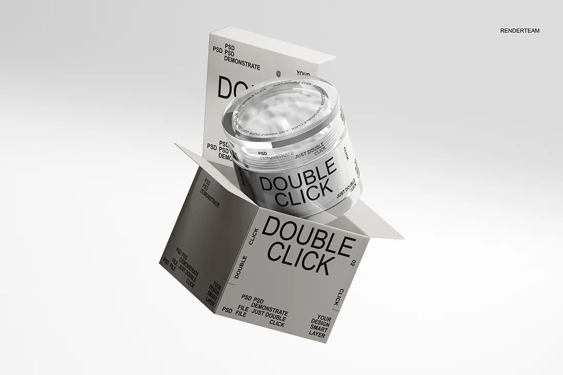 化妆品罐和盒子样机集 – 分层、可编辑的 .psd 文件,通过编辑智能对象和颜色层准备展示您的自定义设计。