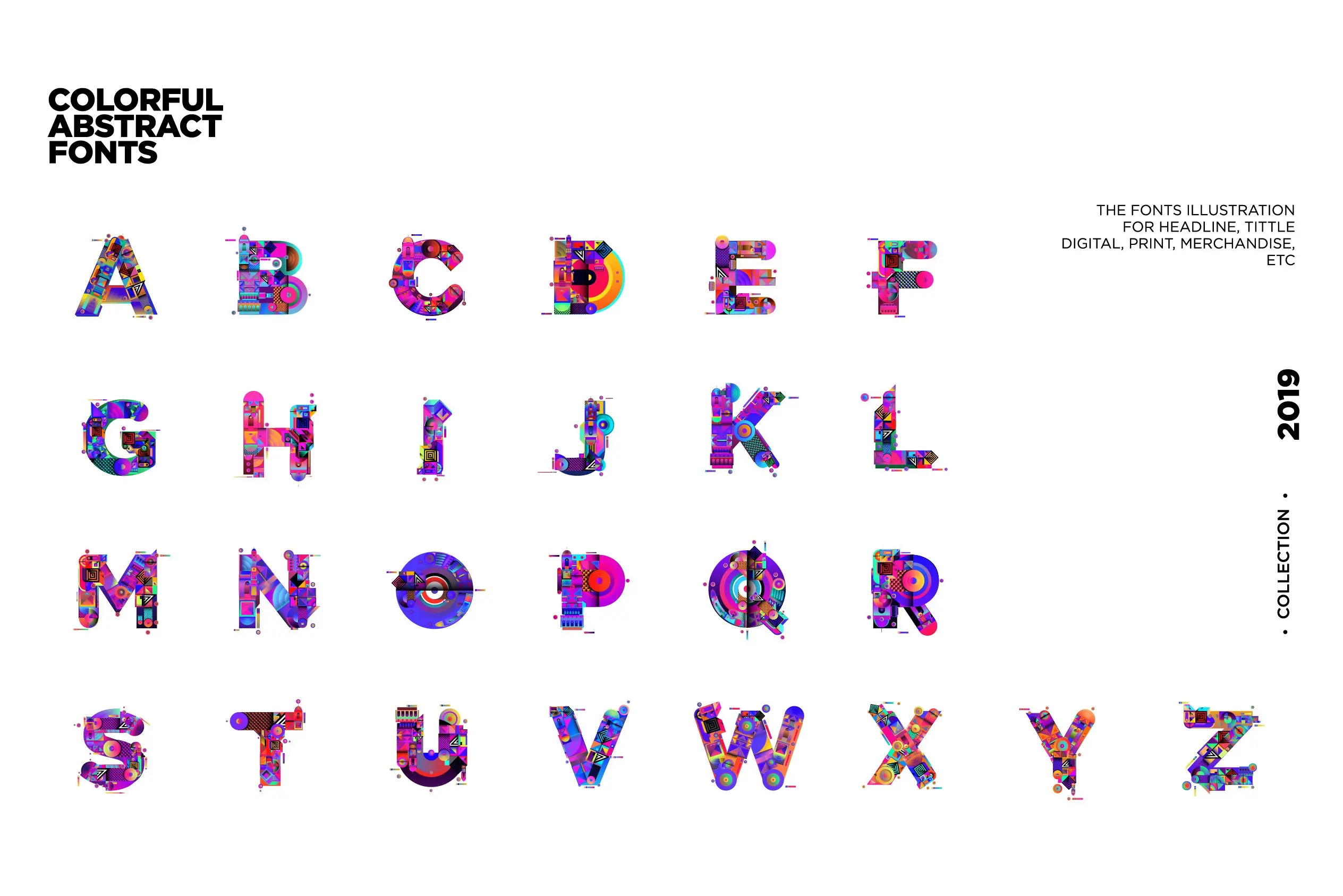 VColorful Abstract Font Illustration 不是字体格式,而是矢量格式。此字体插图可用于海报、传单、网页图形、着陆页、横幅、图标、地图、信息图表、社交媒体、书籍、商品、织物印刷、壁纸、活动工具和其他相关插图目的。该文件是单个压缩文件,大小为 139.46 MB。希望你喜欢它 :)。