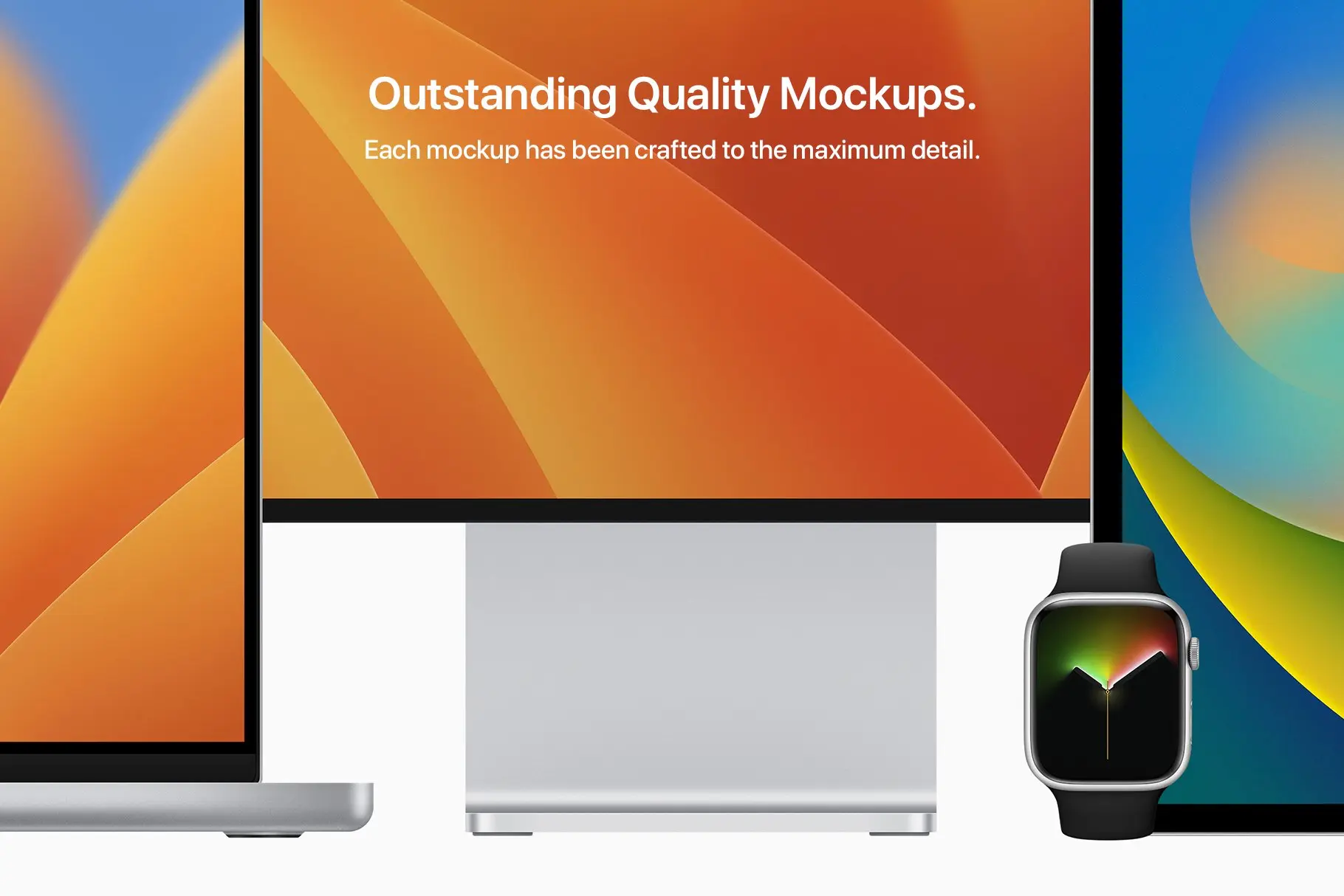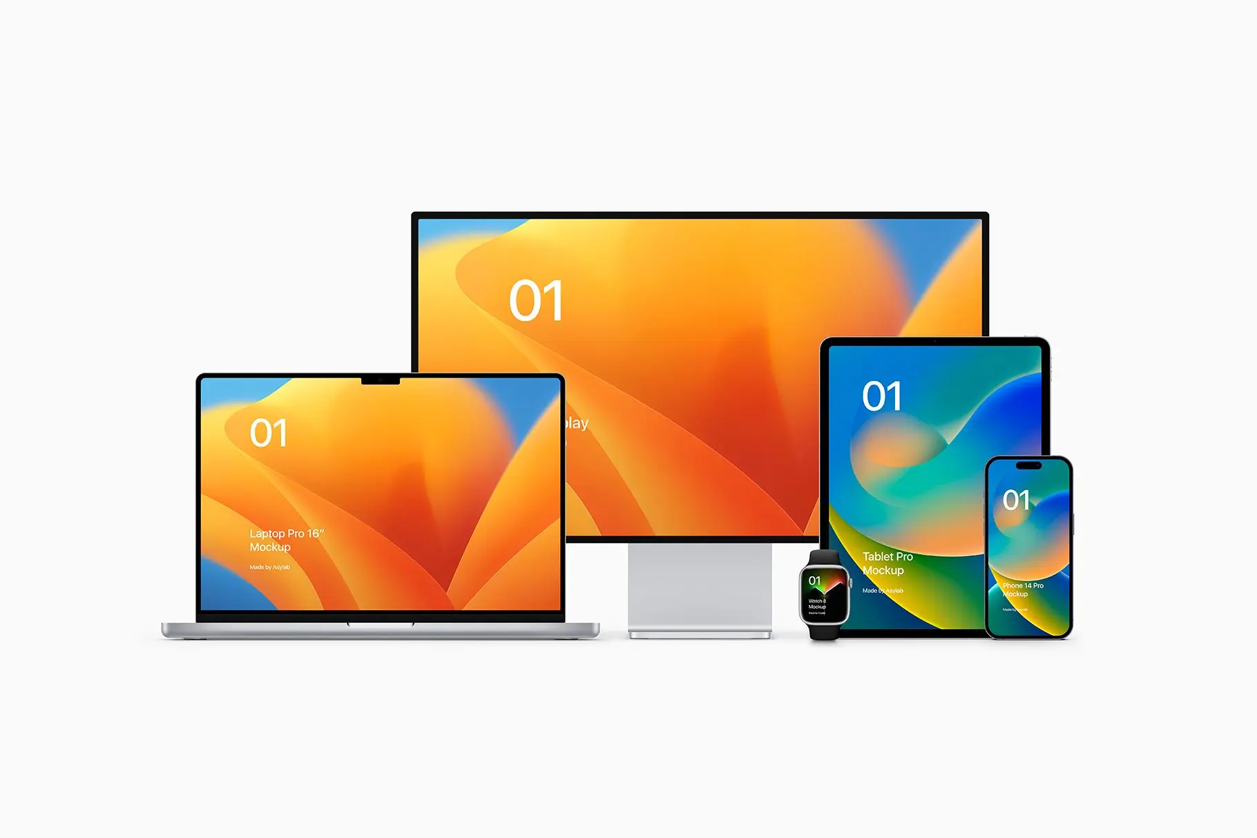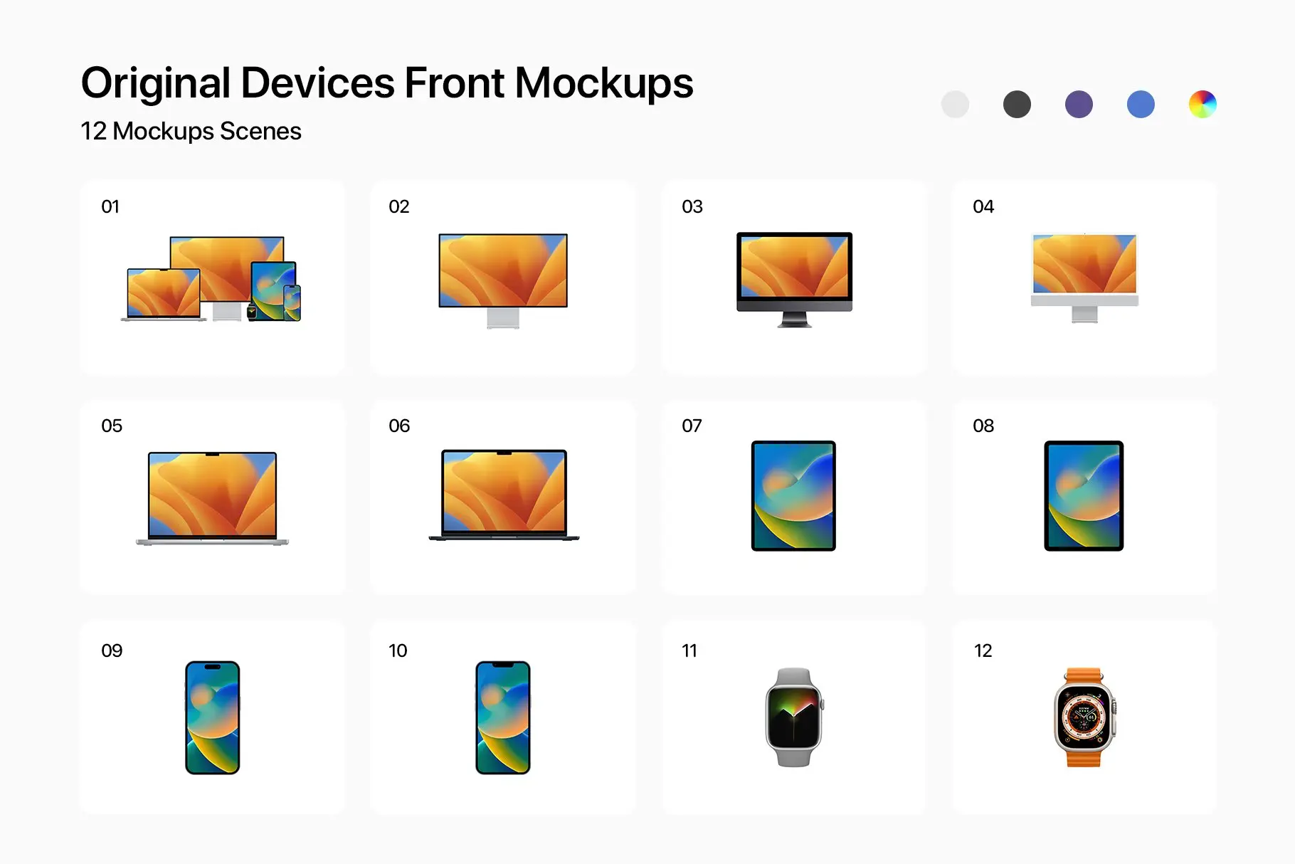 原始 12 台设备样机 – 捆绑包 2023 – Photoshop 和 Figma。