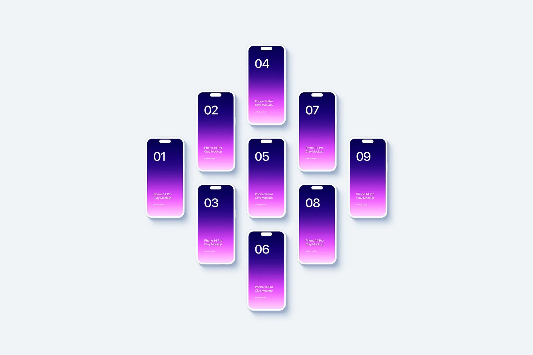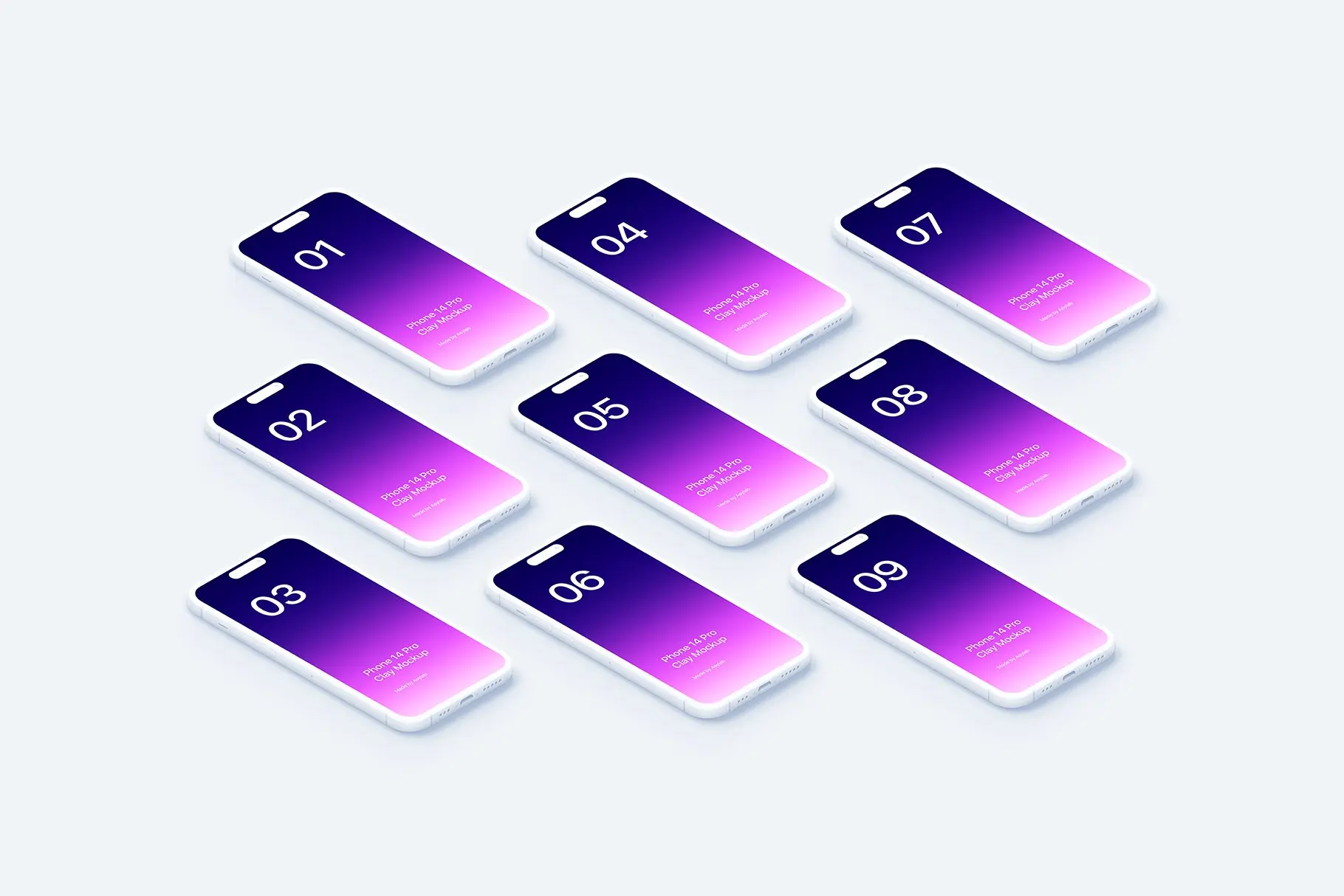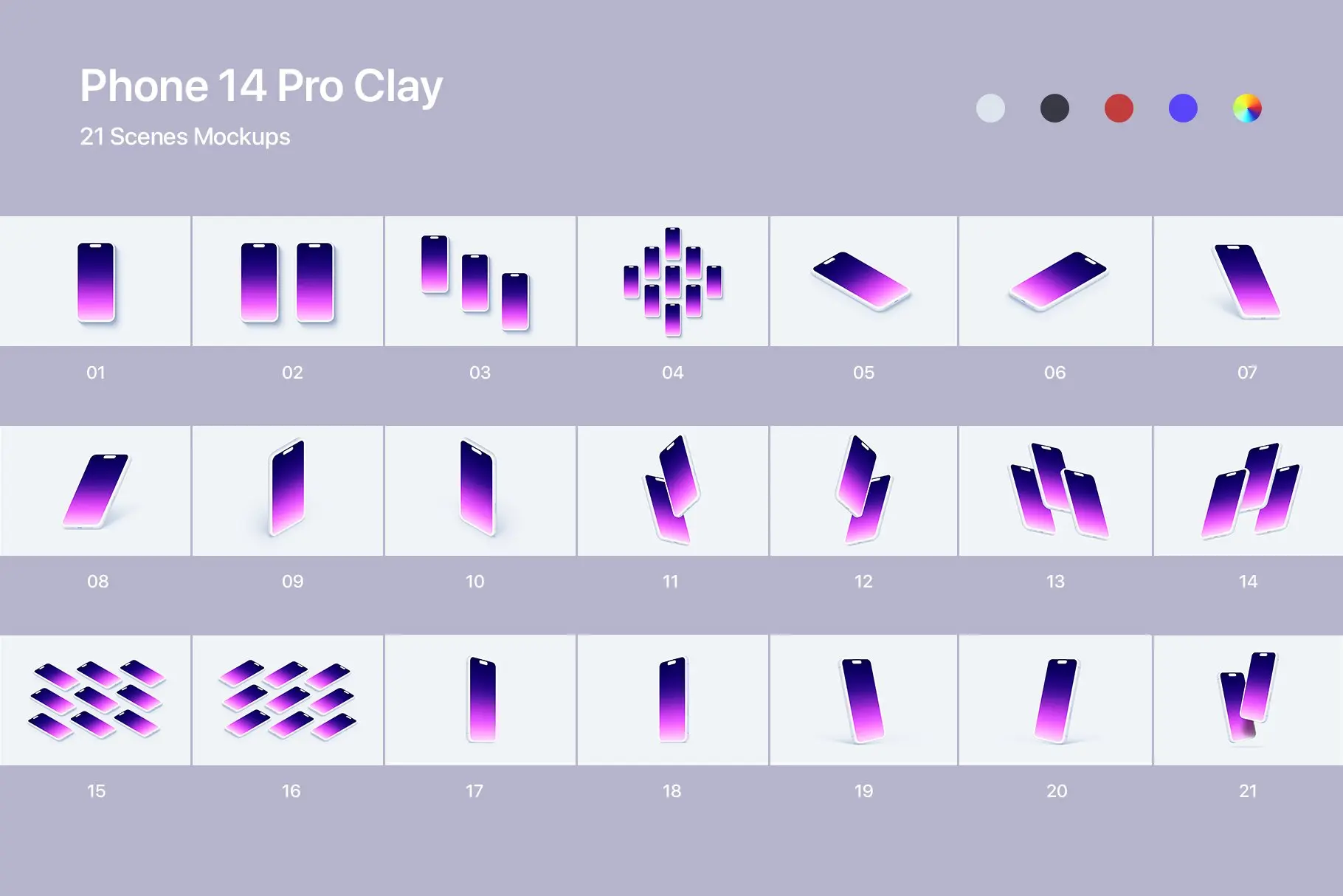 Phone 14 Pro – 21 个粘土模型场景 – PSD