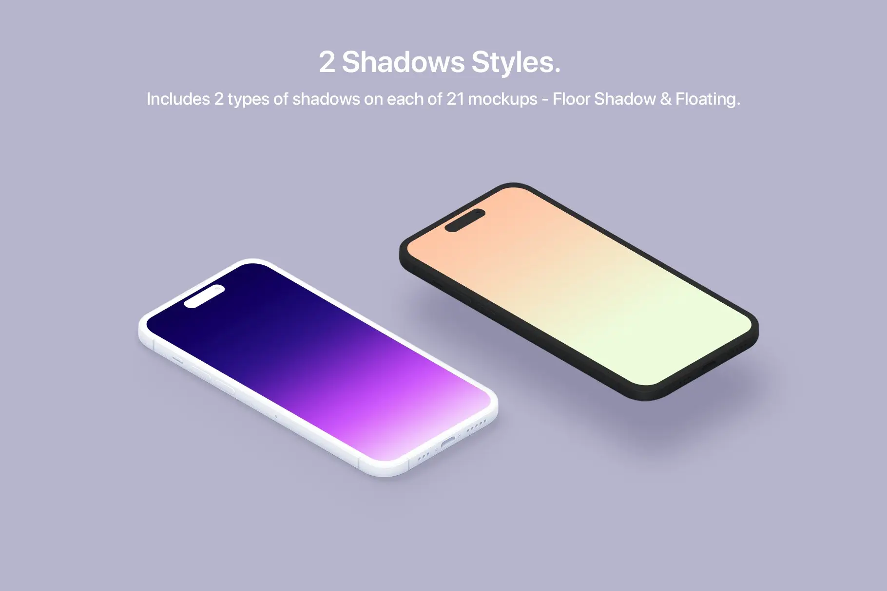 - 每个 PSD Mockup 内部都有 2 个不同的阴影(地板阴影和浮动阴影)。