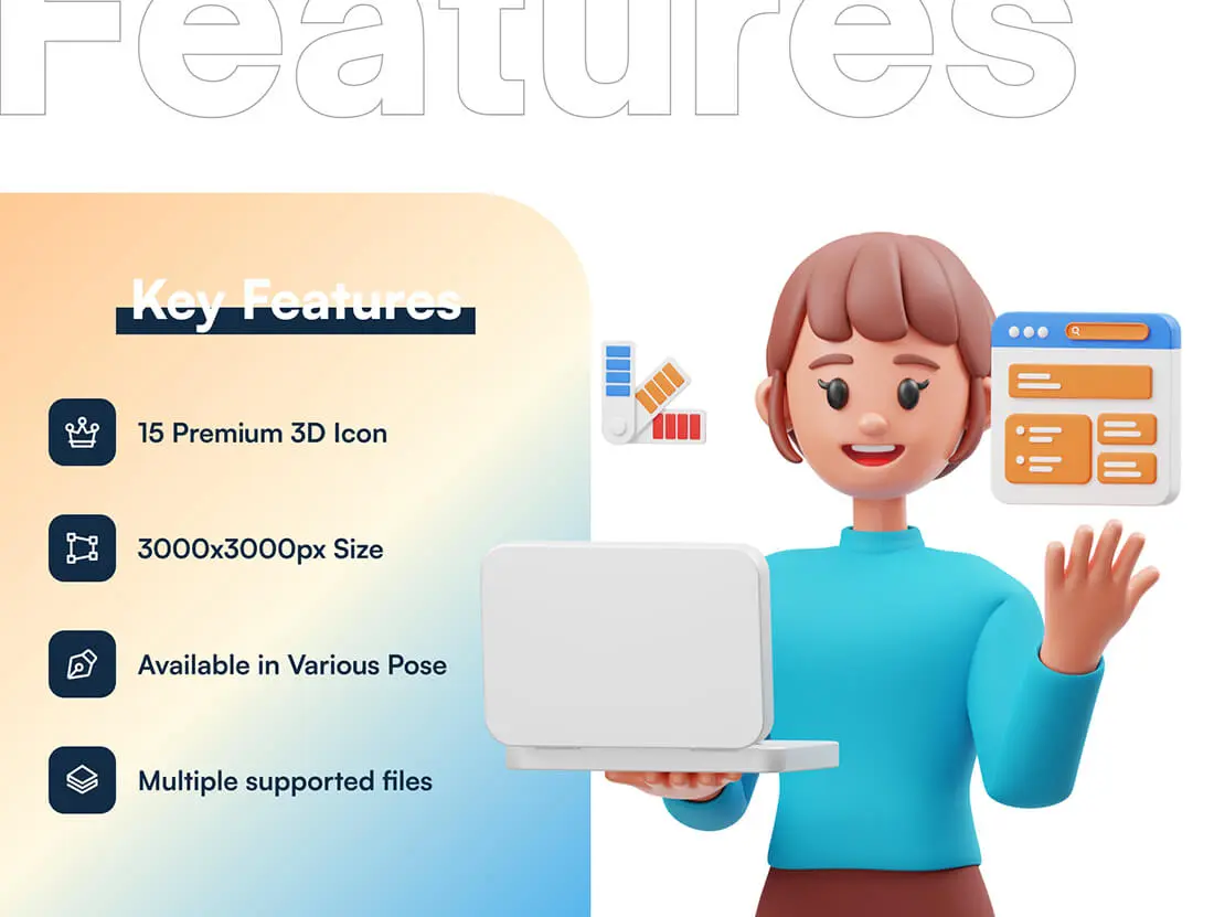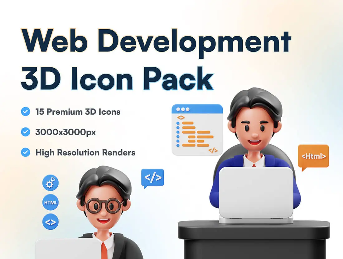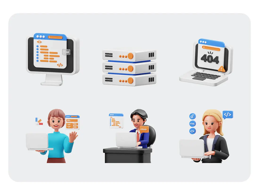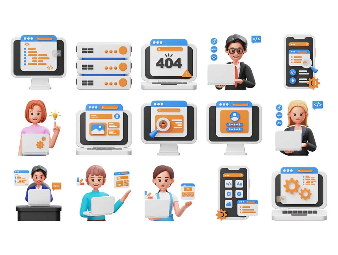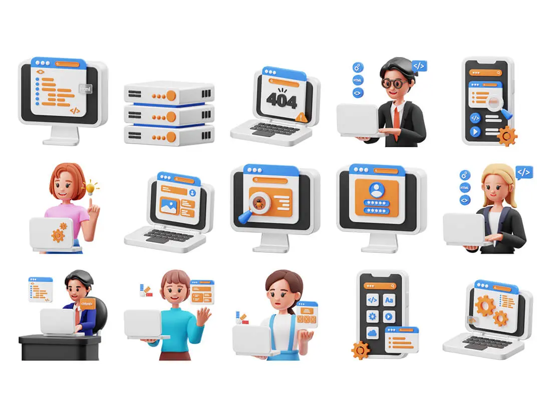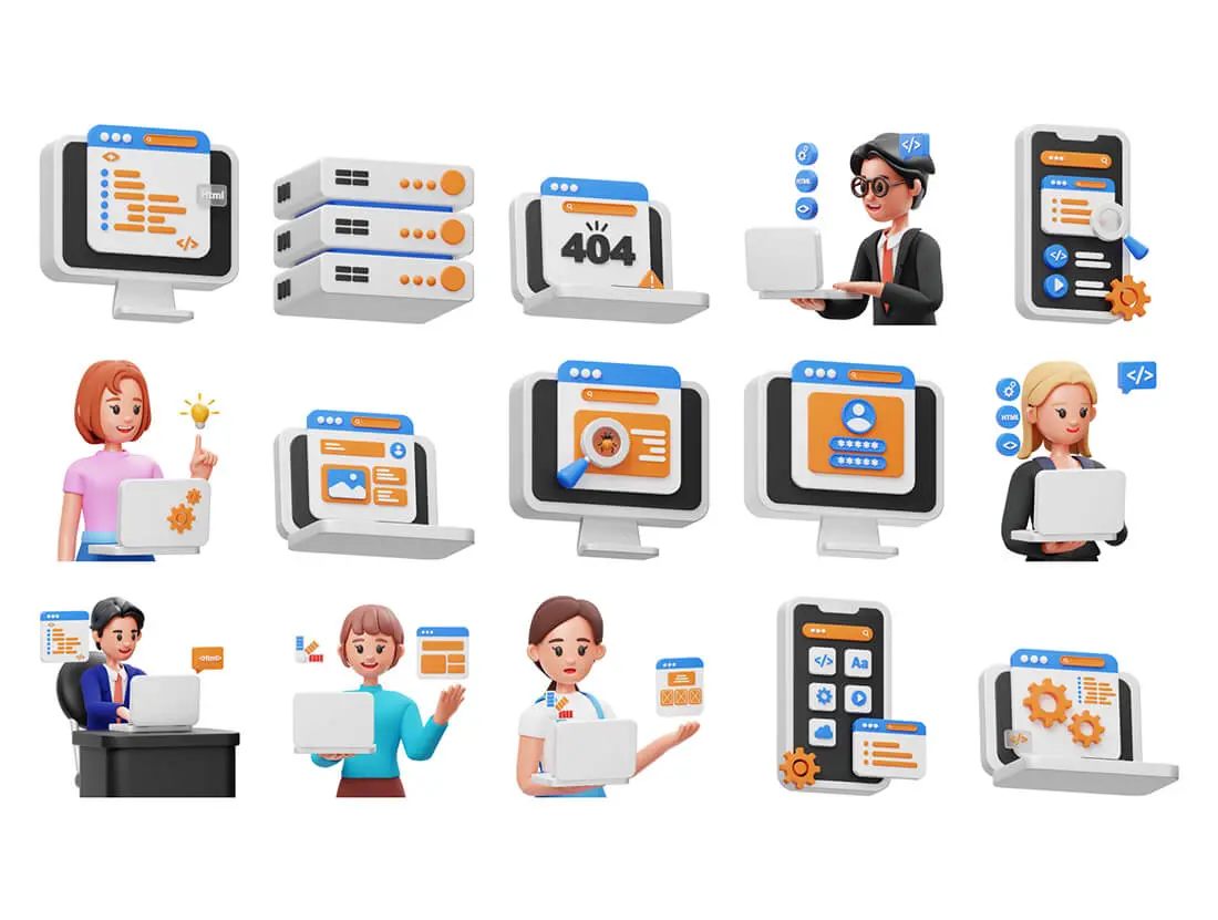15 个现成的 3D Web 开发插图文件对象,适用于网站、移动应用程序等。使用 3D 资产增强您的设计。