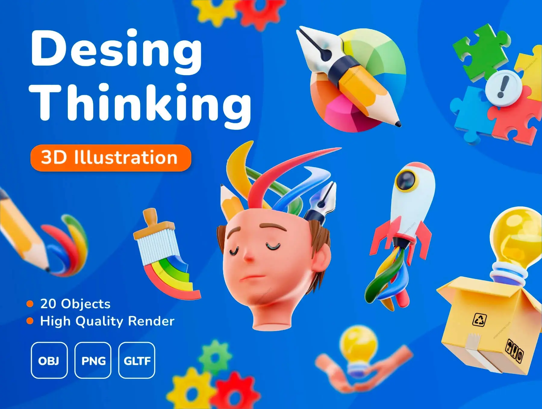 - .OBJ 格式的 20 个 3D 设计思维图标集