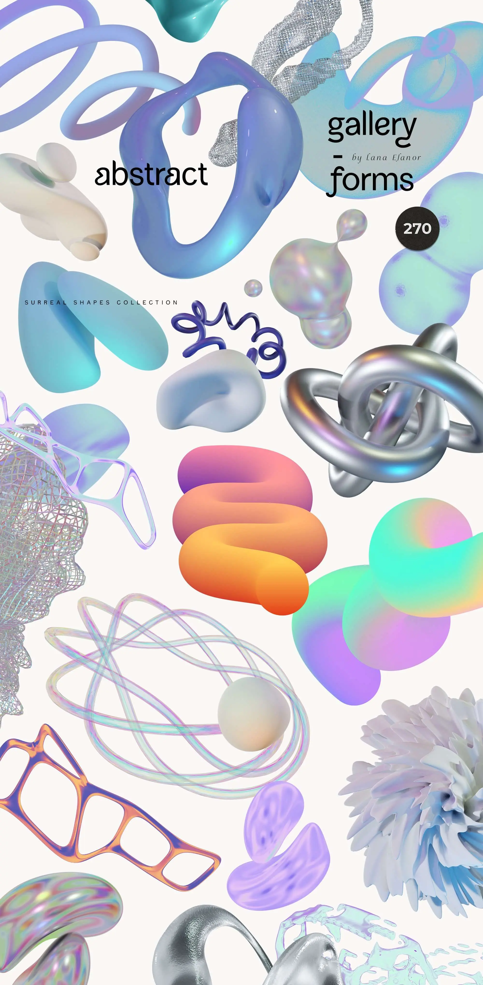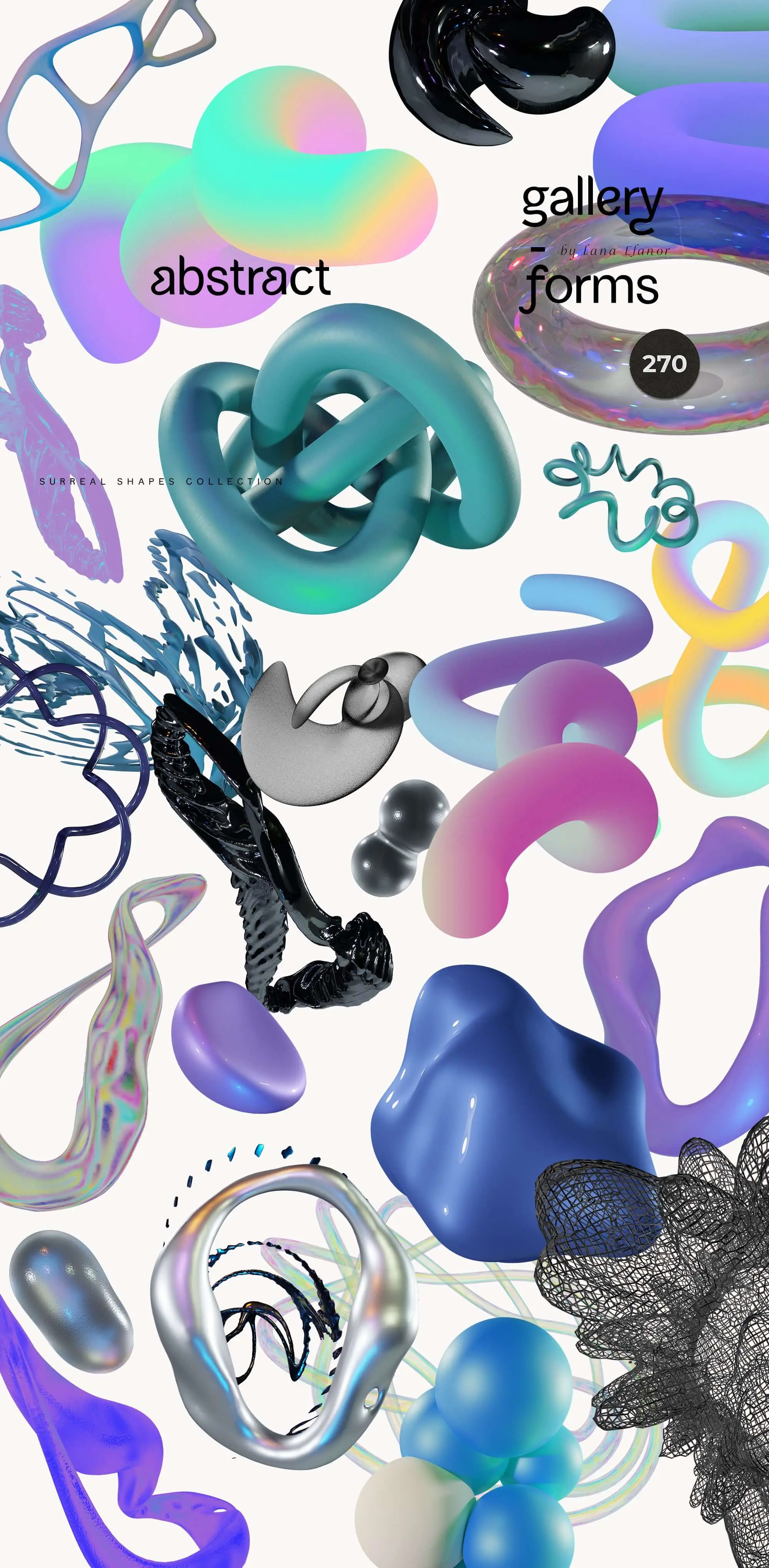 混合、演奏和实验!各种抽象形式、渐变、超现实、几何、逼真的 3D 渲染和有机形状。用深思熟虑的艺术创作您的后现代海报、未来主义墙壁艺术版画、品牌标识和社交媒体内容。让您的设计充满活力、生动和引人注目。
