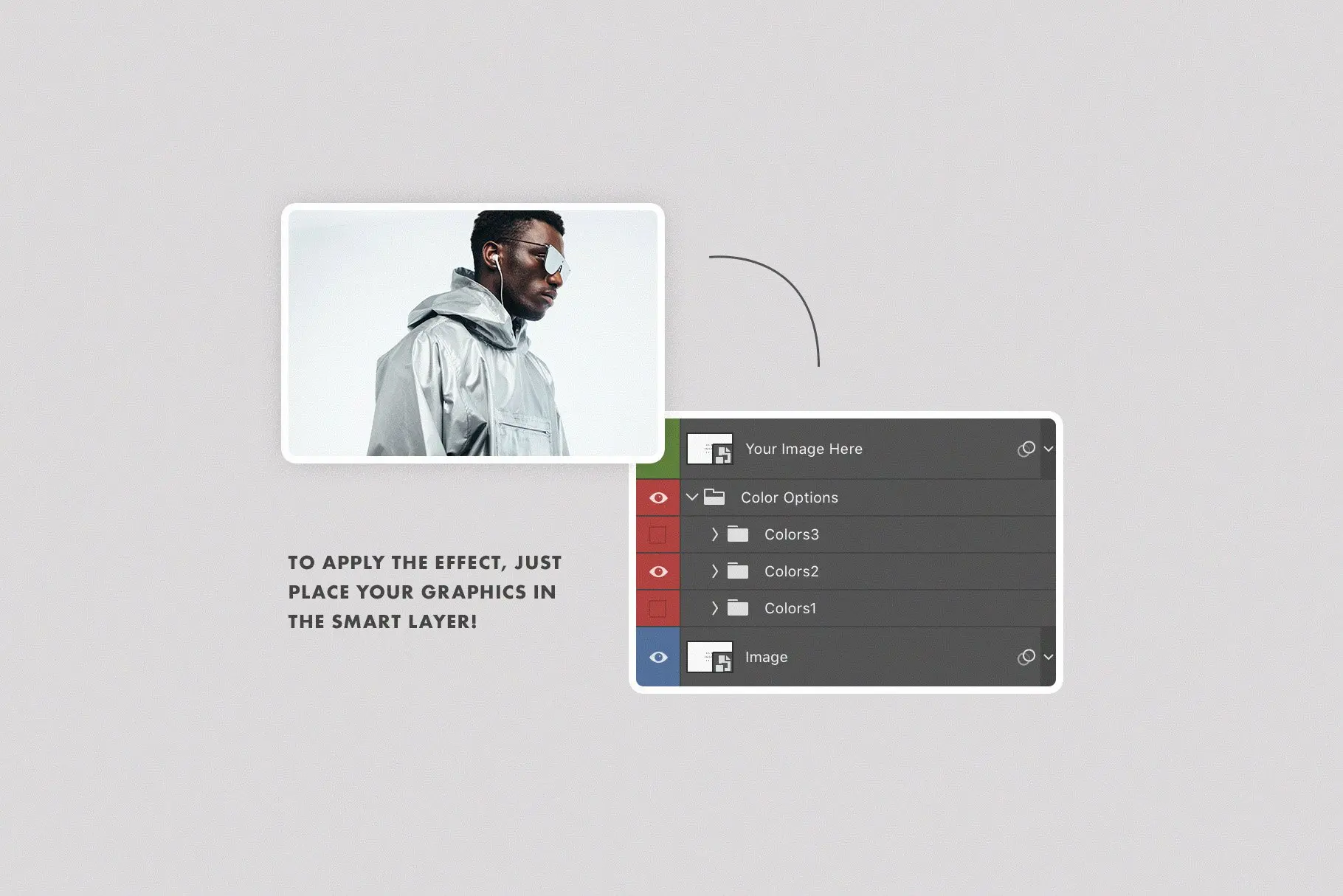 该程序包包含一个PSD文件,该文件作为一个智能对象组成,可以在三种配色方案之间进行切换。您可以应用每种效果,并检查其与图形的匹配方式。