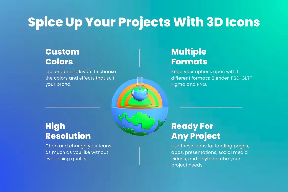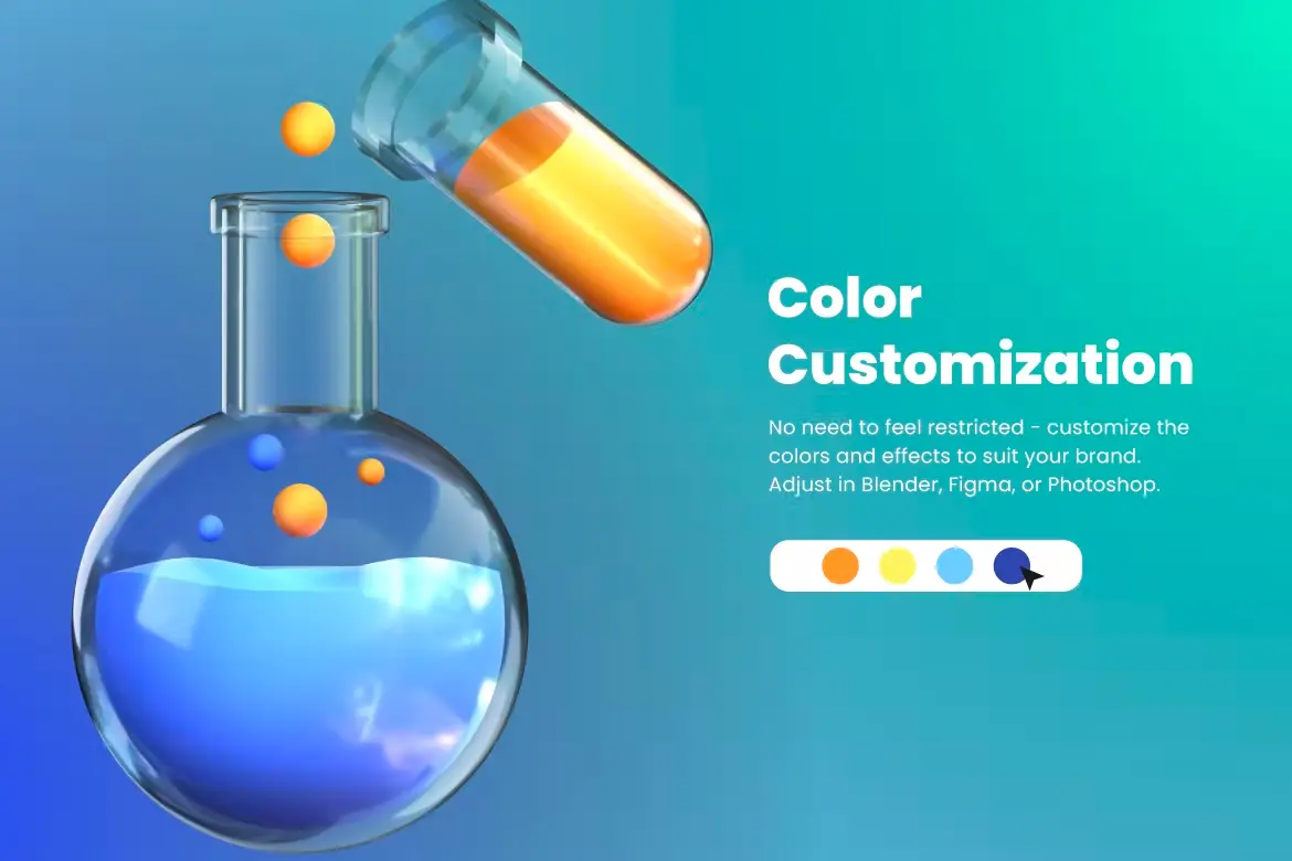 除了独特的 3D 设计外,这些科学图标还提供了另一个巨大的好处——您也可以完全自定义它们!更改它们的大小、形状或颜色,使它们非常适合您的项目。享受!