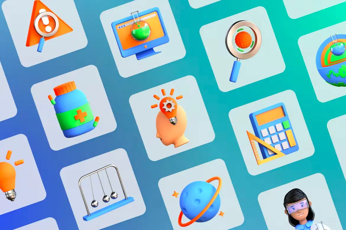 正在从事一个令人兴奋的新科学项目?无论是网站、应用程序还是讲座,我们都可以帮助您吸引人们的注意力。隆重推出30 个 3D 科学图标集。