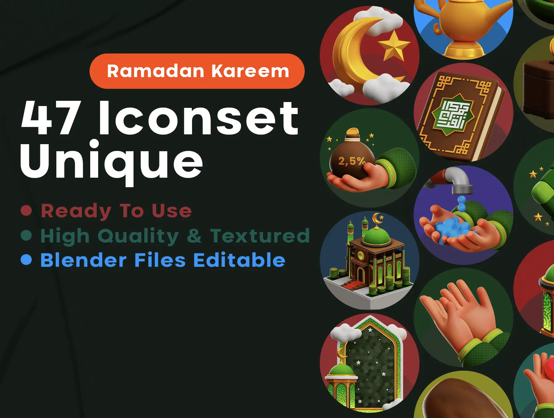 图标 Ramadan Kareem 3D 可用于设计需求、动画、网站设计、ui 界面设计、演示幻灯片、海报、横幅和其他 ✨