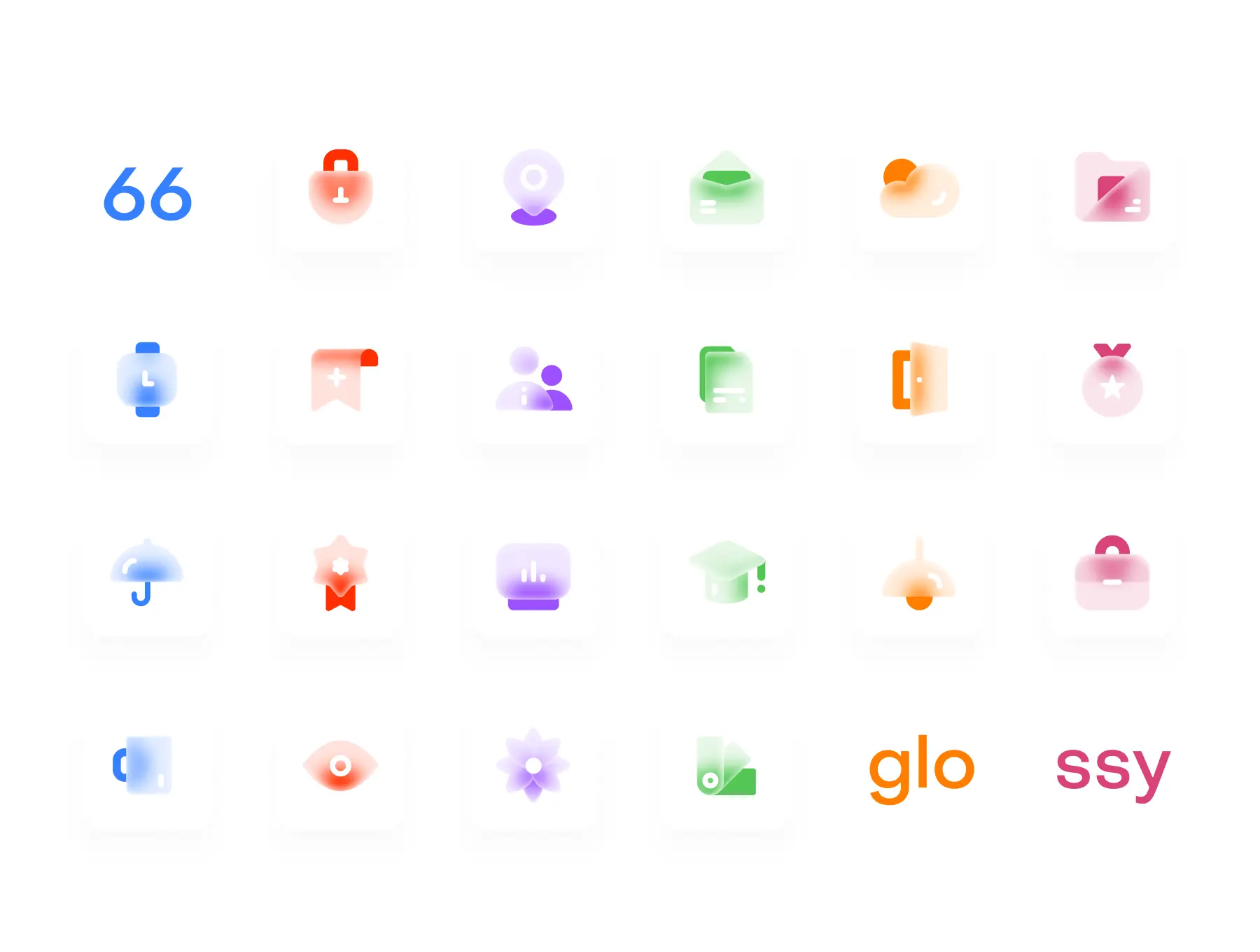 66 个通用主题的光泽 Figma 图标,可以改变您的界面、演示文稿或海报