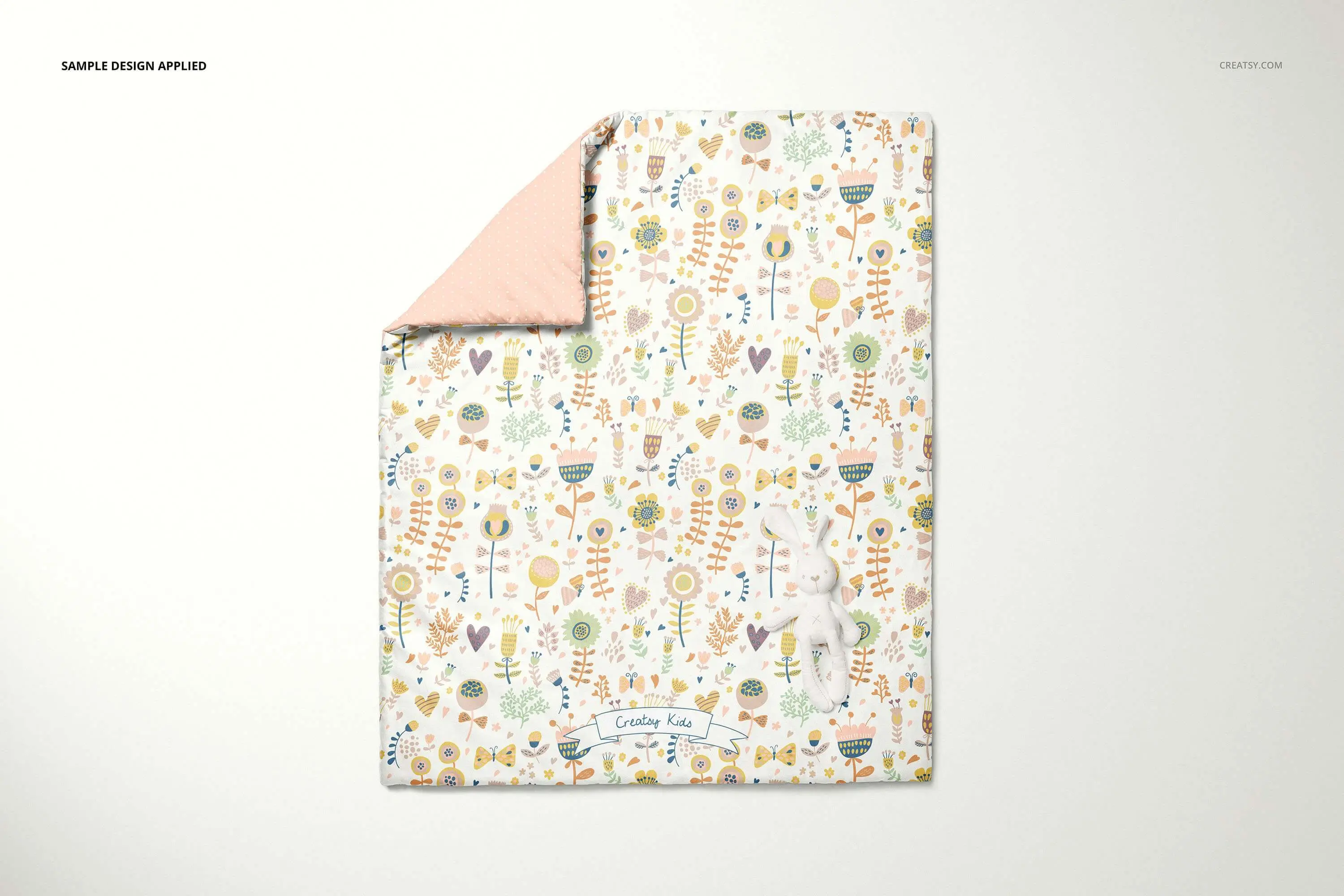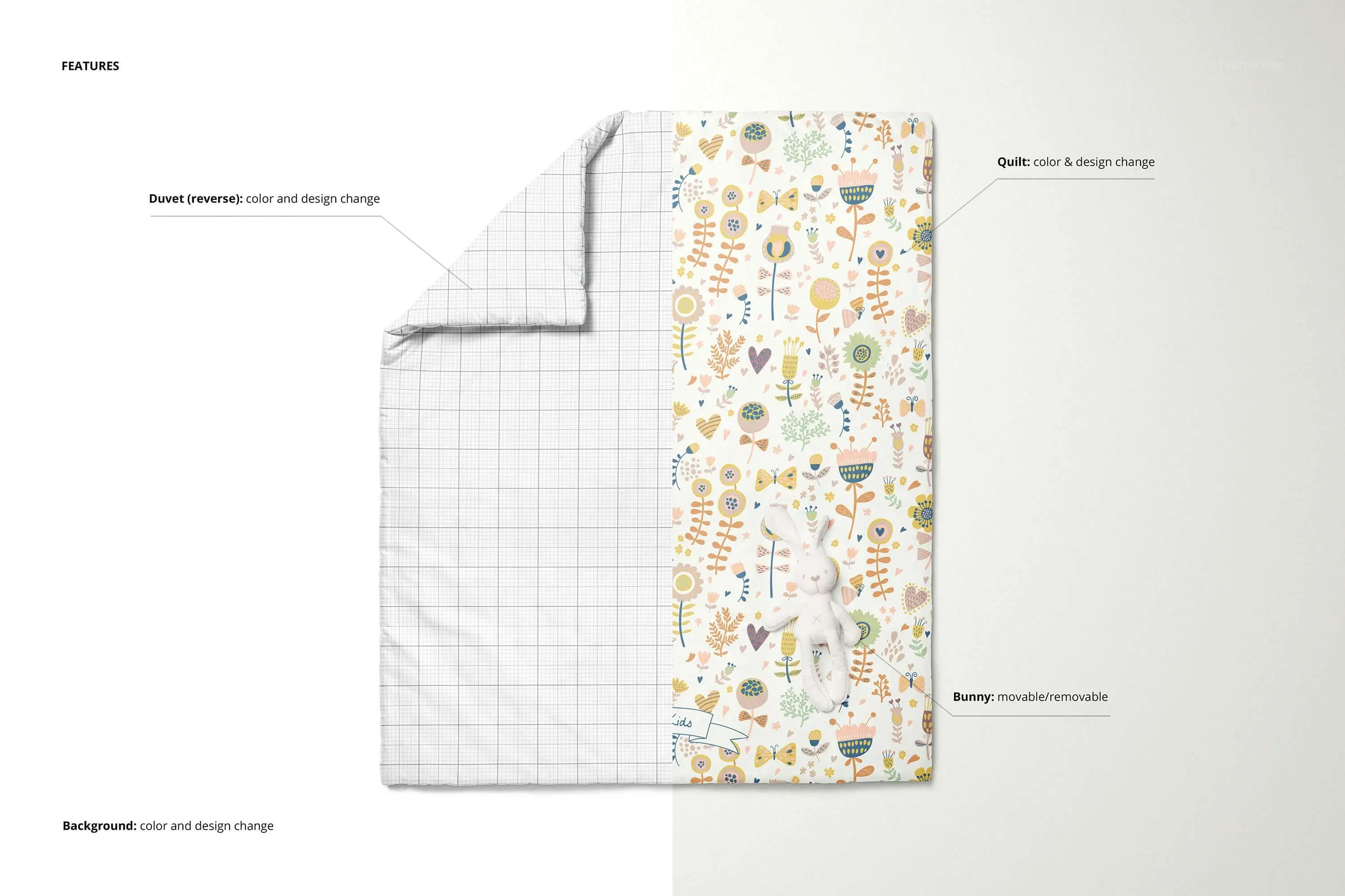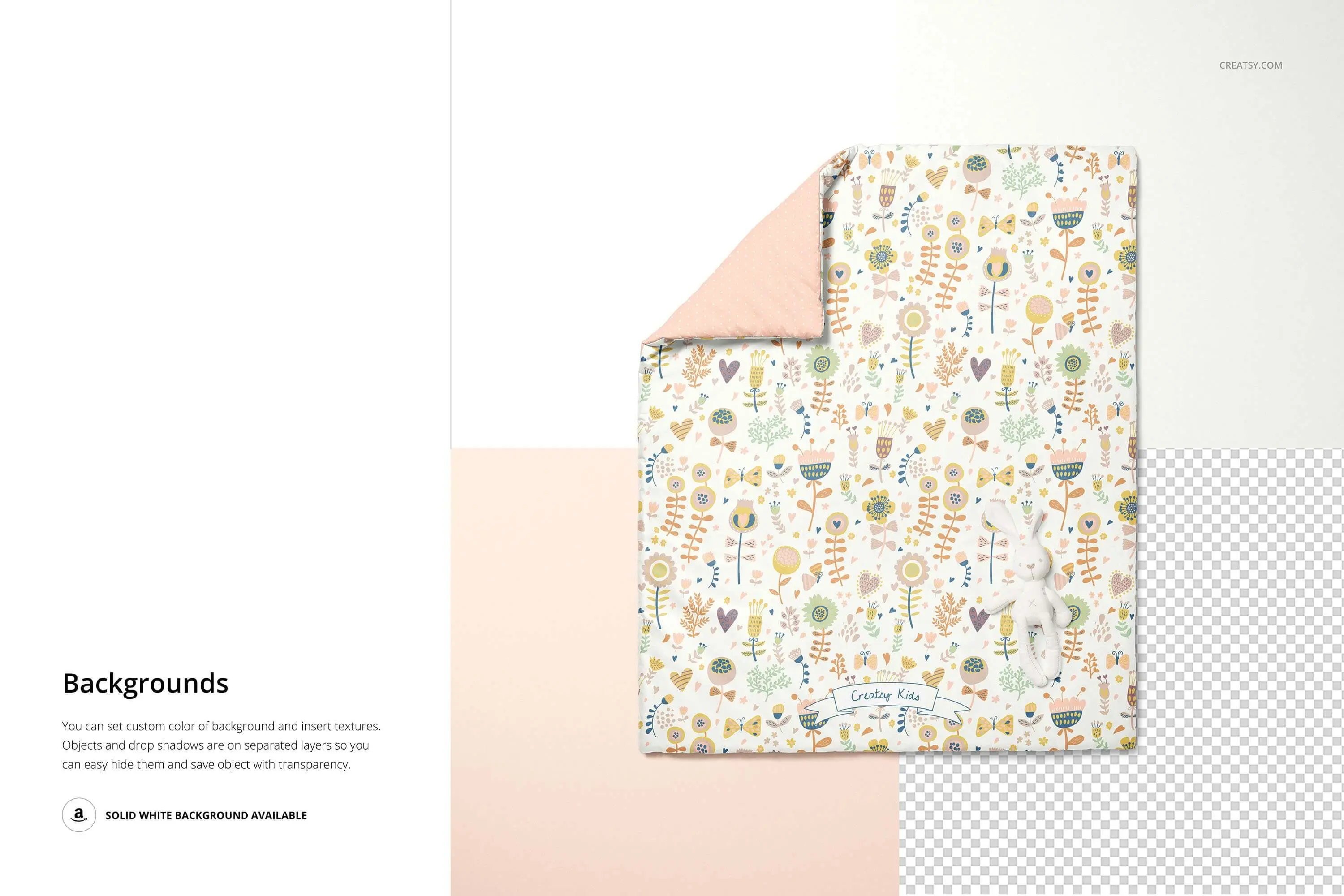 婴儿羽绒被套模板-分层的可编辑.psd文件,通过编辑智能对象和颜色层,准备展示您的自定义设计。