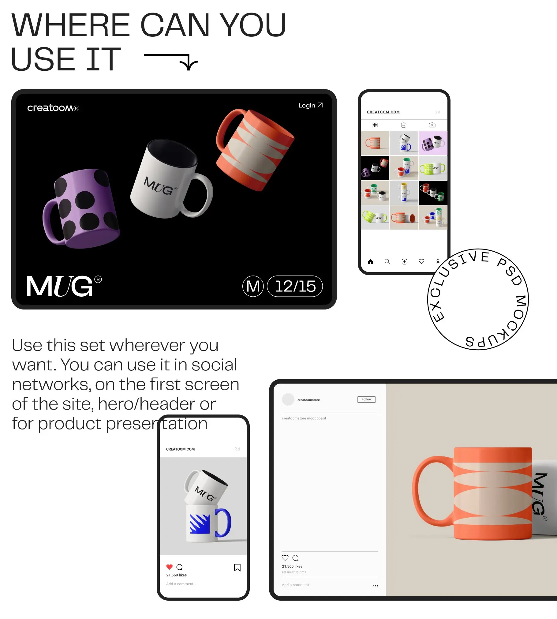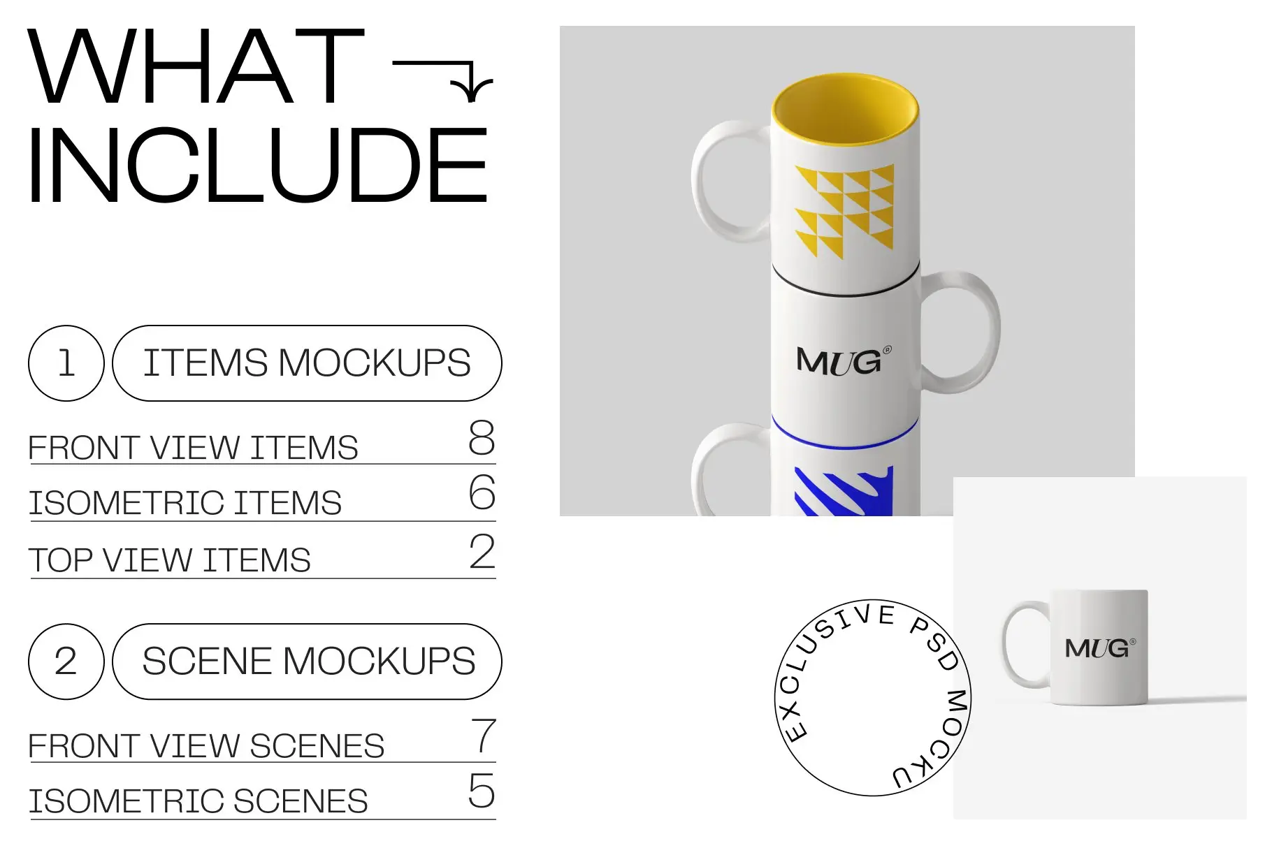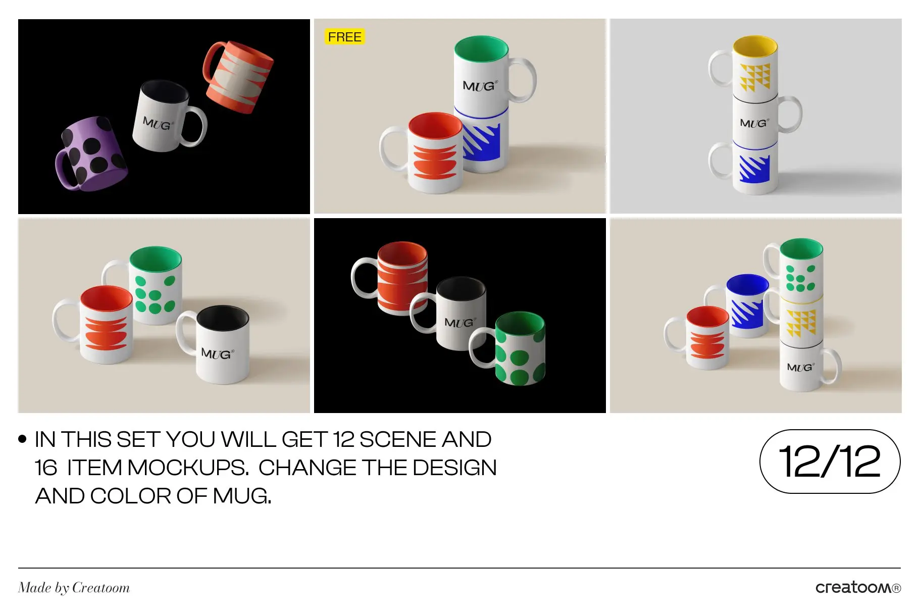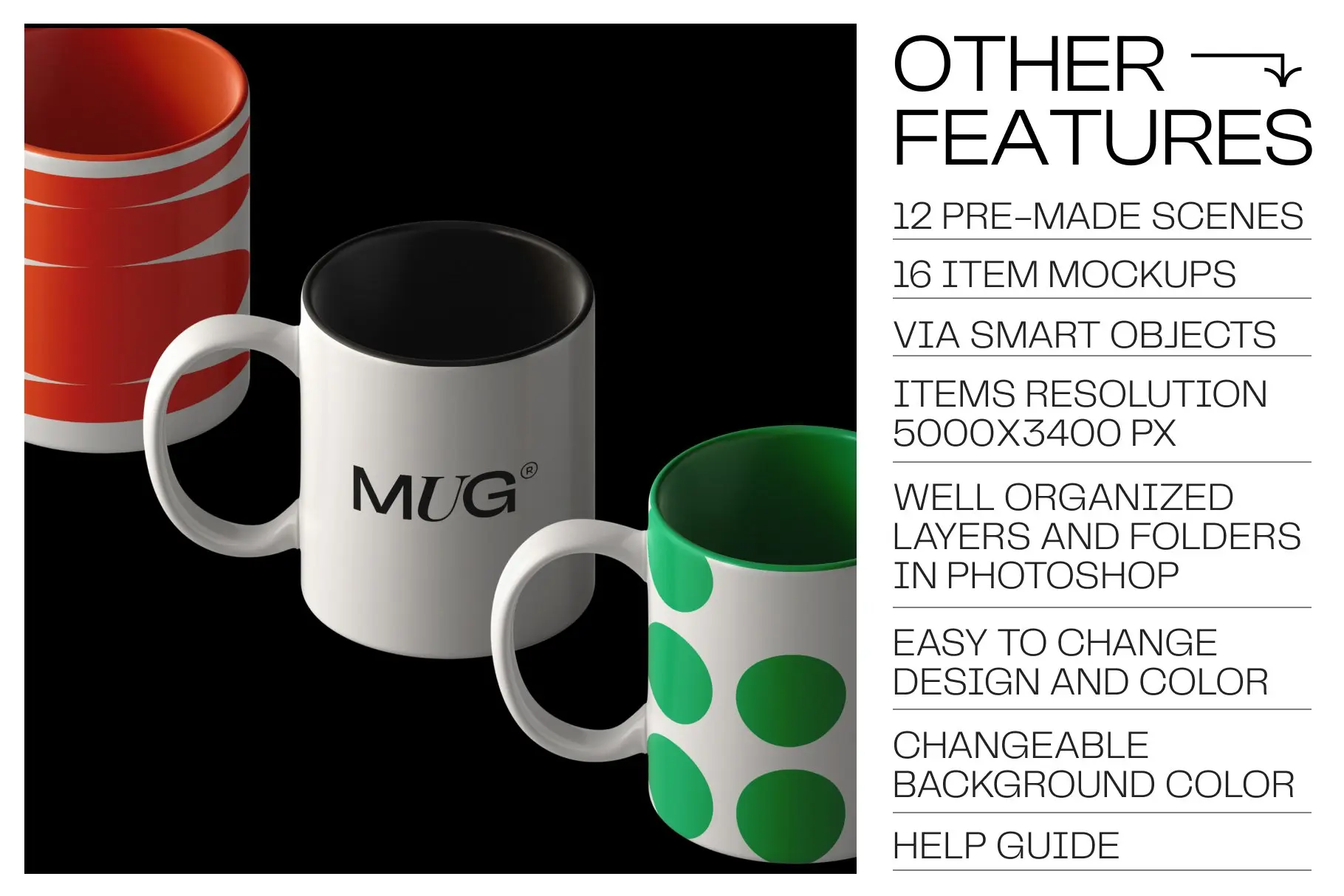 认识一组新的杯子模型。我们以不同的角度创建了这些杯子模型,以便您可以创建更详细的演示。得益于超大分辨率 (4000×4500),您可以近距离展示您的马克杯模型。在此套装中,您将获得 12 个场景和 16 个项目模型。借助智能对象层,只需单击几下即可粘贴您的设计。您可以轻松更改杯子和背景的颜色。