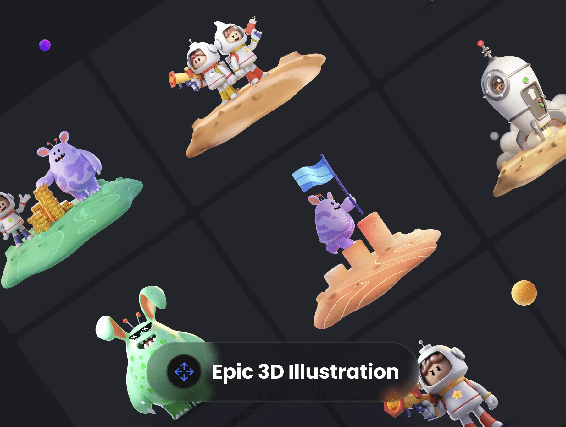 认识 AstroClash,一个功能齐全的 Play-to-Earn 市场工具包,包括可在 Figma 中编辑的独家设计文件以及一组定制的精美 3D 插图。