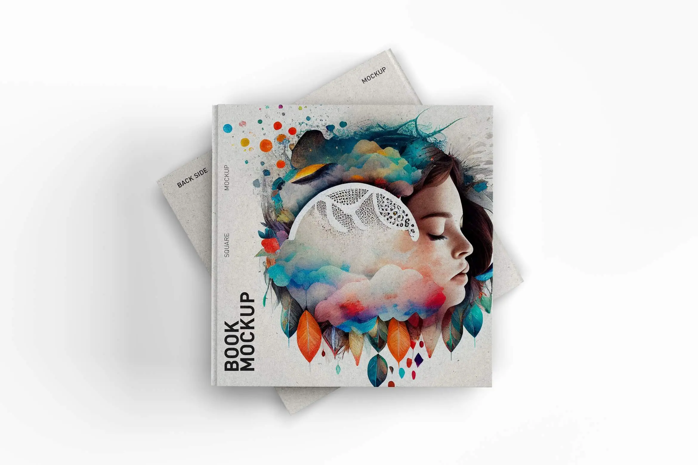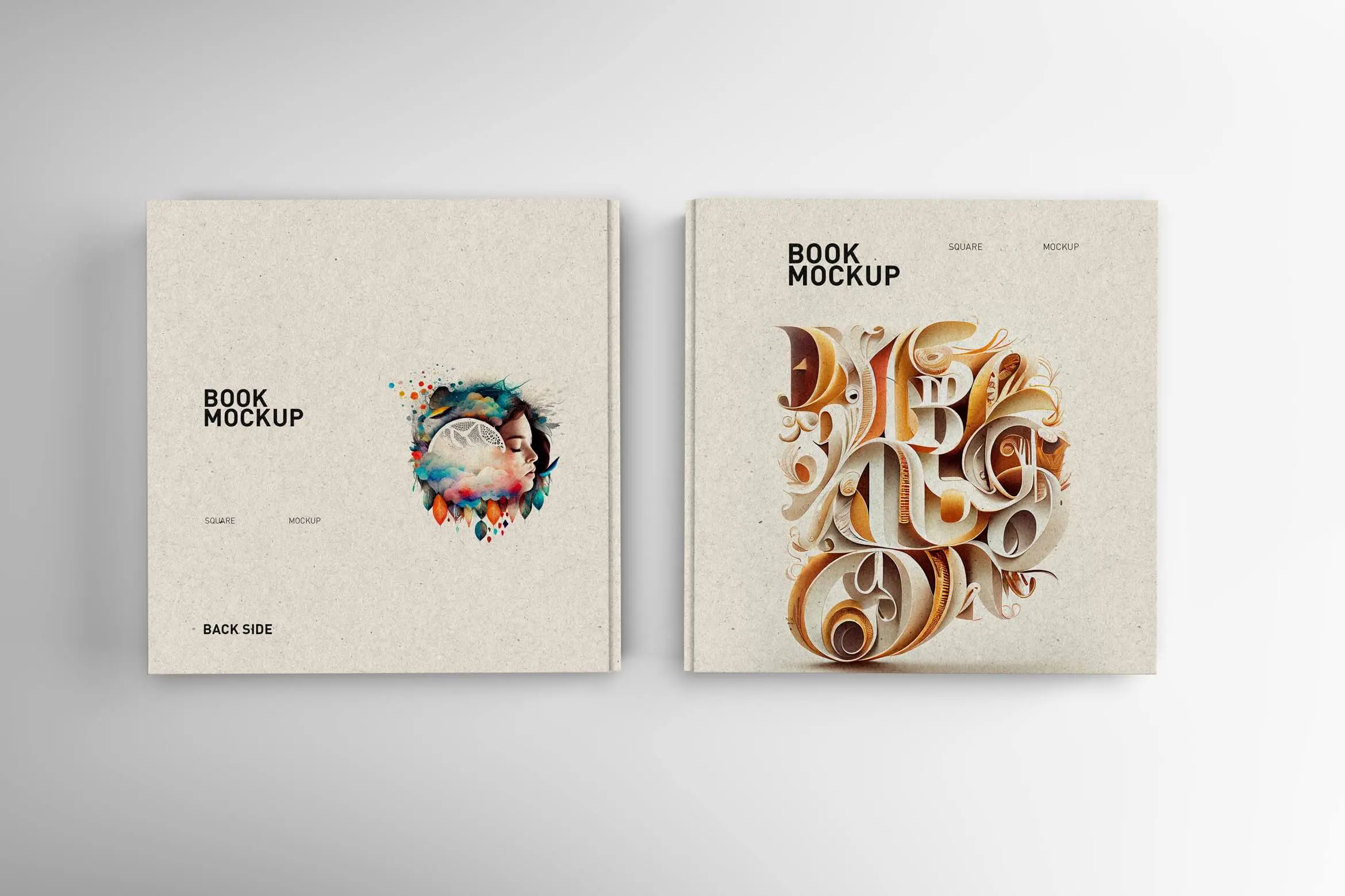 这个方形书籍 PSD 样机是一个高质量和逼真的模板,旨在以专业和时尚的方式展示您的书籍封面设计。该模型采用一本带有精装本的方形书籍,为您的设计赋予现代和时尚的外观。