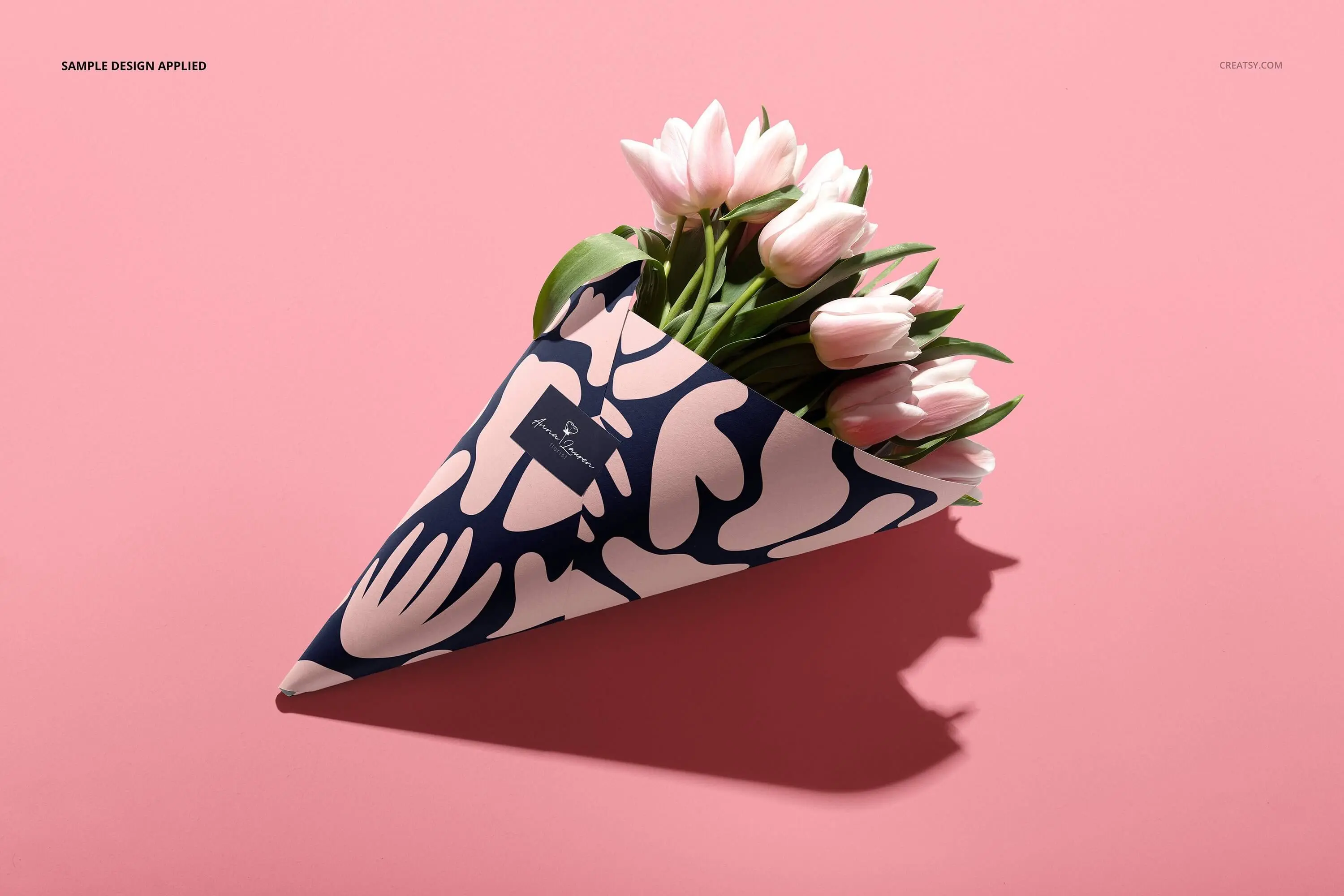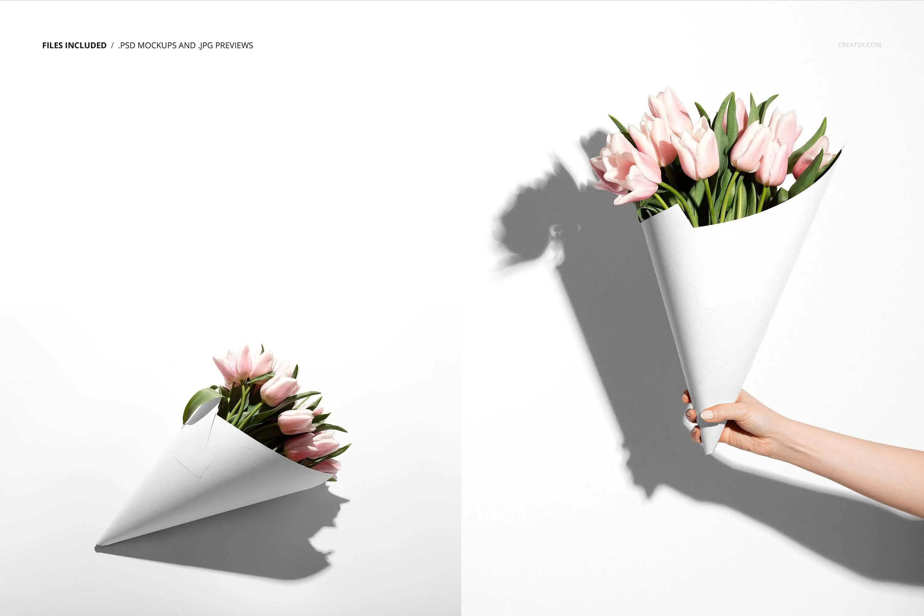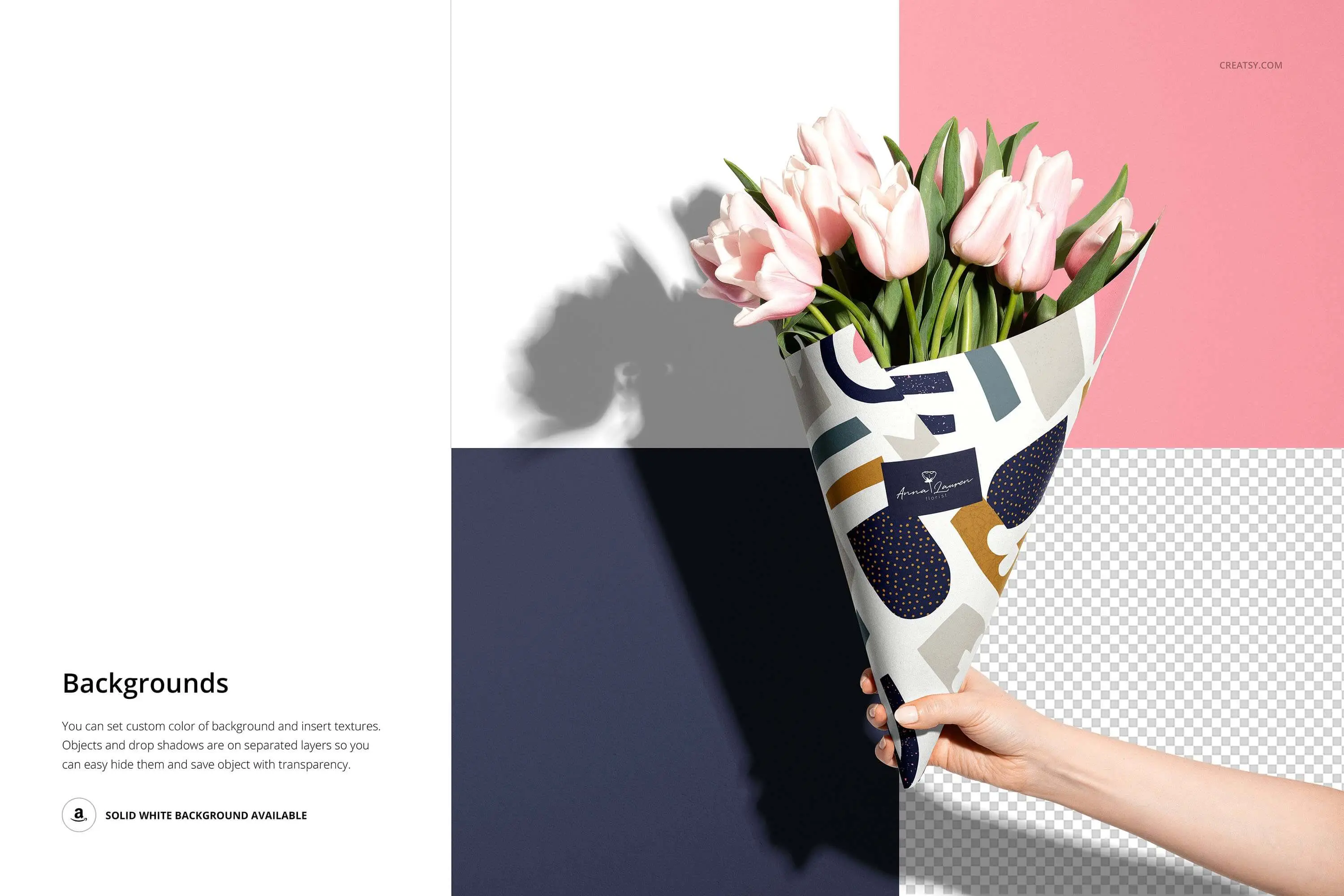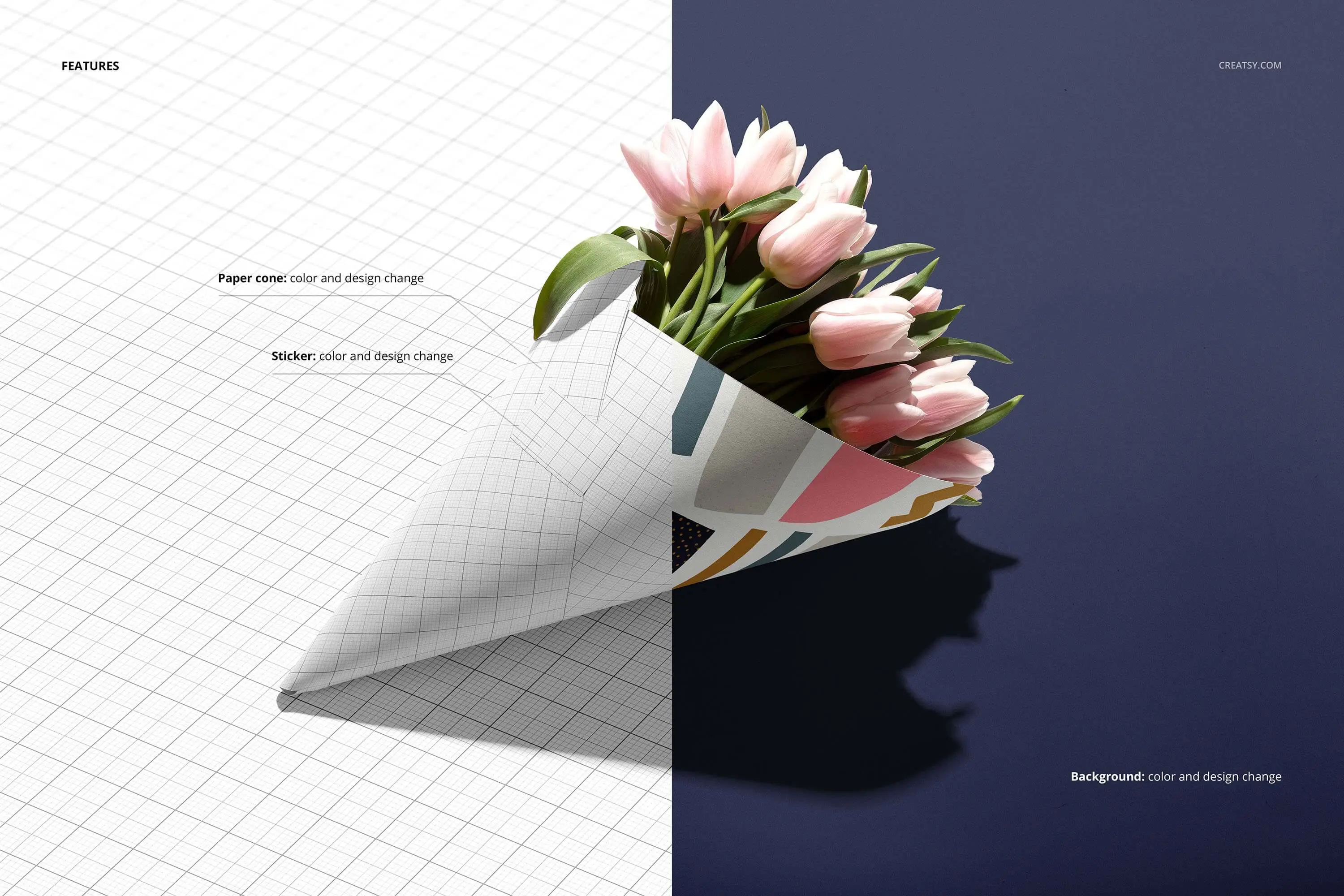 通过编辑智能对象和颜色层,鲜花包装圆锥模板层的可编辑.psd文件准备展示您的自定义设计。