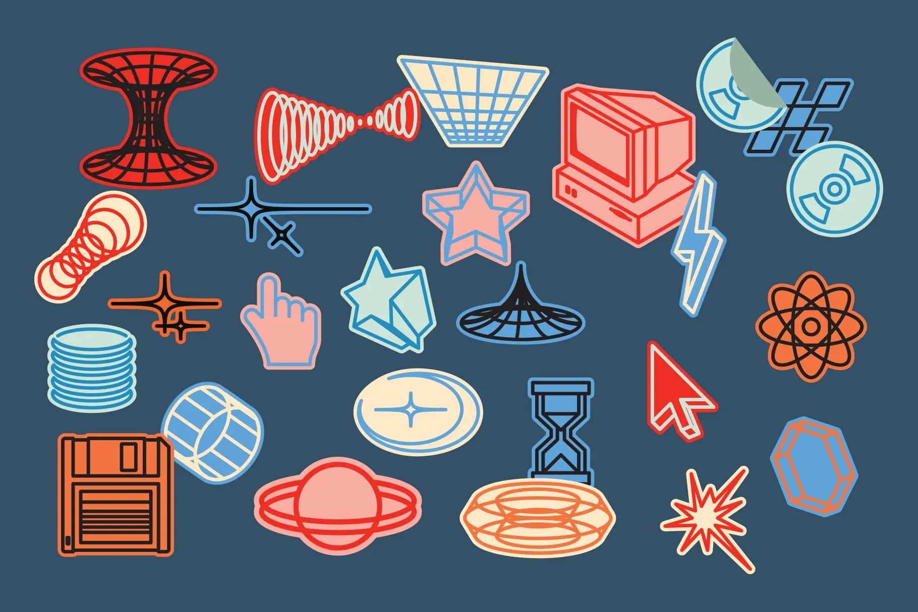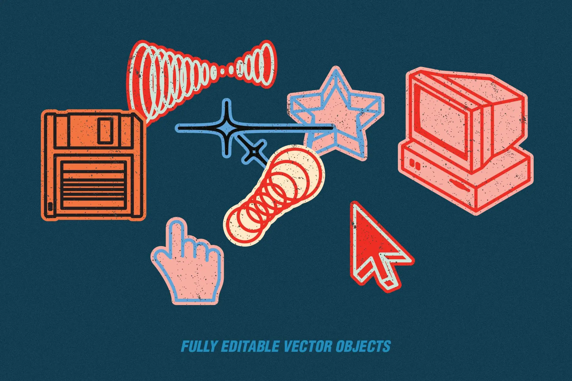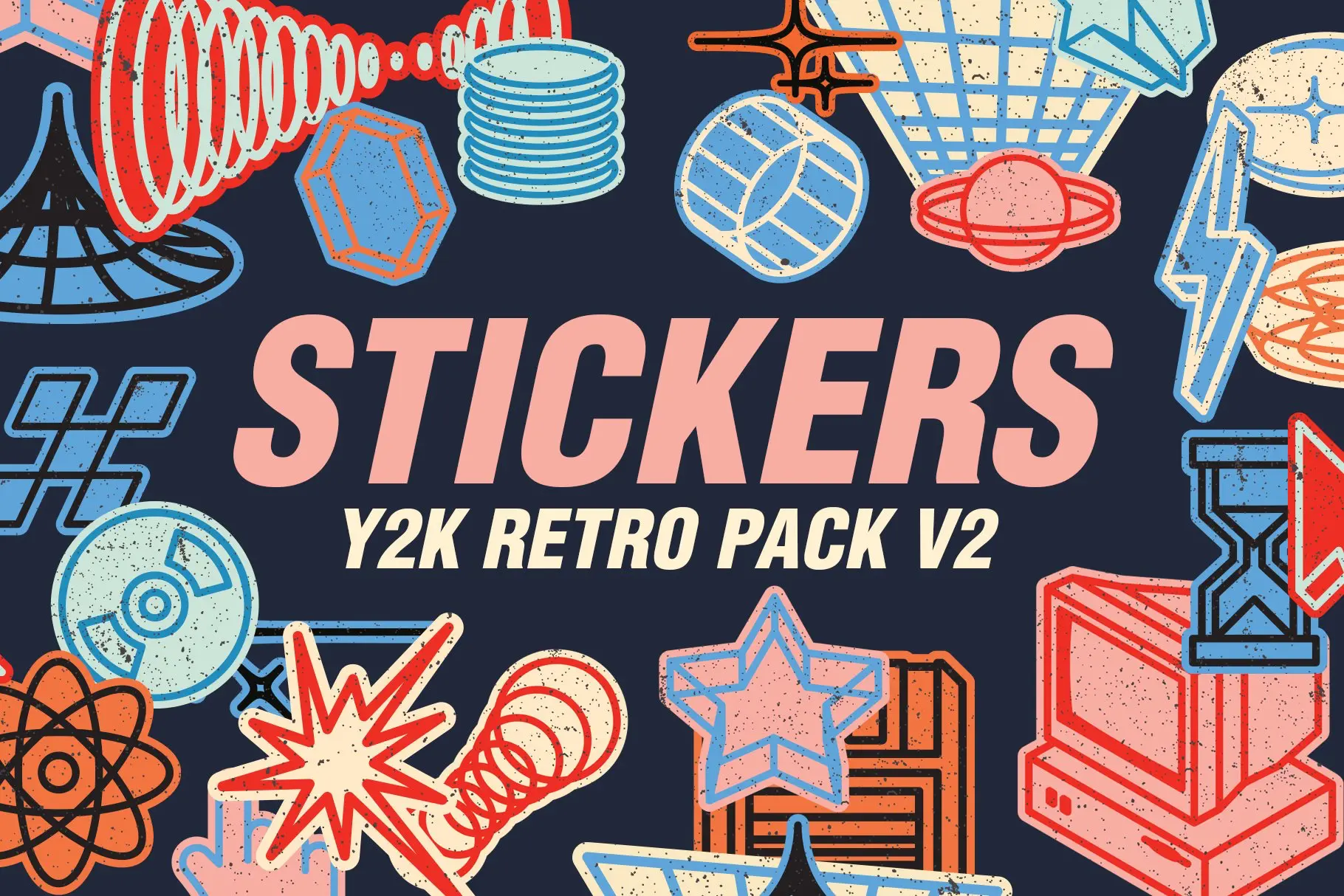 Y2K Retro Stickers Pack V.2 25款复古Y2K时尚几何酸性贴图插图插画矢量设计素材