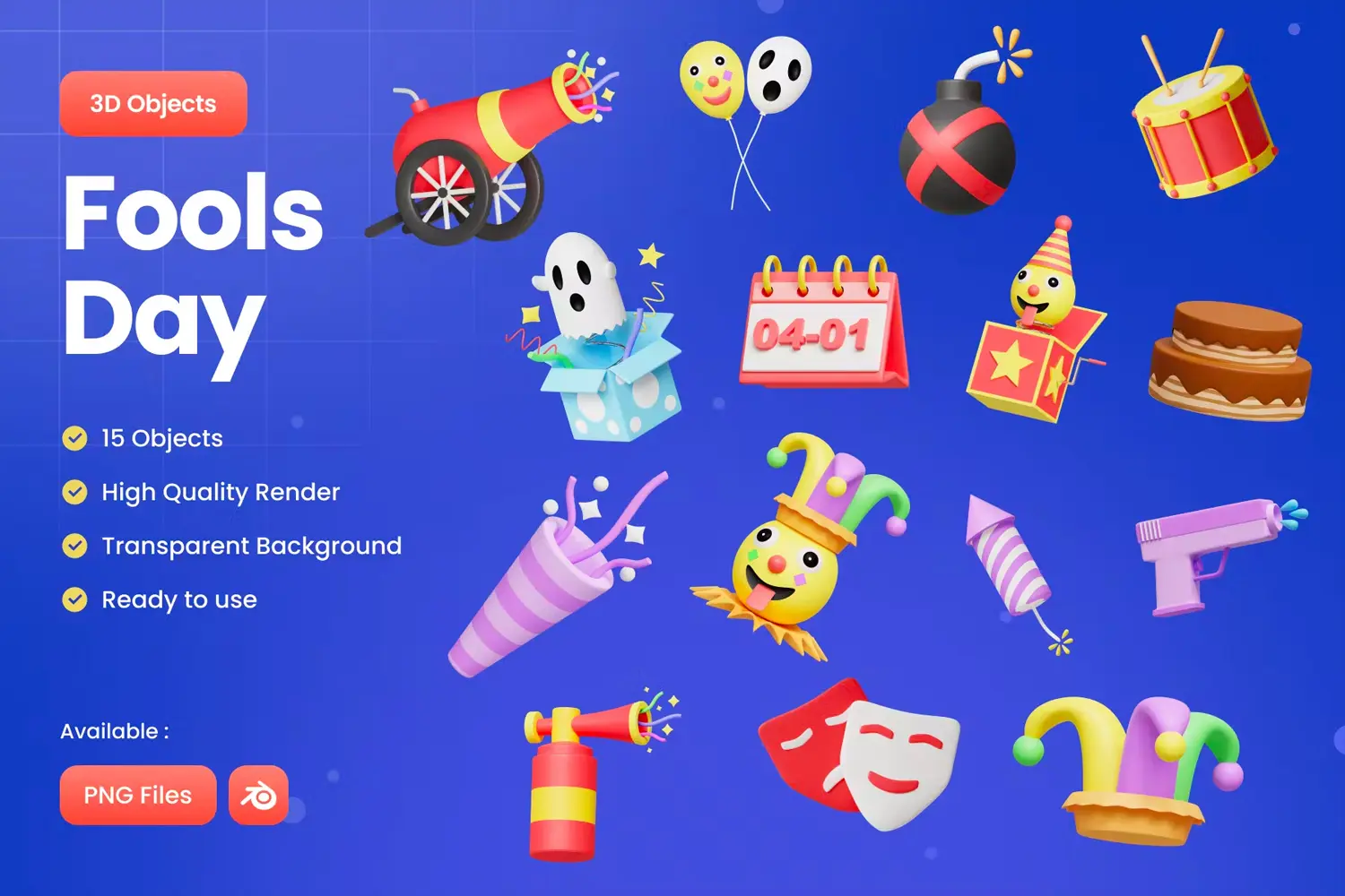 April Fool’s Day 1 15款愚人节恶作剧派对装饰元素卡通3D图标icon设计素材webp免抠图片