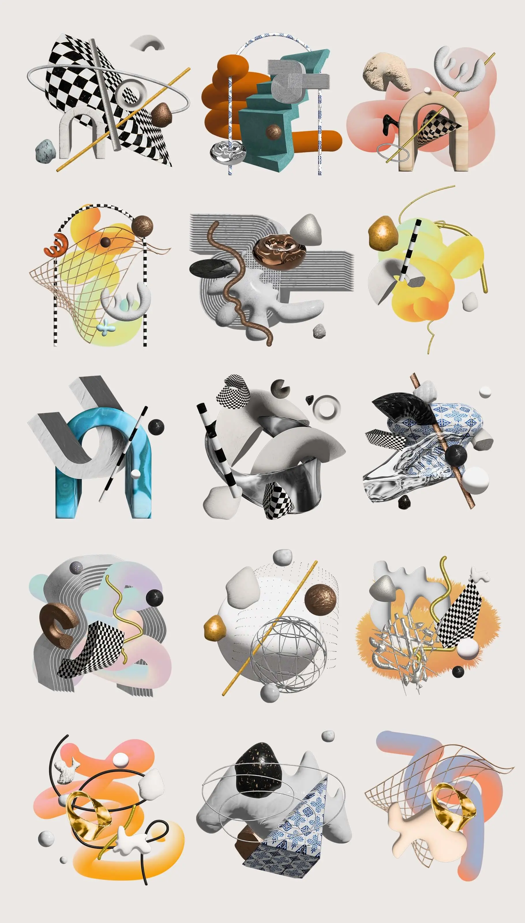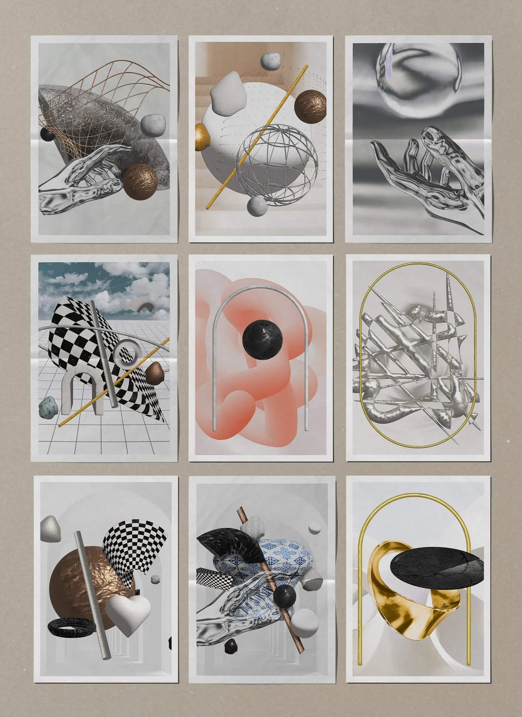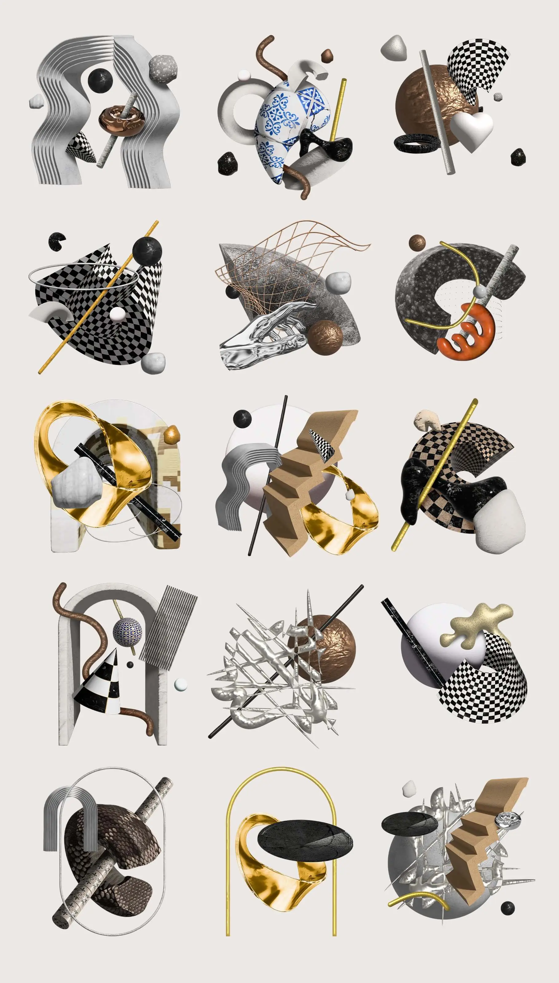 Welcome to Wonderland 329款现代3D抽象艺术Y2K金属立体几何拼贴海报webp免抠图片素材
