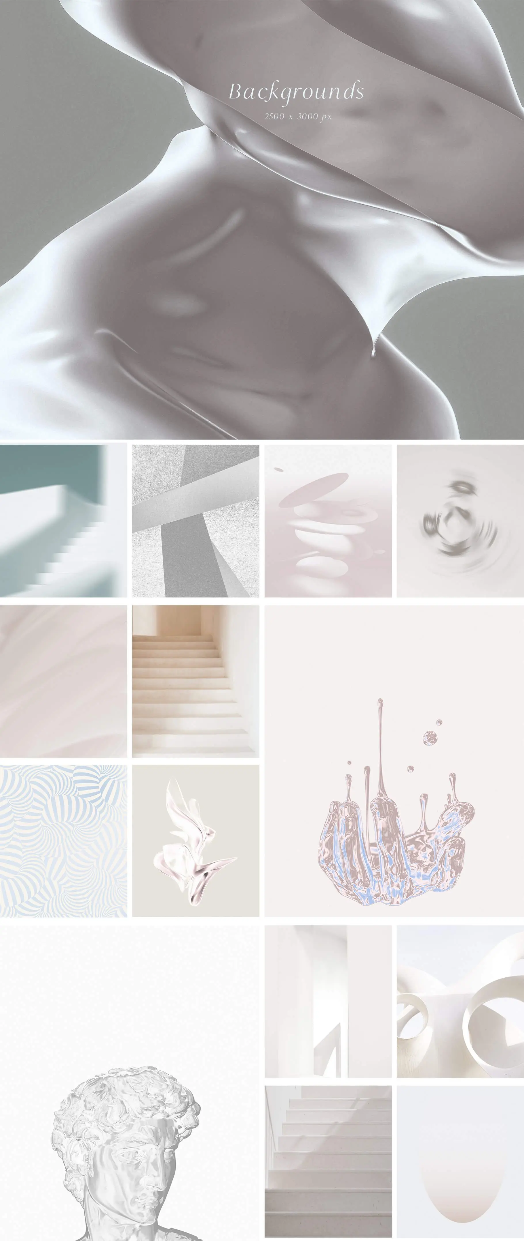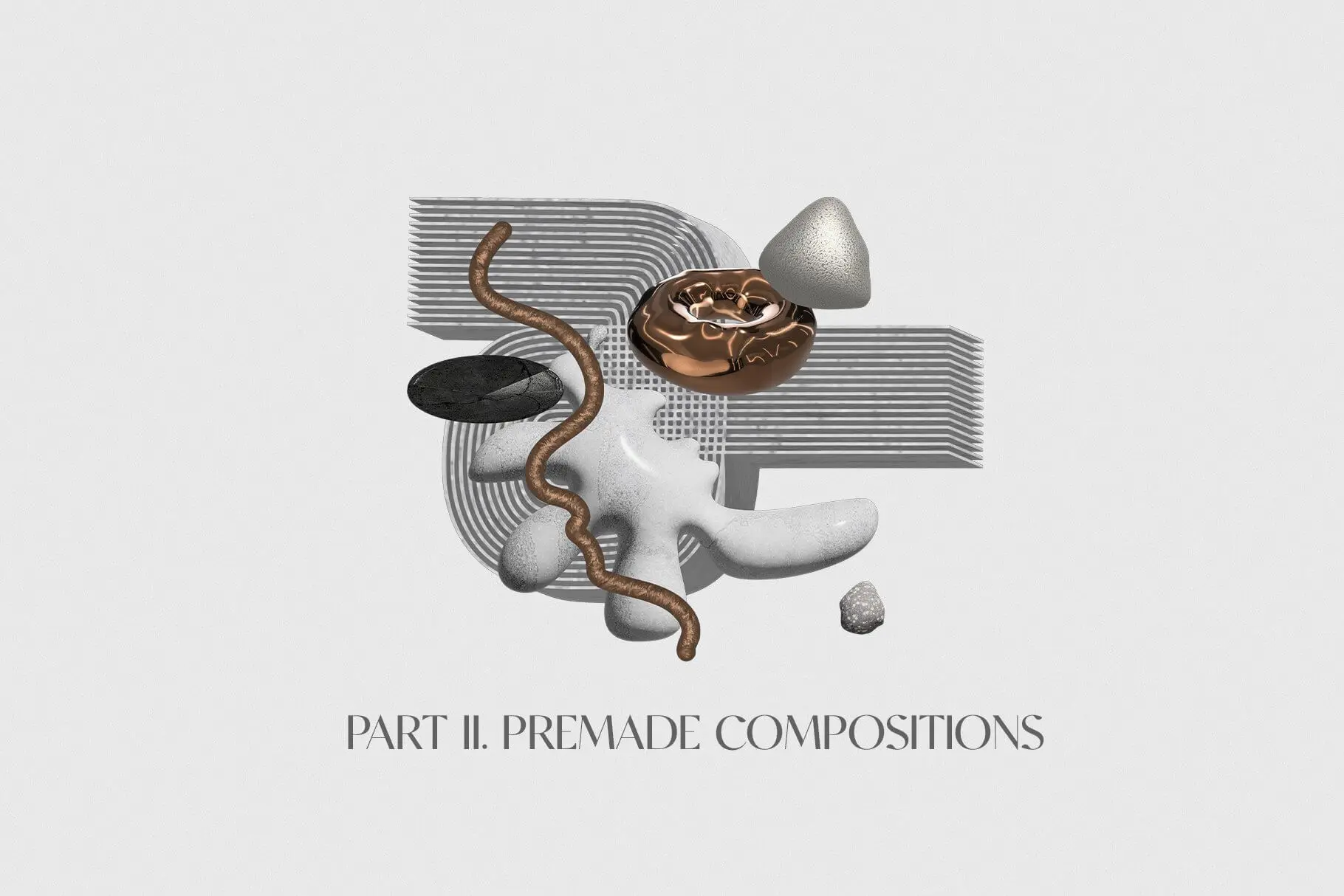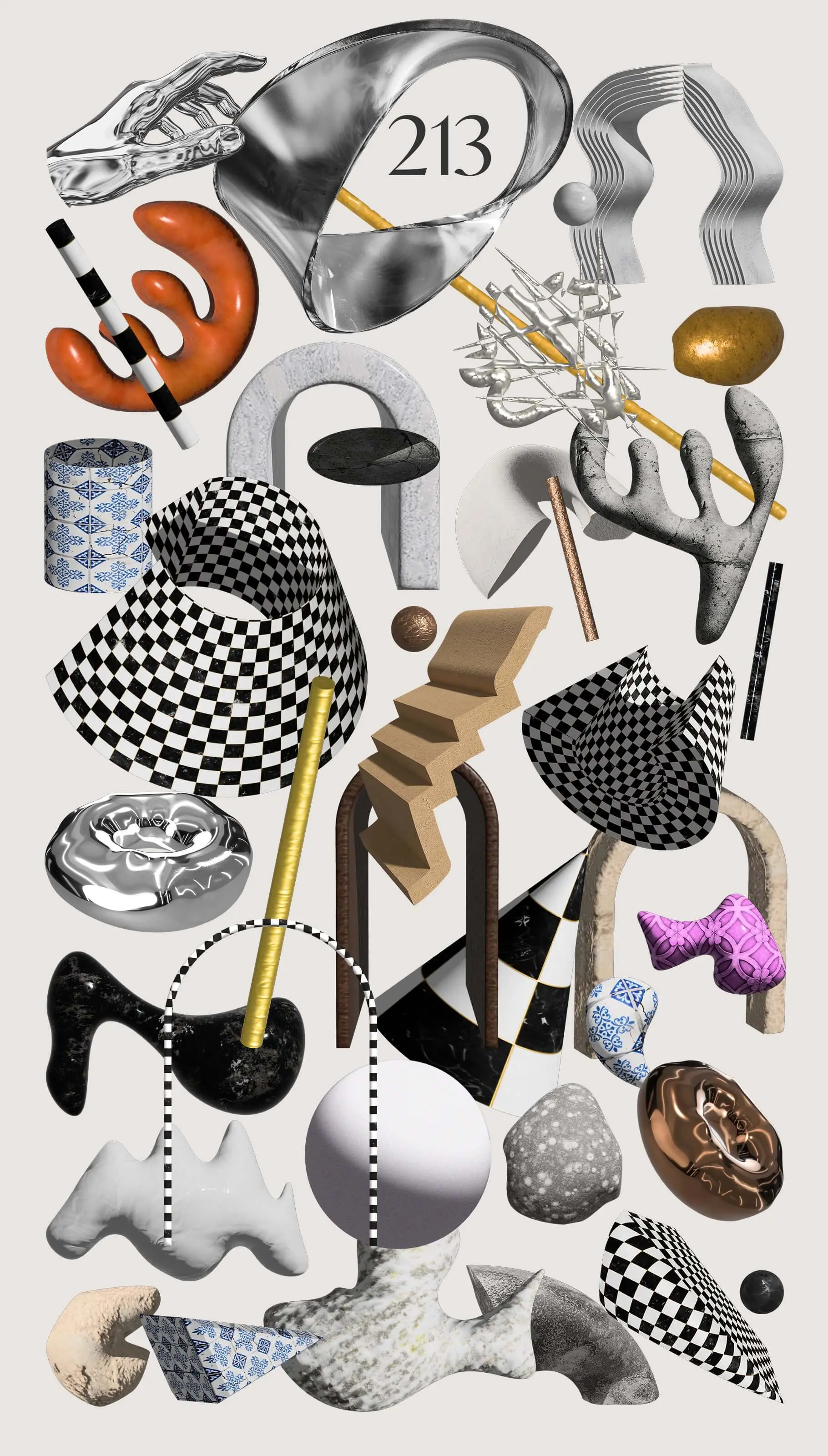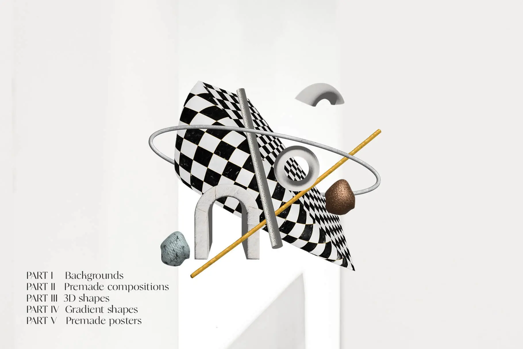 Welcome to Wonderland 329款现代3D抽象艺术Y2K金属立体几何拼贴海报webp免抠图片素材