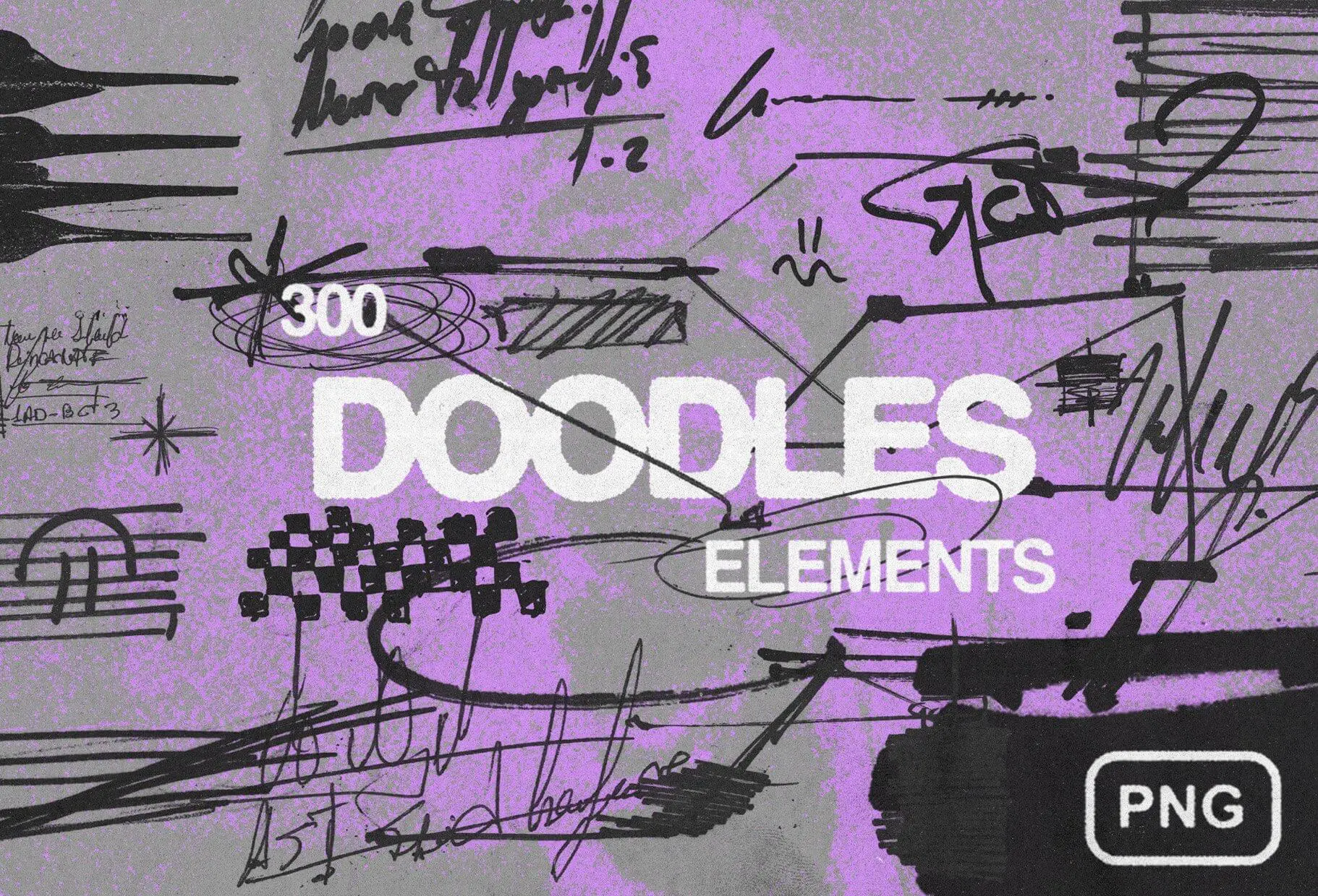 Doodles elements Pack 300款马克笔手工标记手稿涂鸦乱涂手绘草稿webp免抠图片设计素材