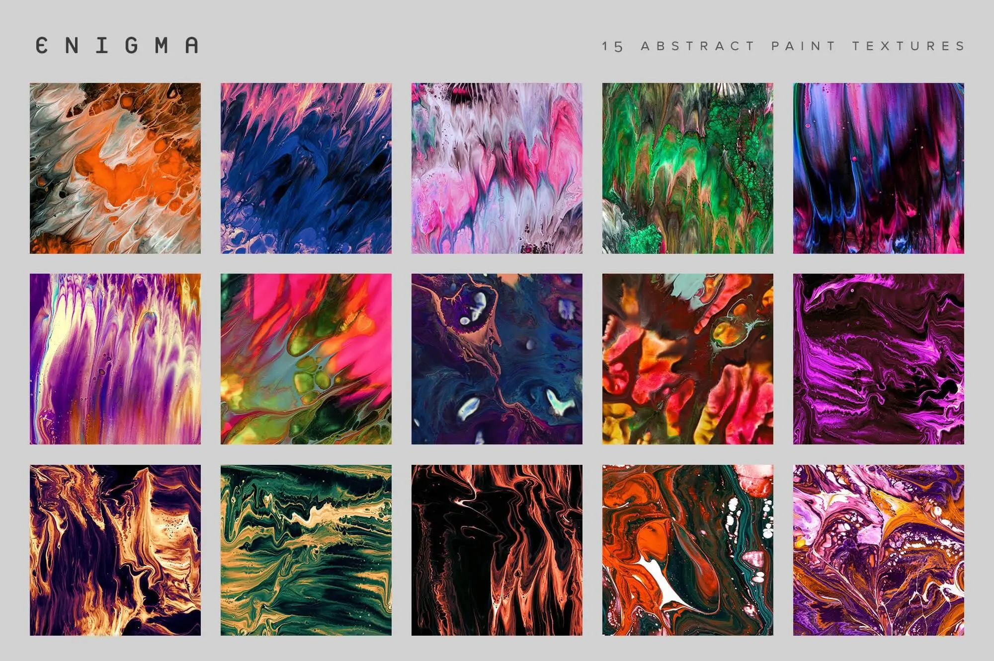 Enigma 15 Abstract Paint Textures 15款高清炫彩抽象颜料液体流体爆炸飞溅纹理背景底纹图片设计素材