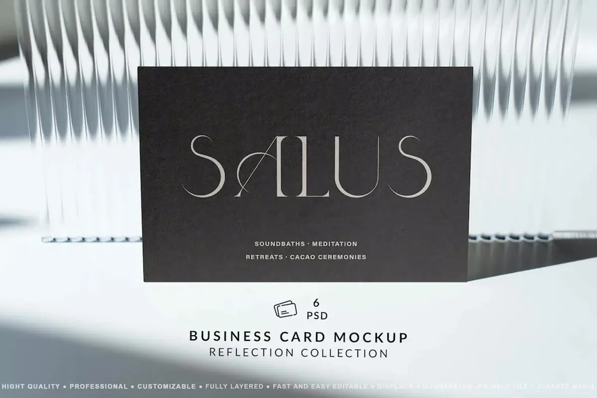 Business Card Mockup Reflection 6款水晶长虹玻璃光影反射名片卡片设计贴图ps样机场景展示效果图