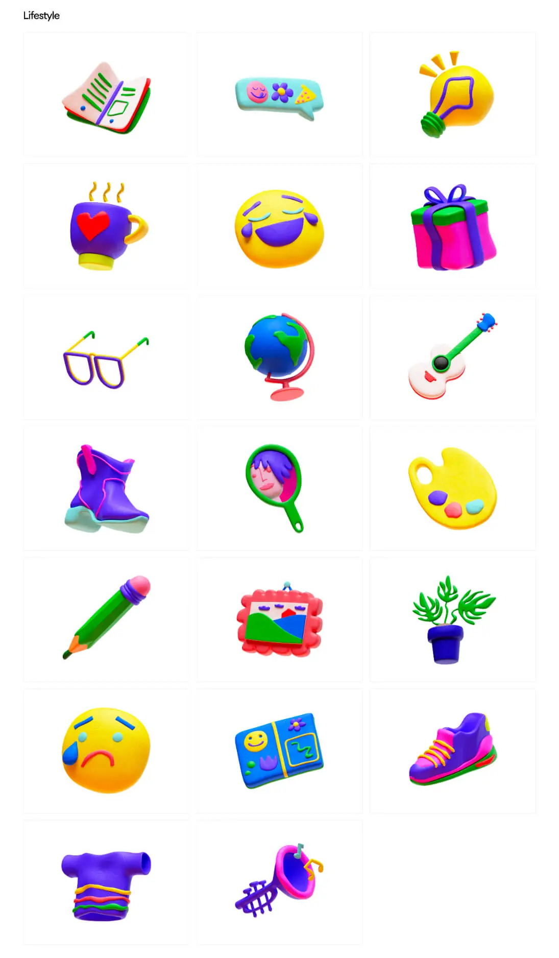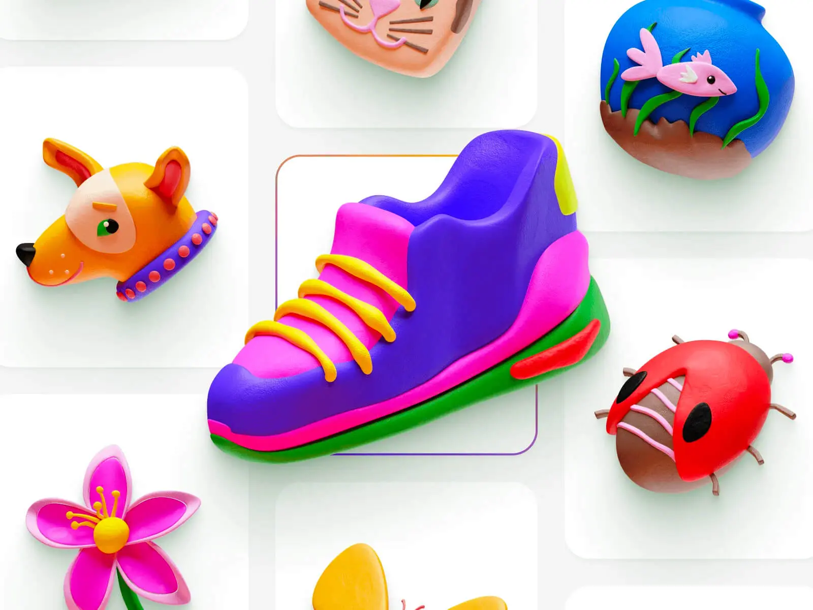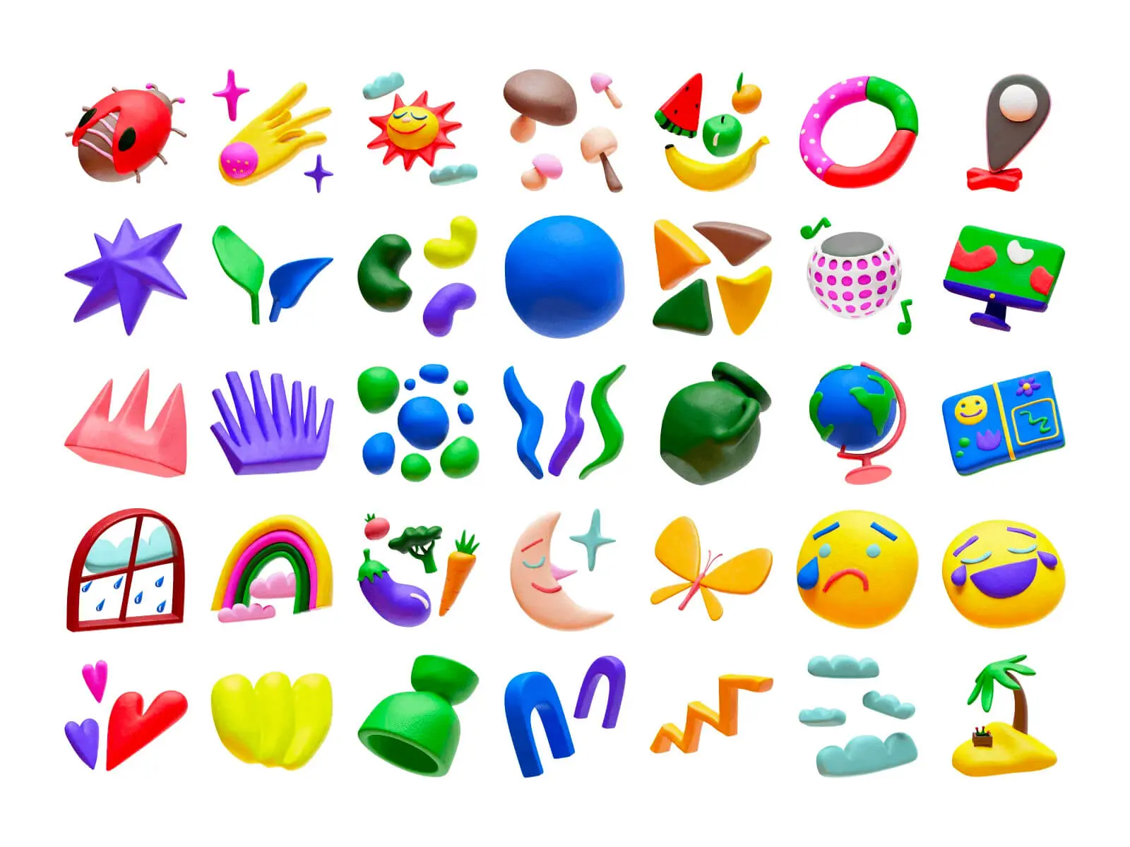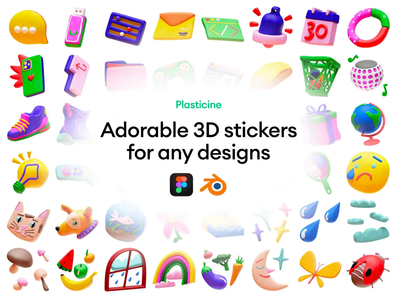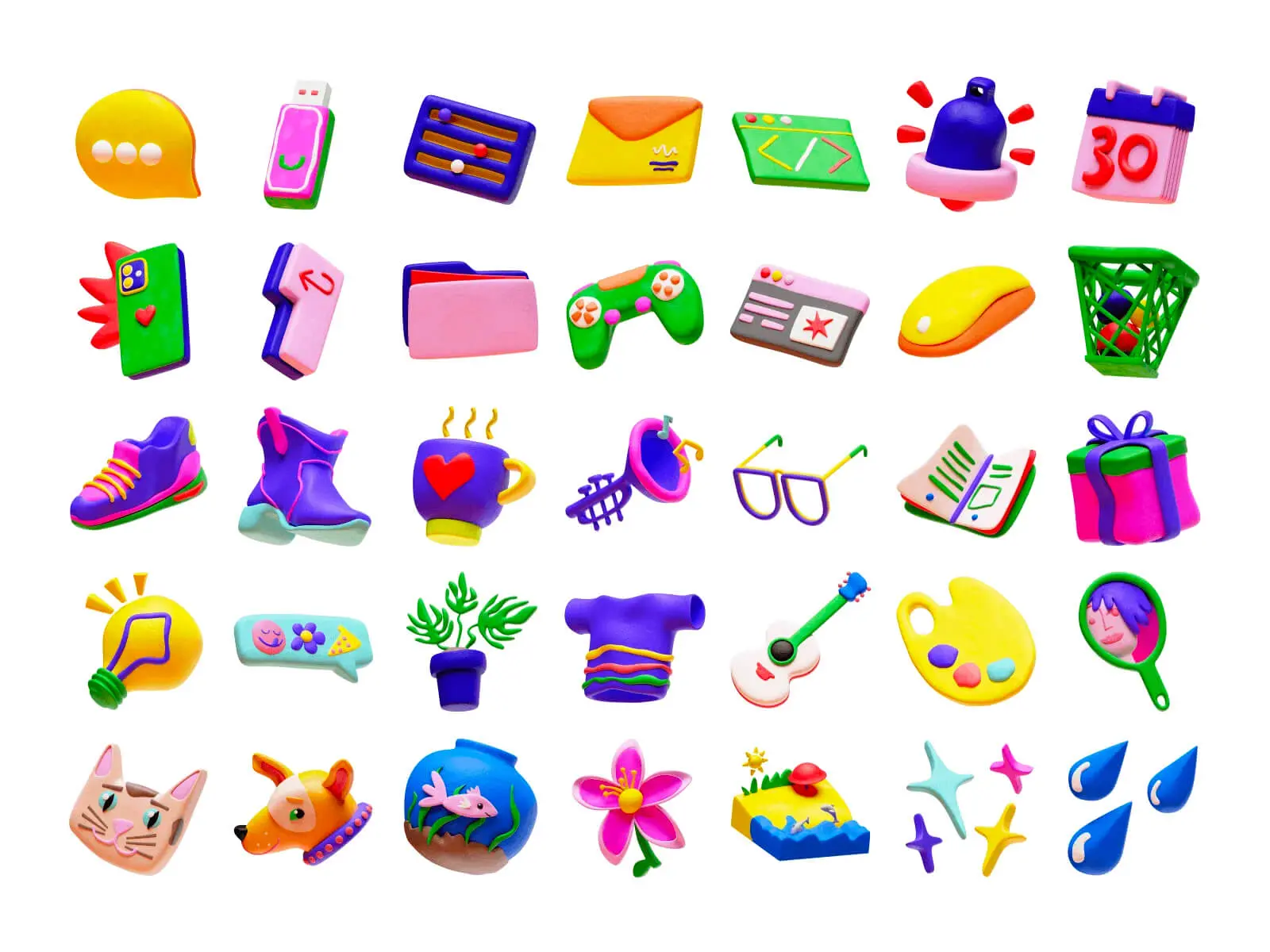 Plasticine by Craftwork 80款黏土风格卡通有趣可爱IT日常生活动物3d贴纸图标icons设计素材包