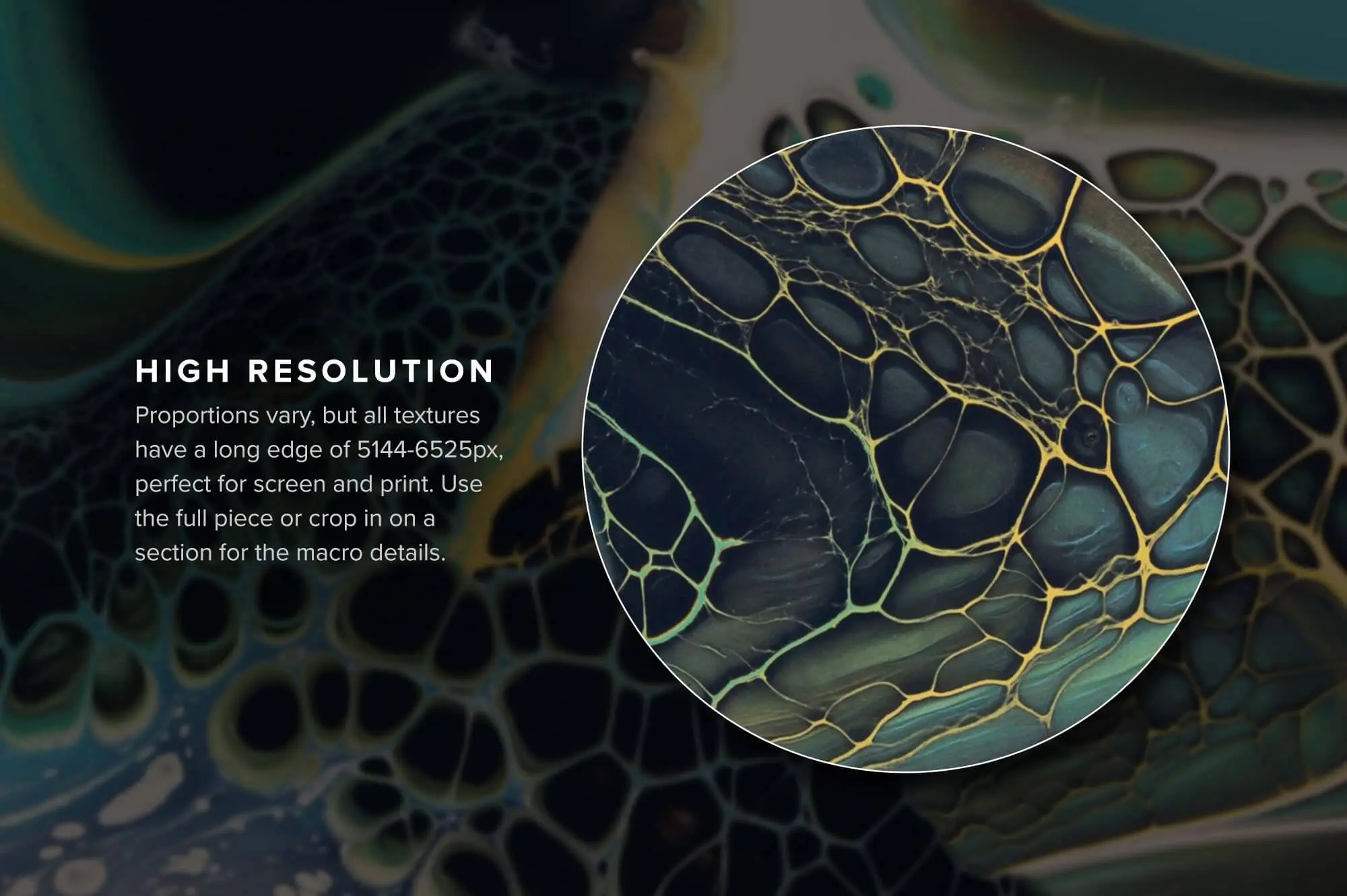 使用 Photoshop 或 Affinity,您可以使用色调/饱和度、色彩平衡或反转等调整图层轻松自定义外观。由于这些资源是高分辨率的,因此它们非常适合打印、网络或屏幕/演示图形。在华丽的宏观细节上使用完整的作品或裁剪。