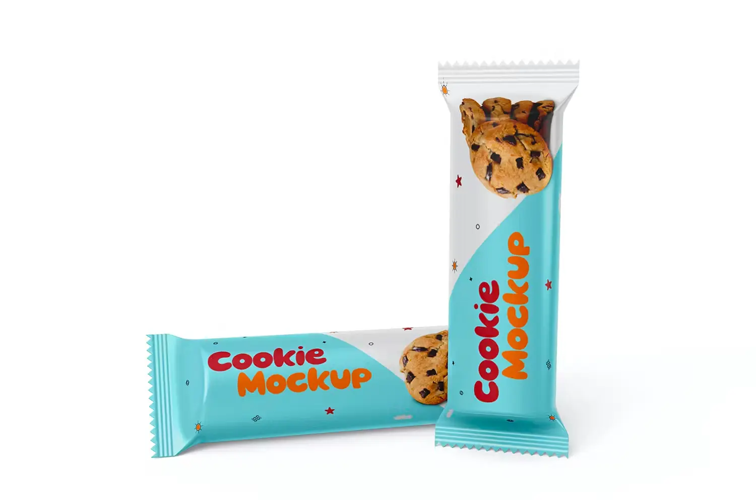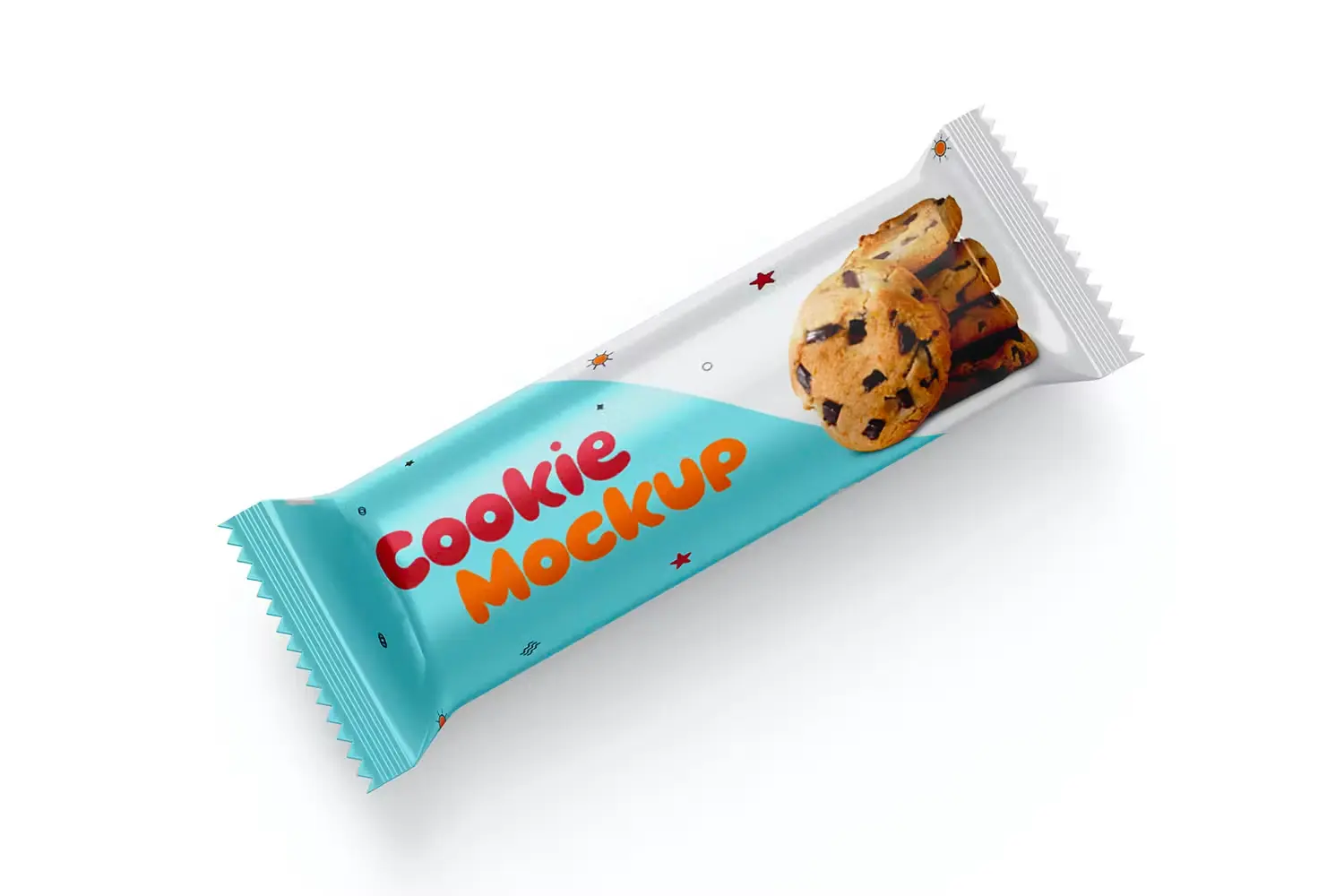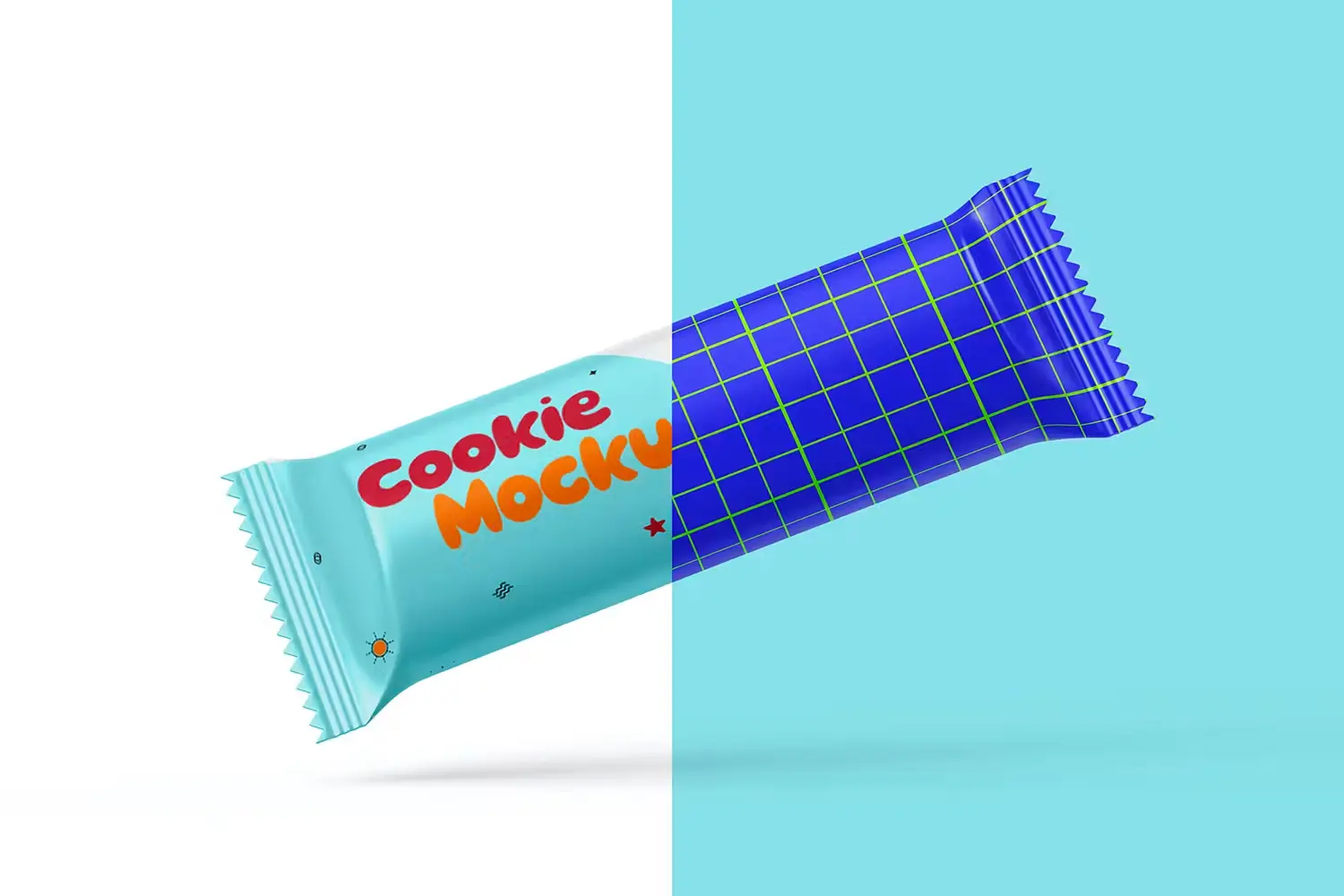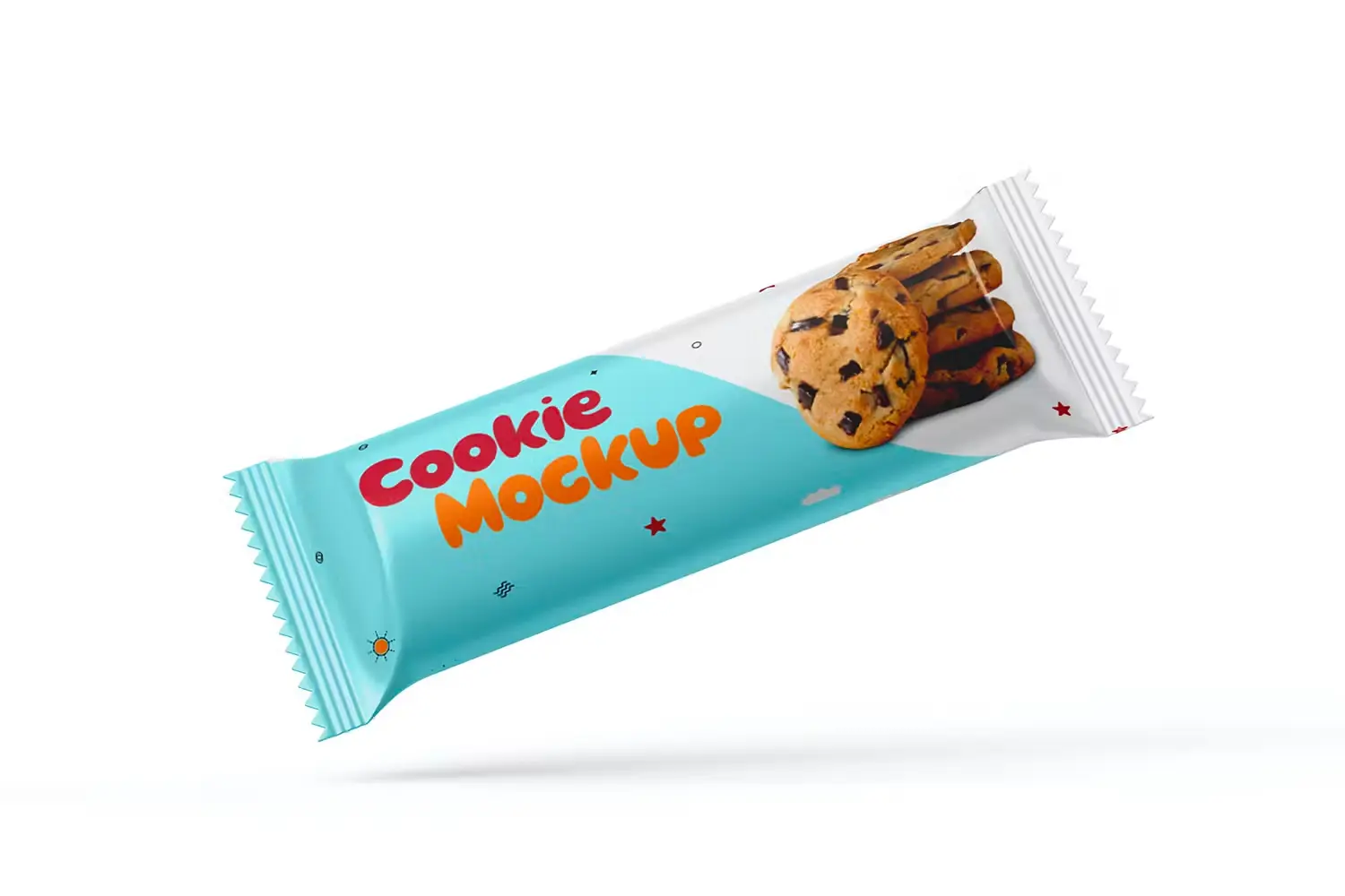 Glossy Cookie Biscuit Packaging Mockup 7款悬浮长条饼干零食袋模型商标logo设计贴图ps包装样机素材模板