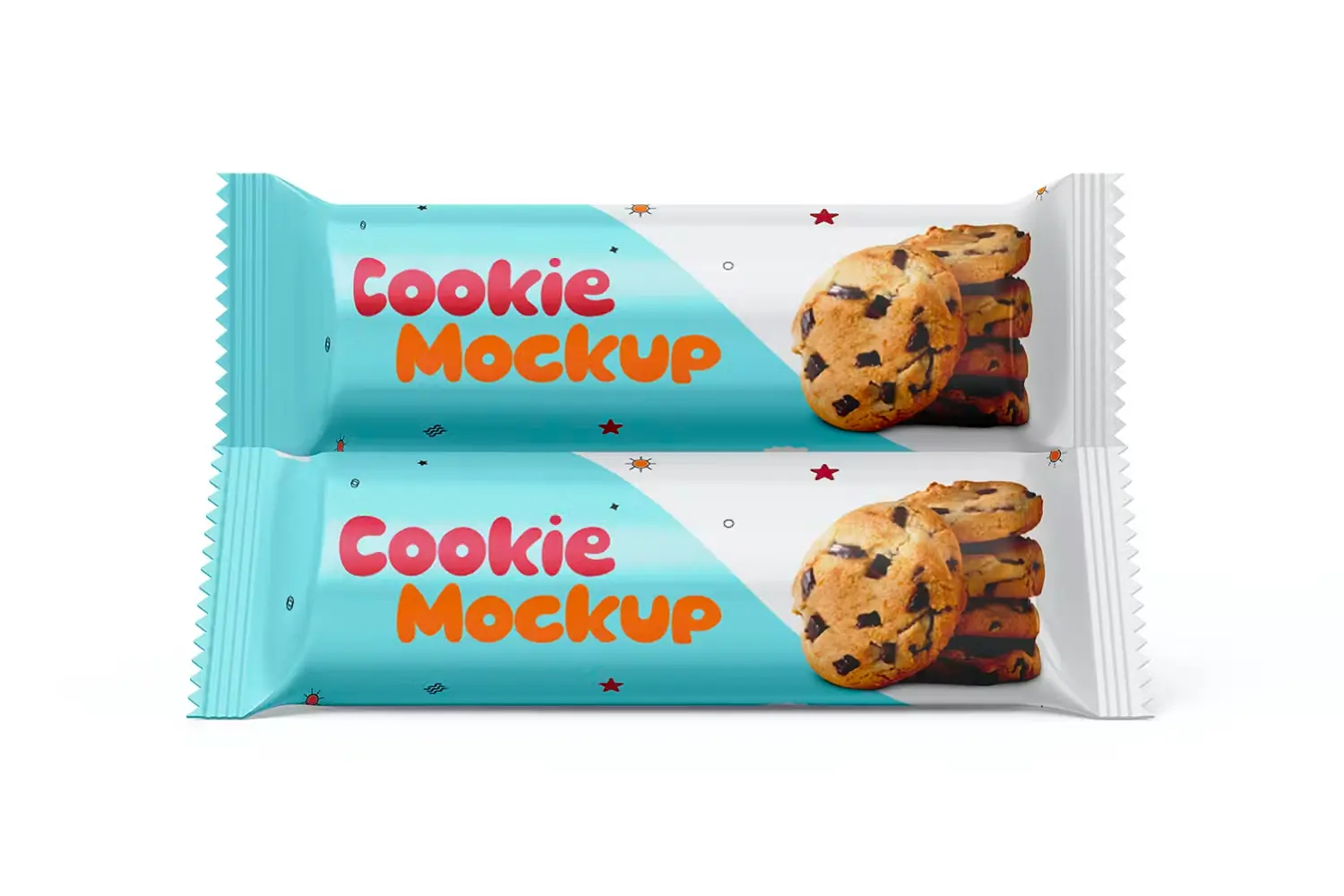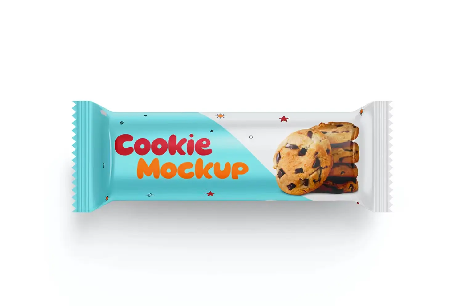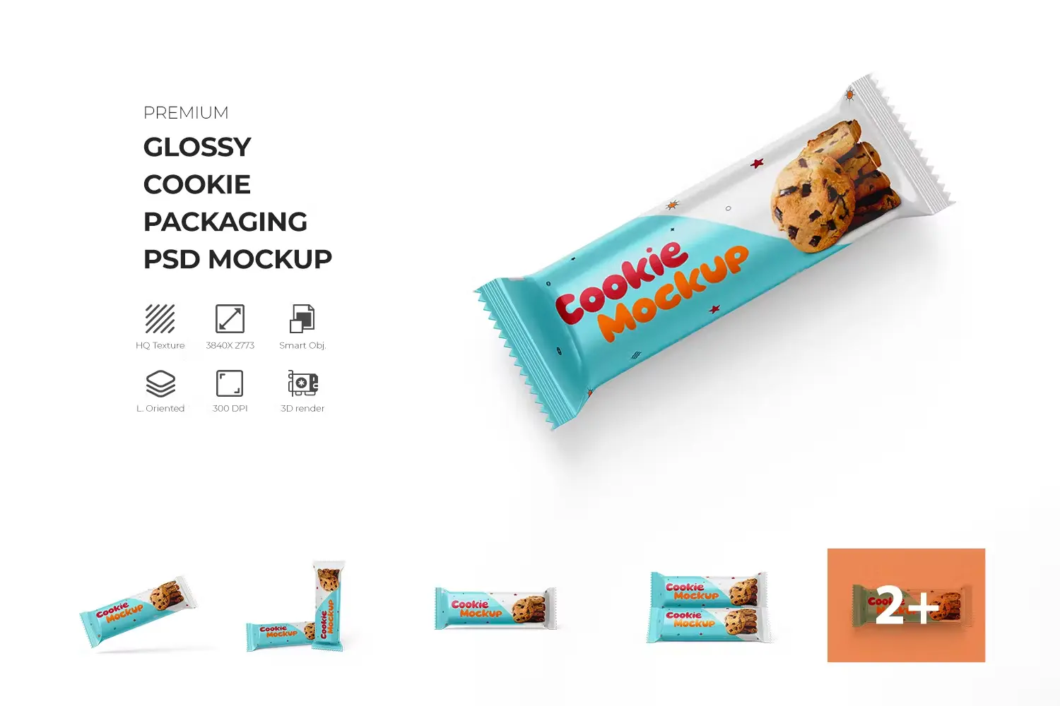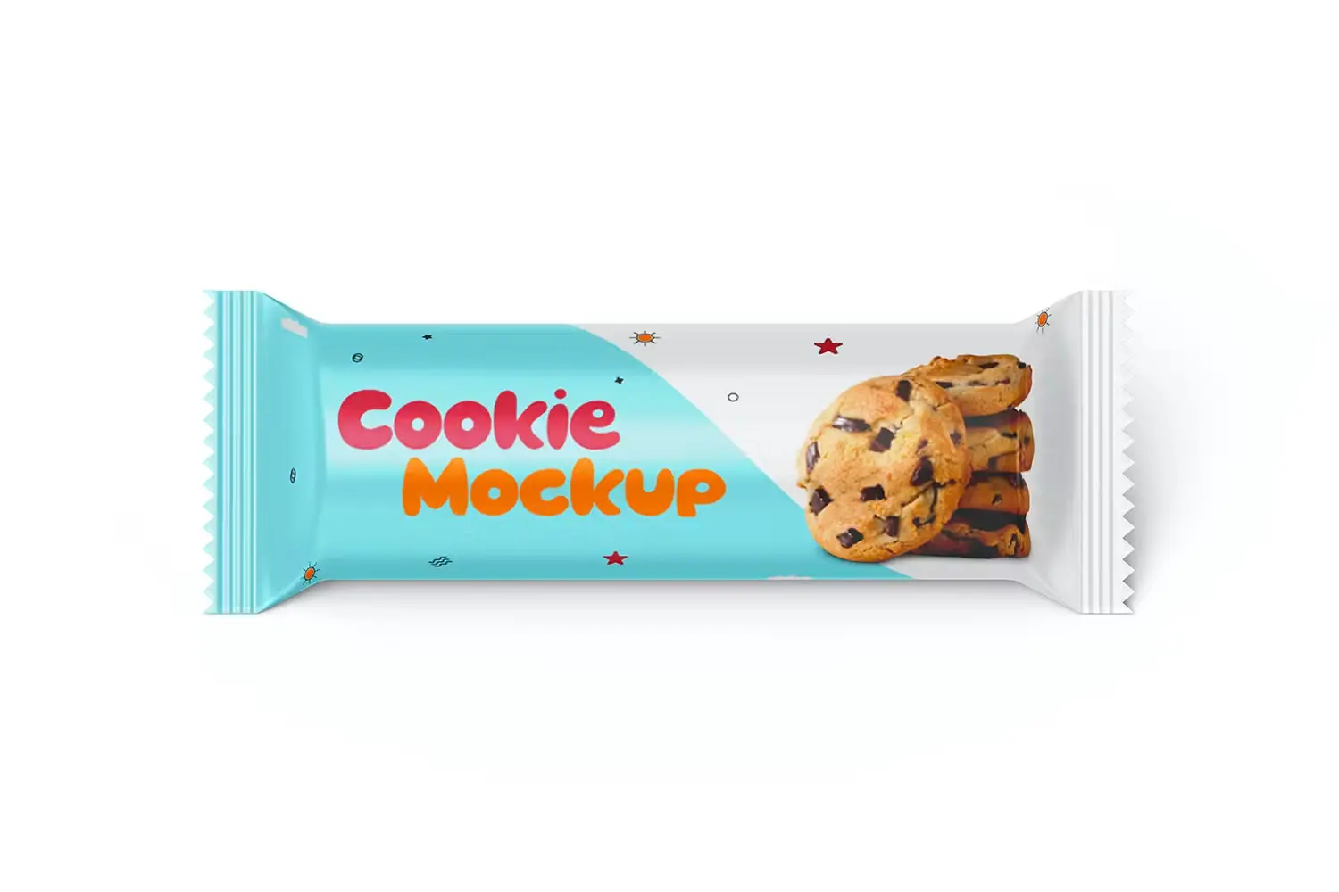 Glossy Cookie Biscuit Packaging Mockup 7款悬浮长条饼干零食袋模型商标logo设计贴图ps包装样机素材模板