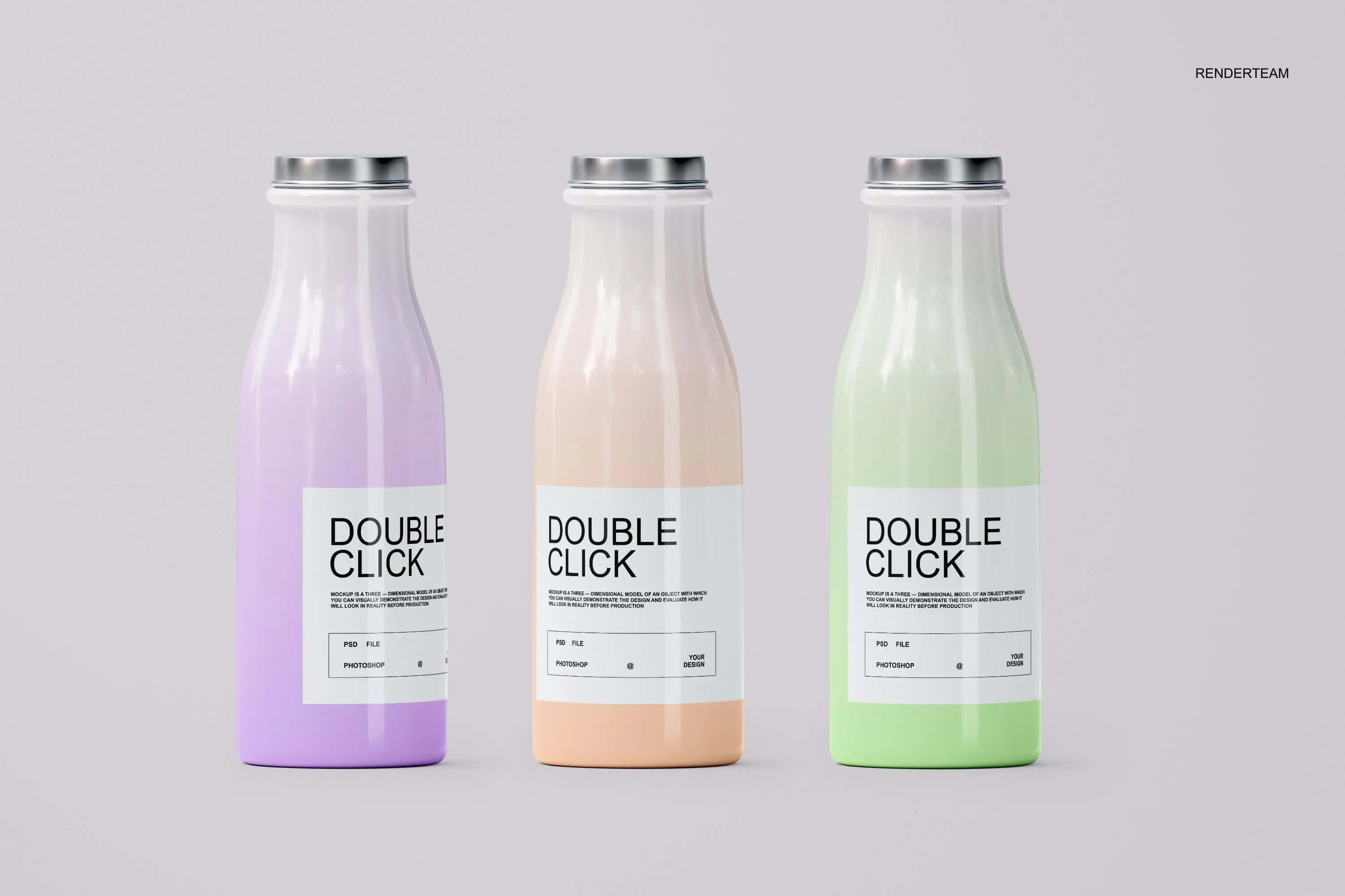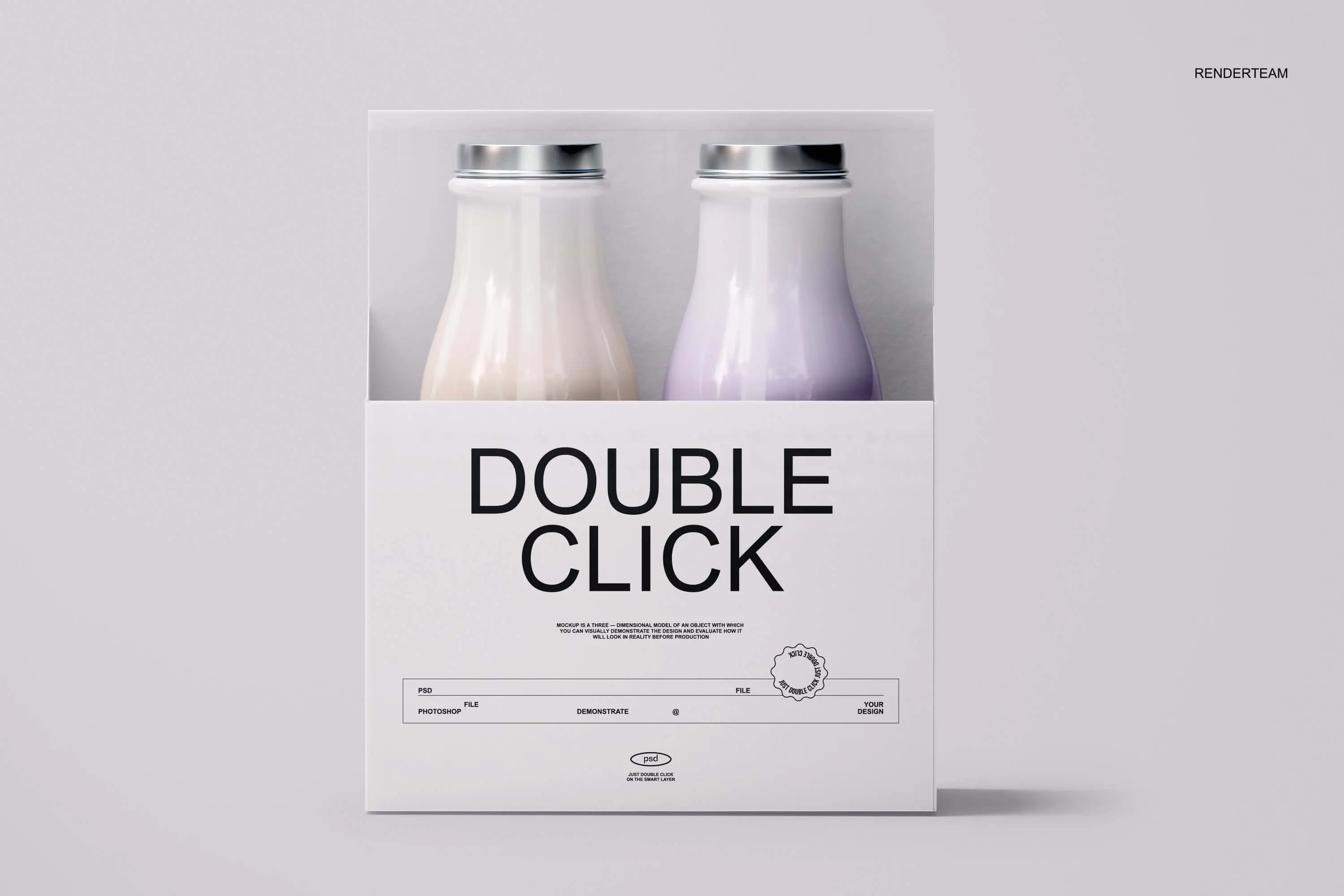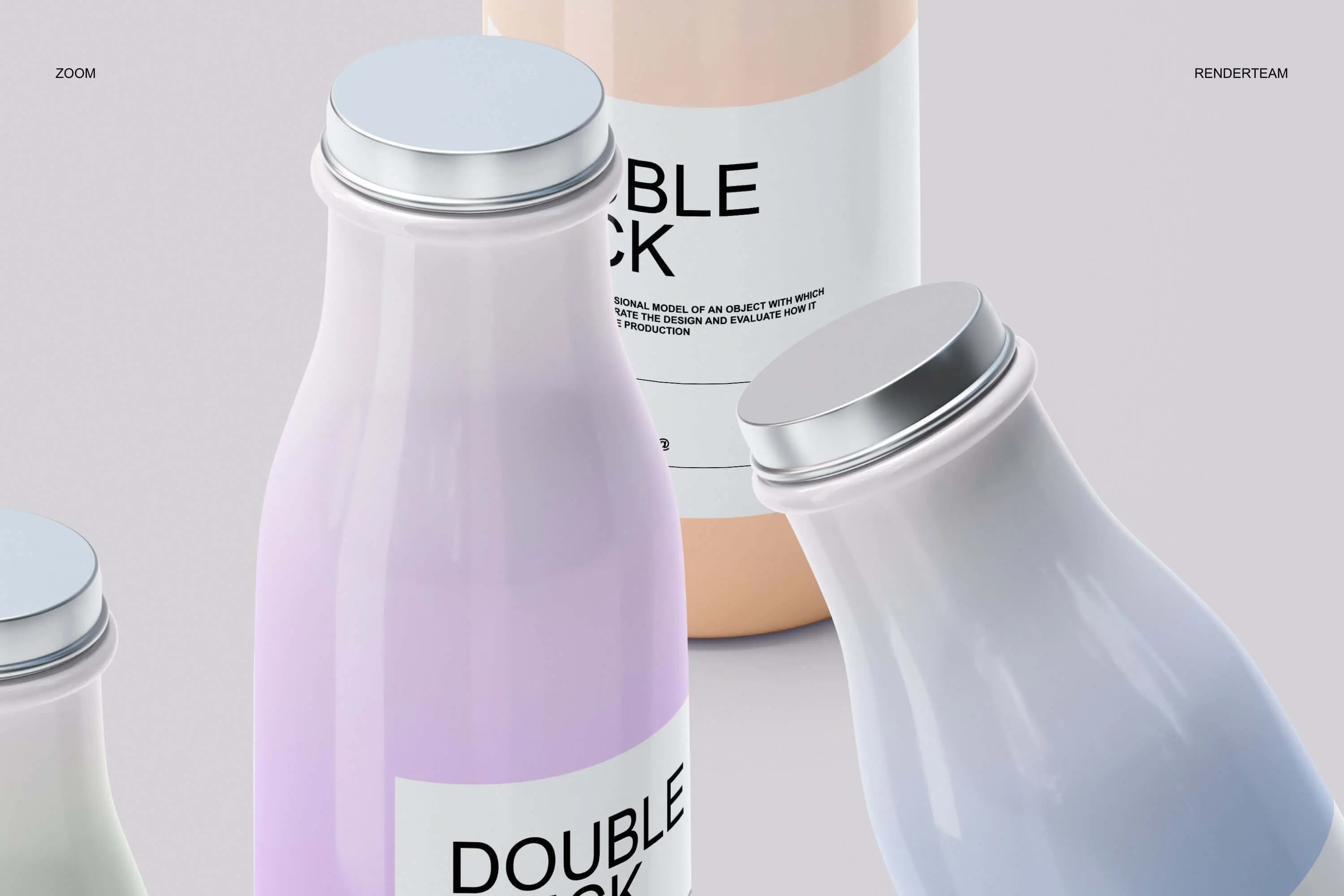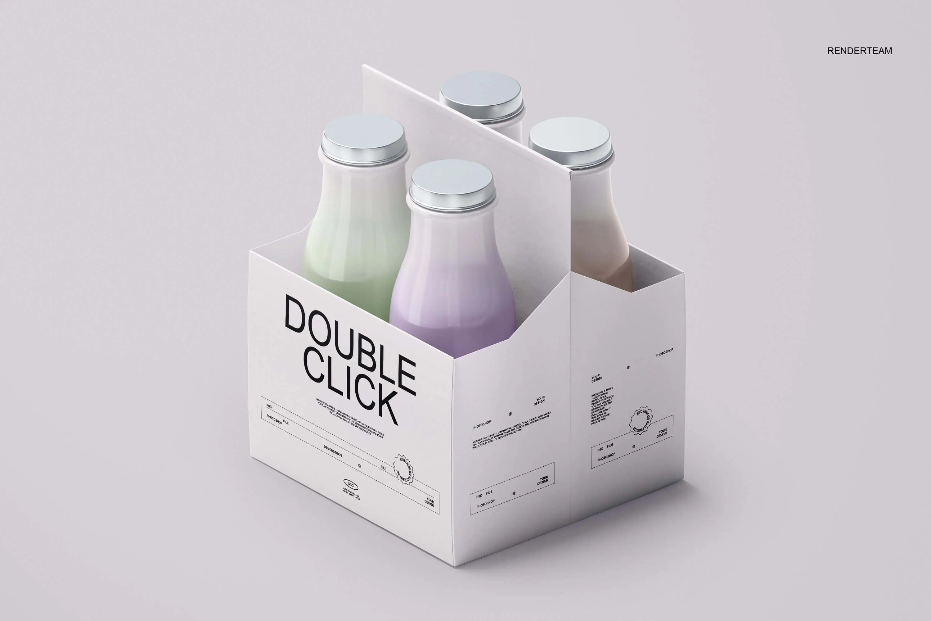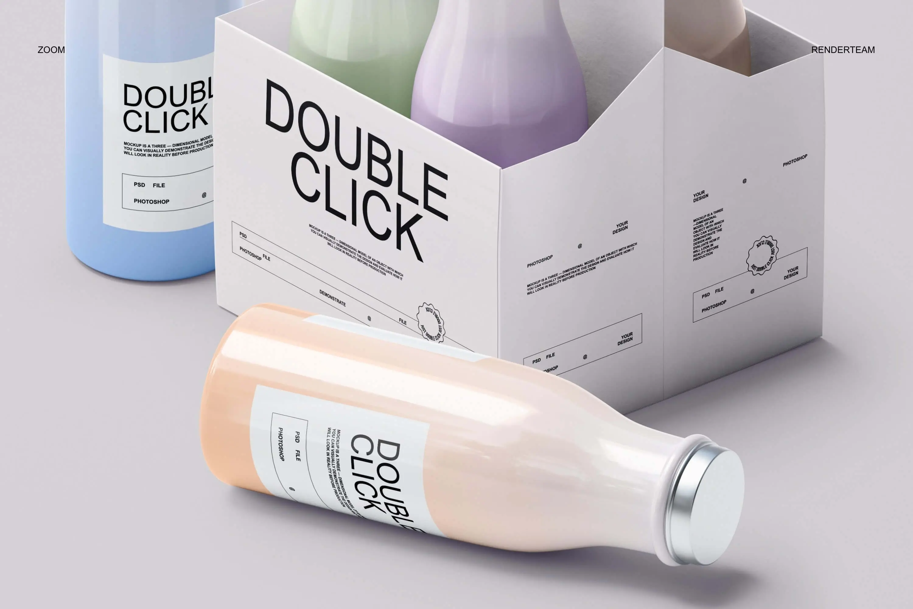 Yogurt Bottle and Box Mockup Set 6款时尚酸奶瓶牛奶果汁饮料玻璃瓶组合包装设计贴图ps样机素材