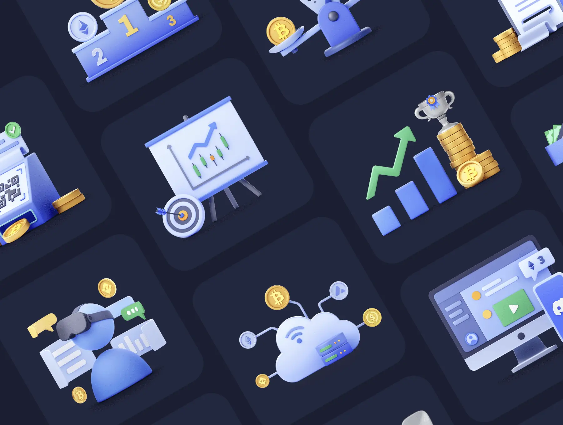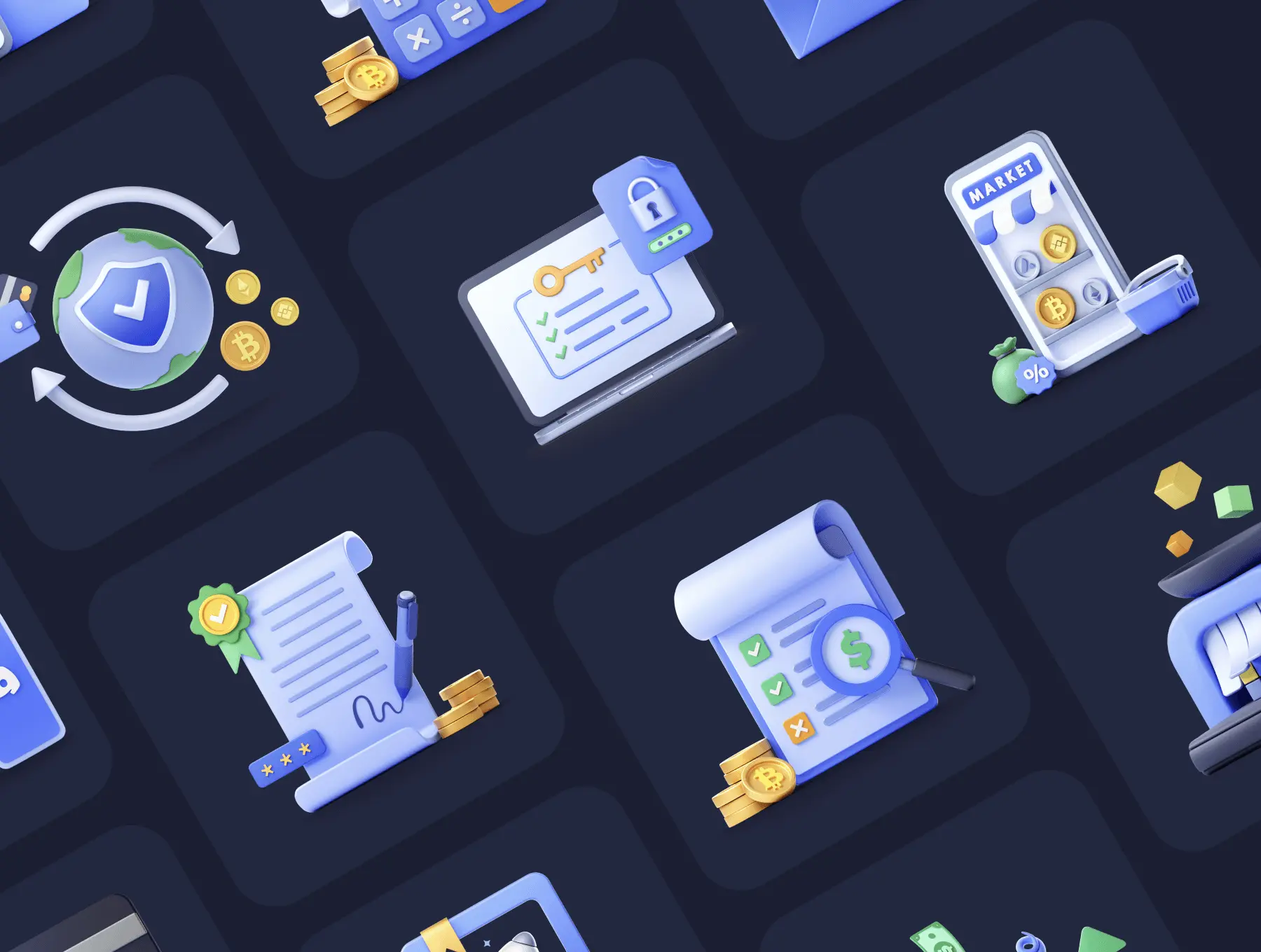Blockchain 3D Icon Set 24款区块链加密货币预制场景演示3D图标插画icon国外设计素材