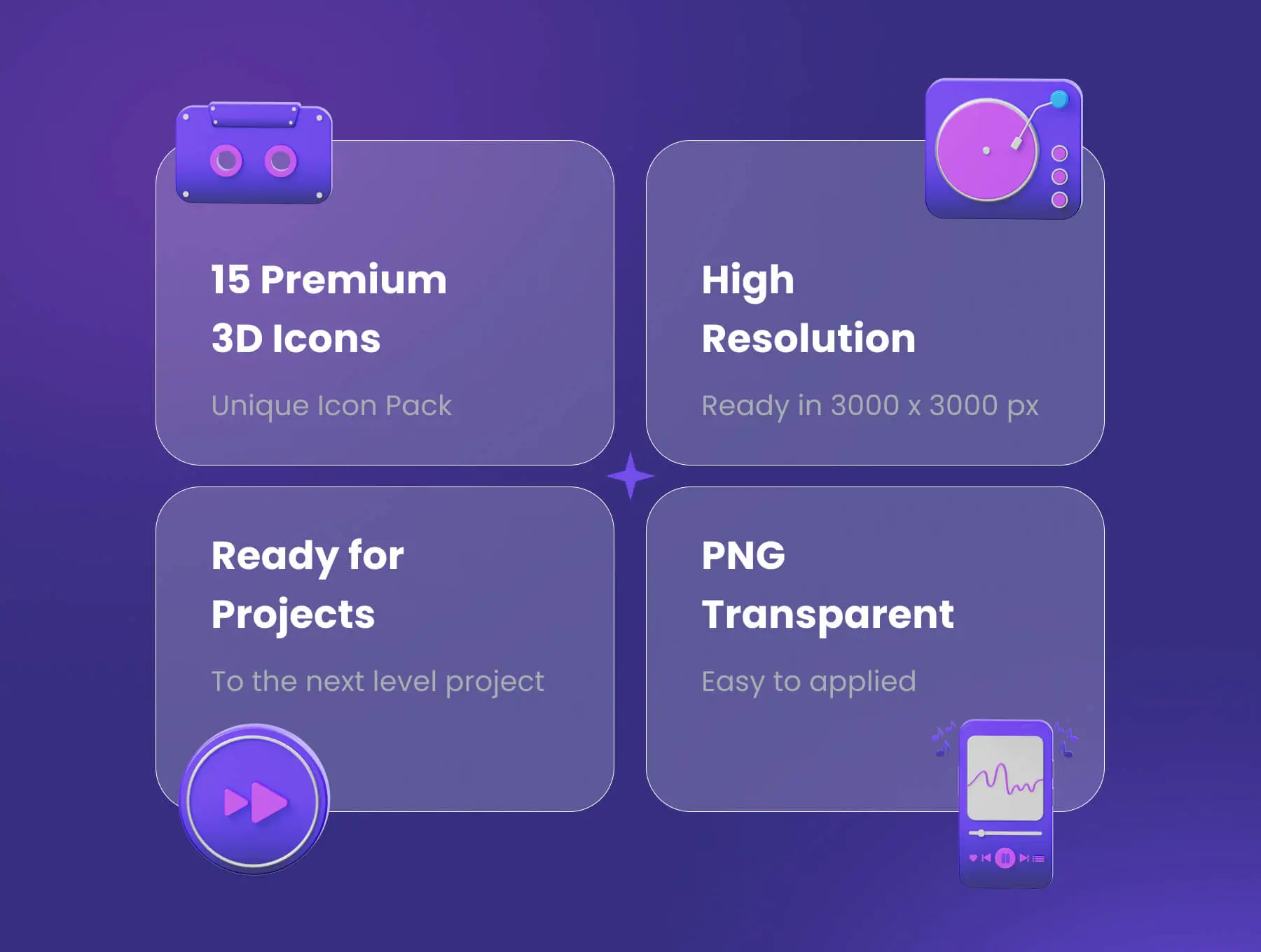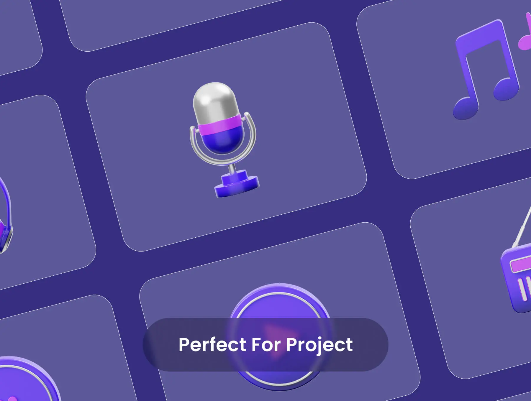 MYMUSIC 3D Music Icons 15款3D立体卡通音乐话筒耳机音符app网页icon图标webp免抠图片素材
