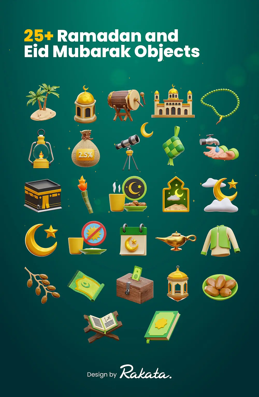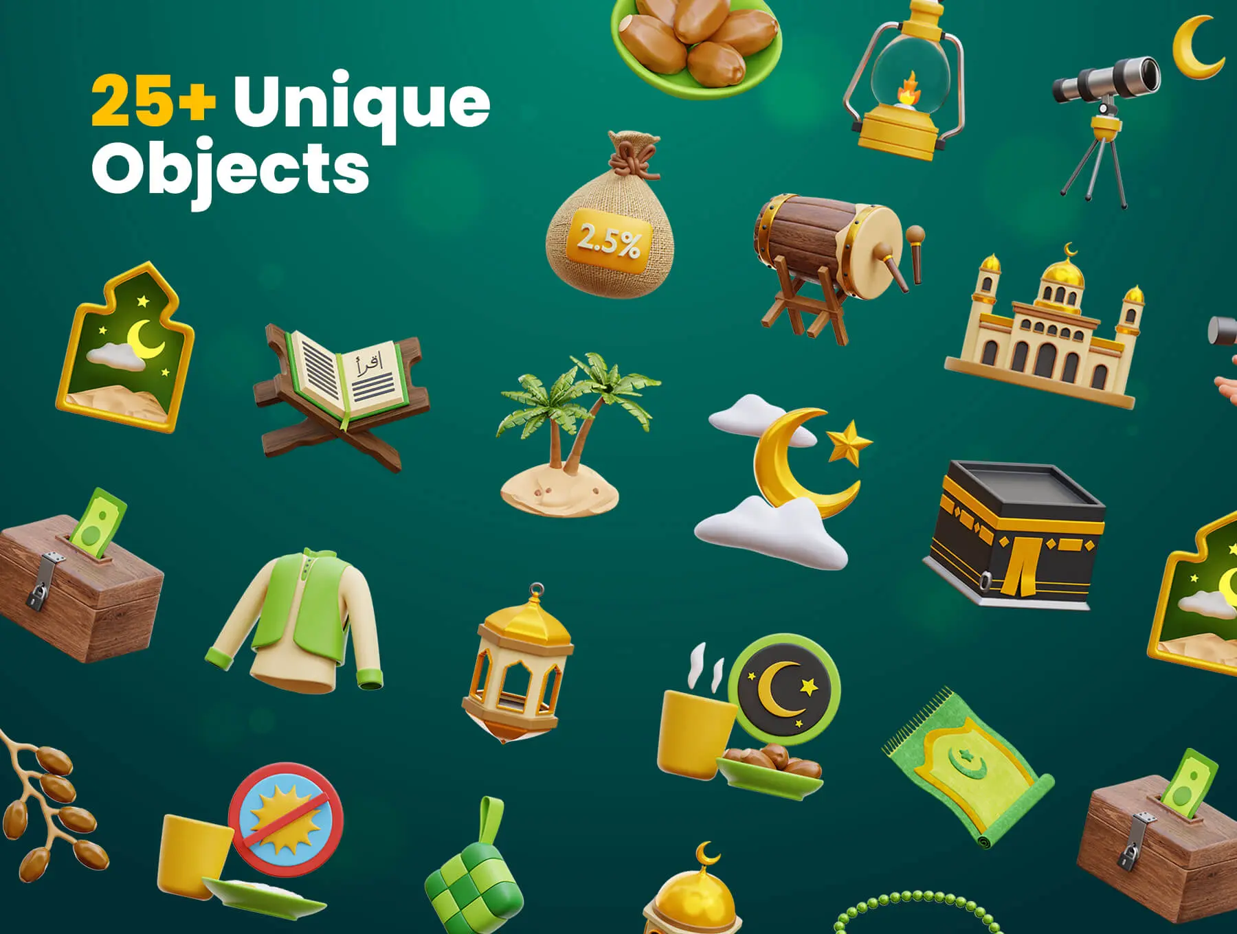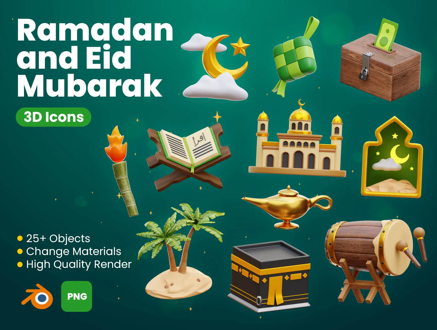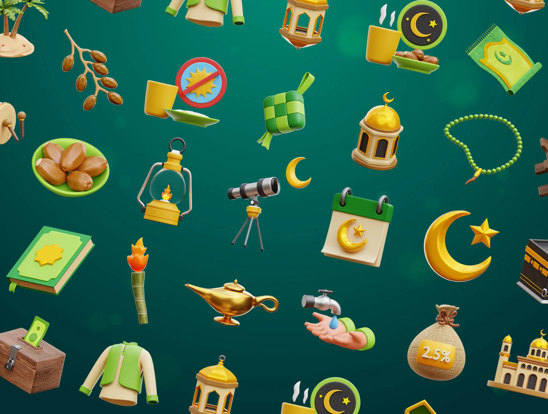 Ramadan and Eid Mubarak 3D Icons 西域穆斯林斋月印度阿拉丁3D立体卡通webp免抠图片插图插画素材