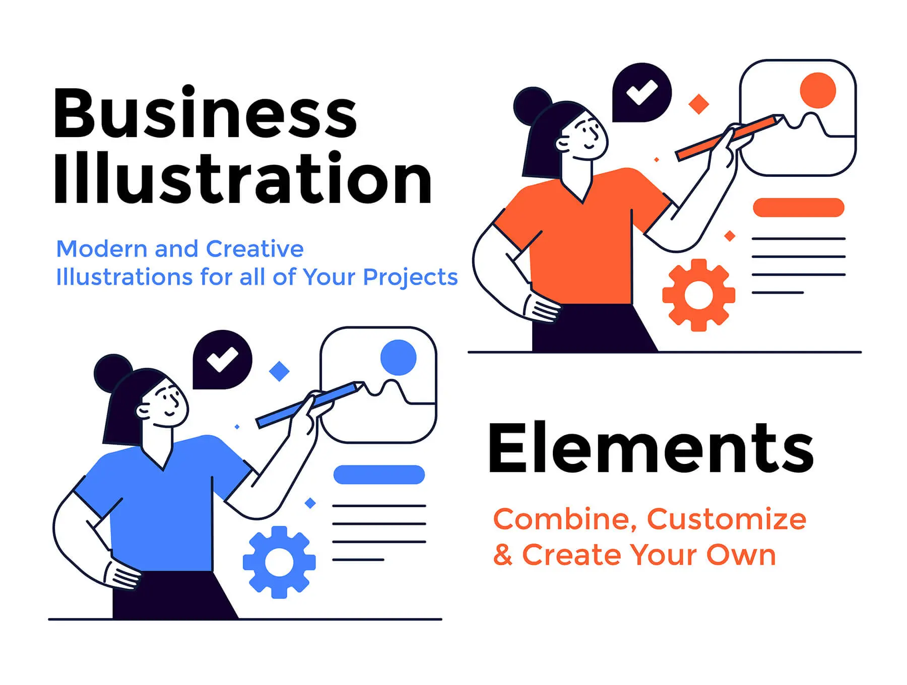 50 Digital Business Activities Illustrations 50幅手绘扁平数字业务商业提案营销演示矢量插图插画设计素材