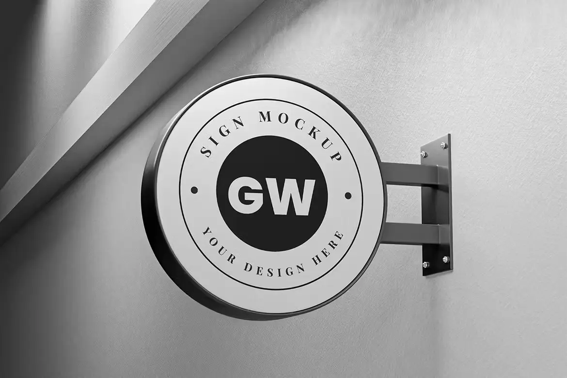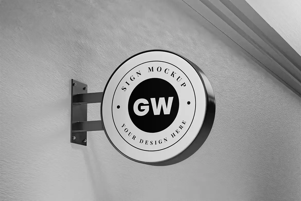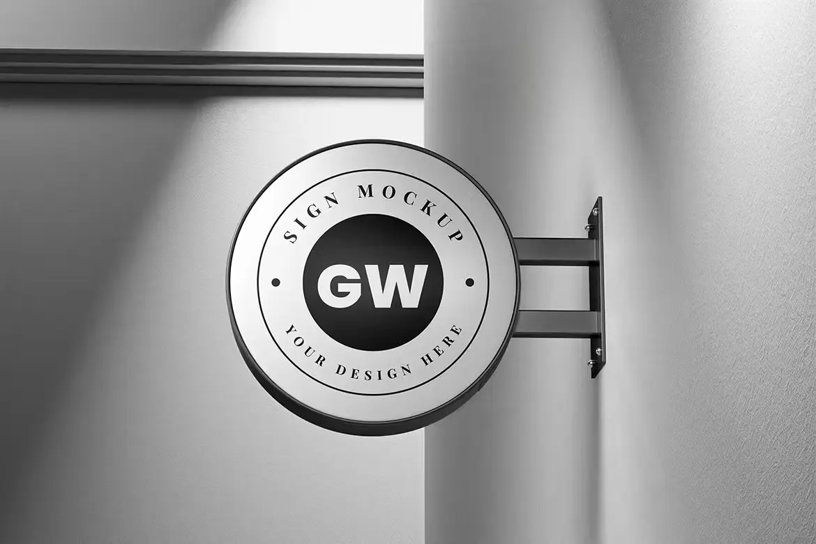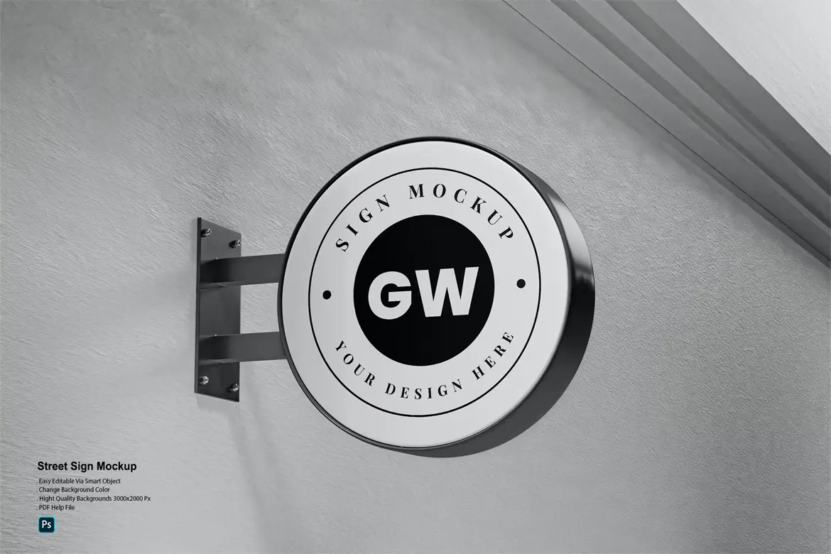 Street Sign Mockup 3款街道圆形挂墙门店招牌模型设计贴图ps展览展示样机素材模板