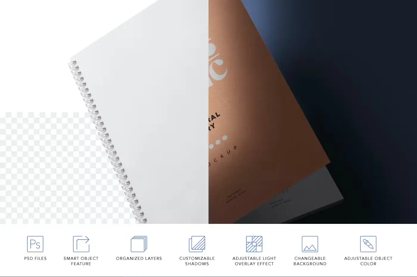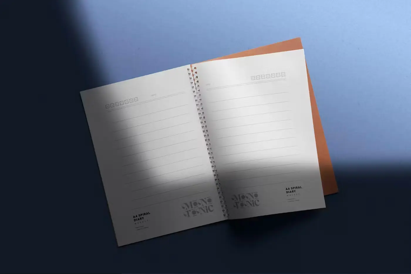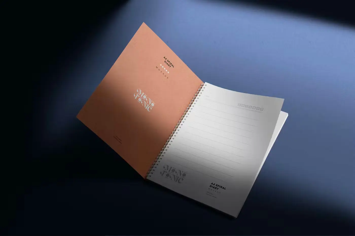 A4 Spiral Diary Mockups 4款螺旋圈装A4记事笔记本模型品牌展示设计贴图ps办公文具样机素材模板