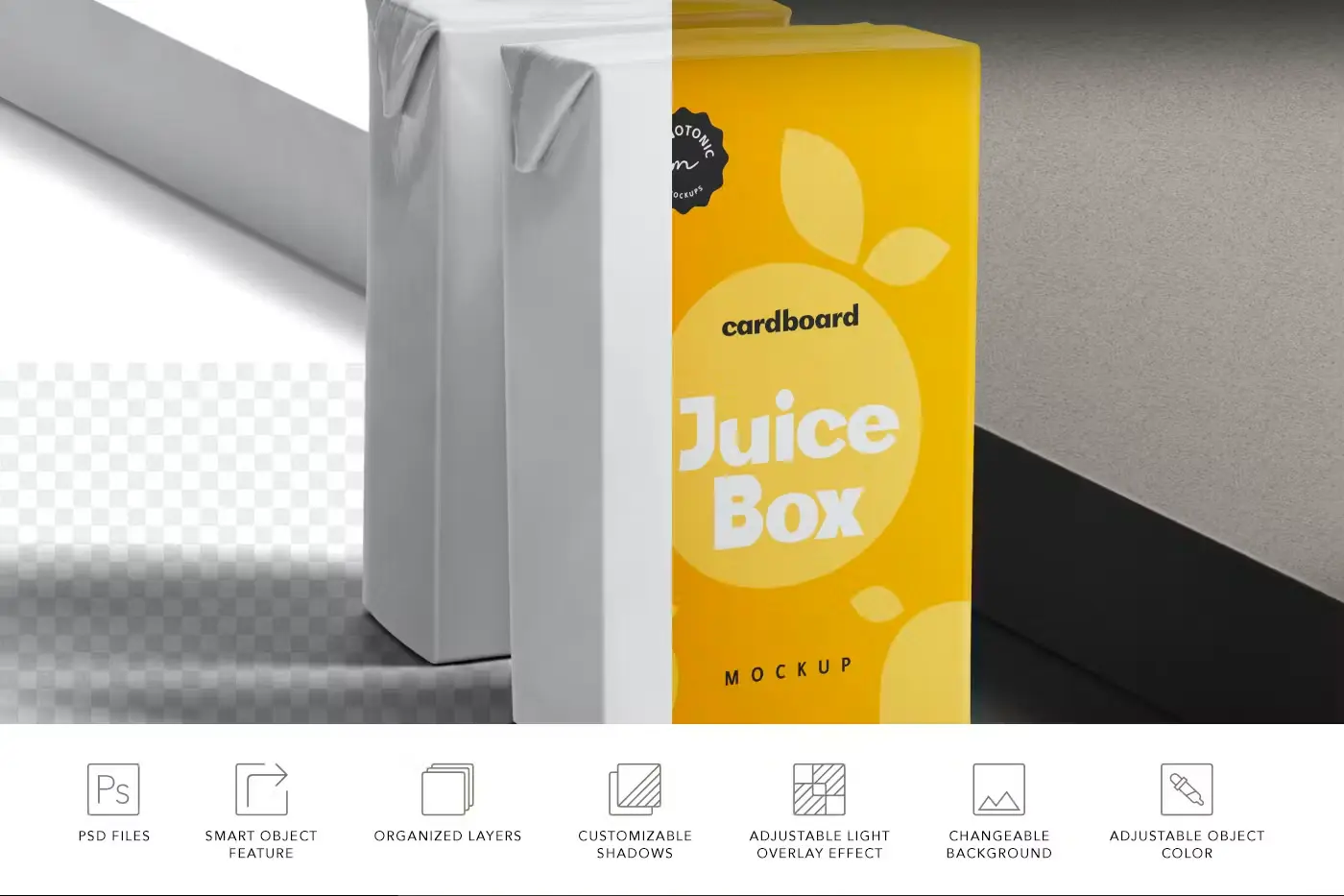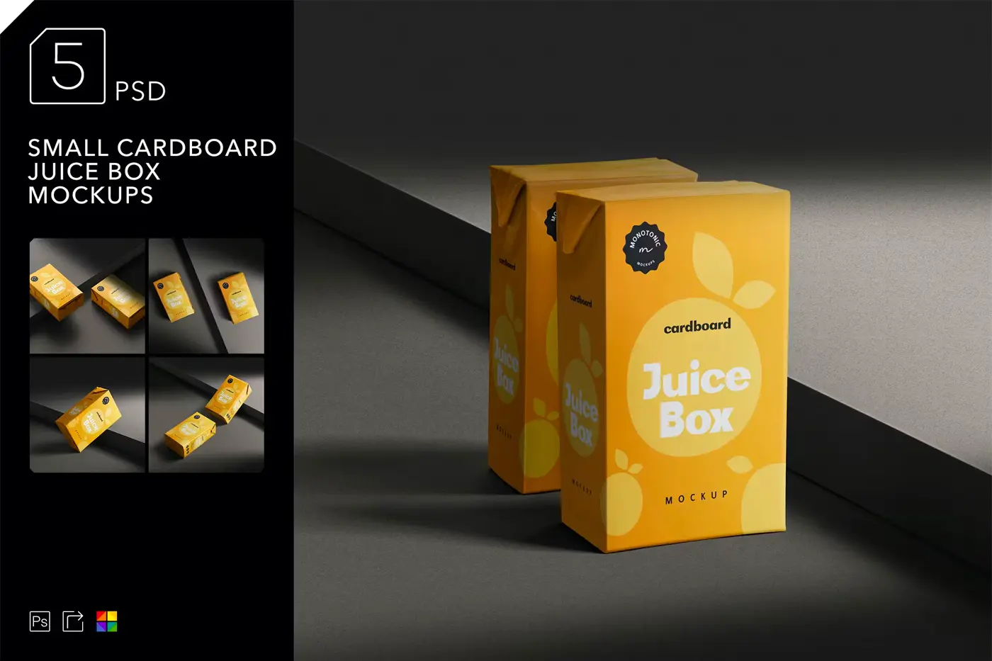 Small Cardboard Juice Box Mockups 5张小纸板果汁饮料牛奶纸盒装模型品牌logo展示设计贴图ps包装样机素材模板