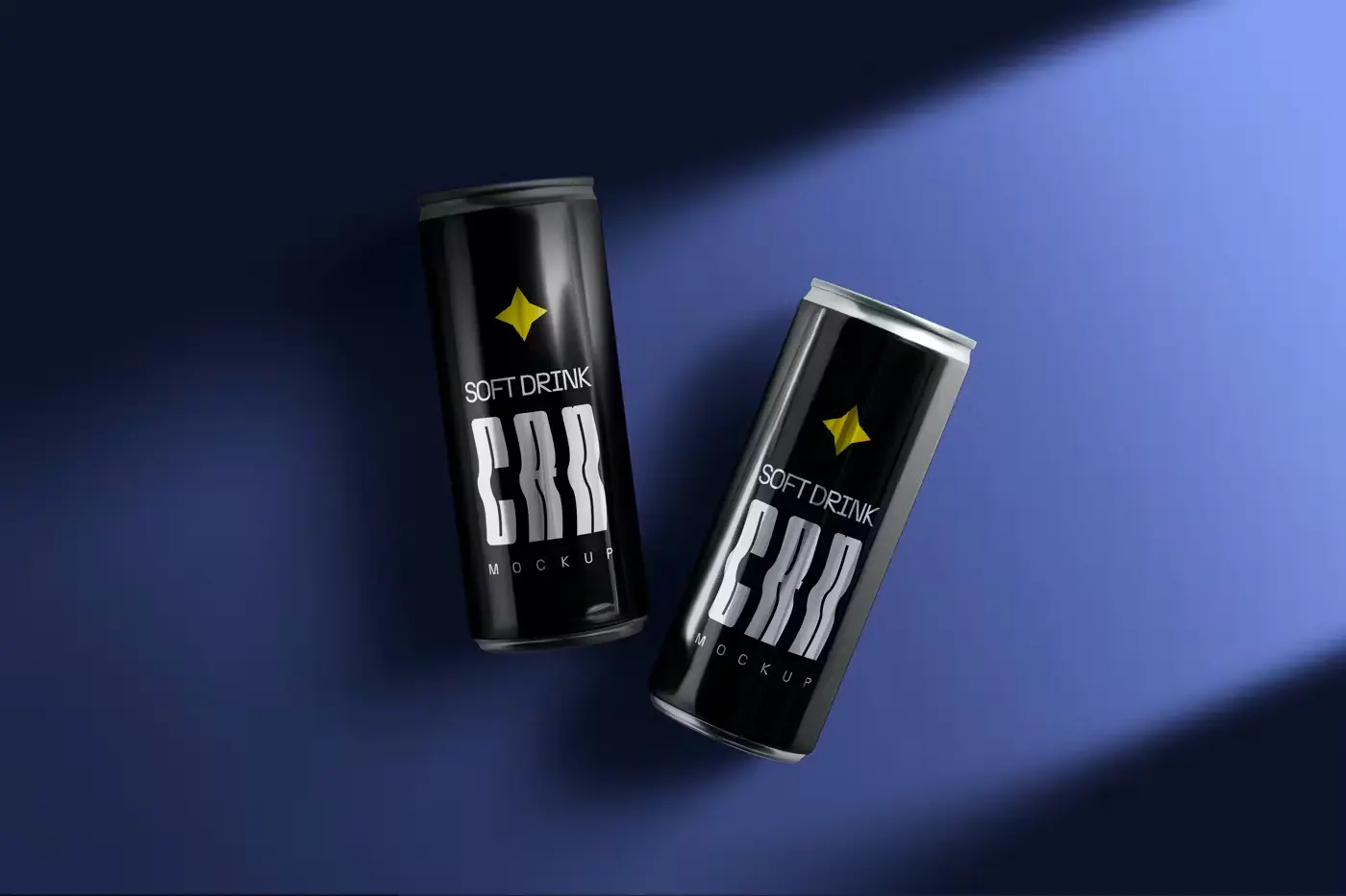Slim Soft Drink Can Mockups 5款铝制细长易拉罐饮料模型罐身品牌logo设计贴图ps包装样机素材模板
