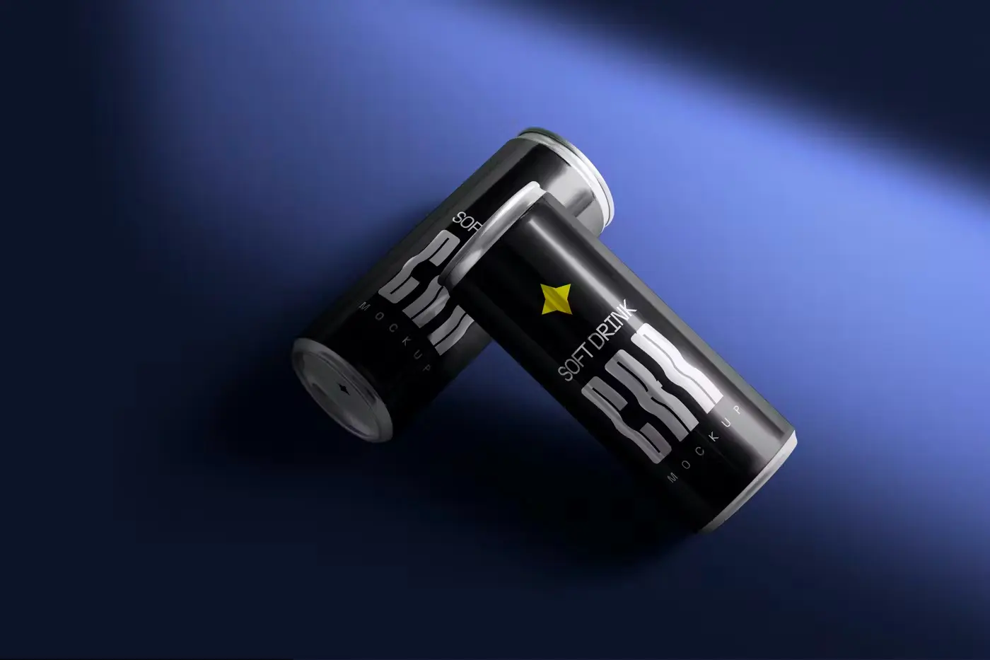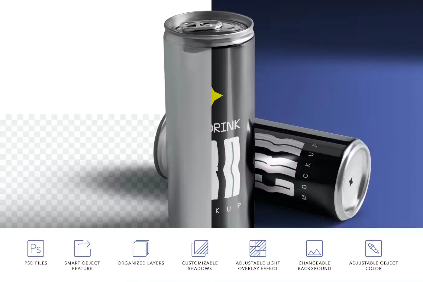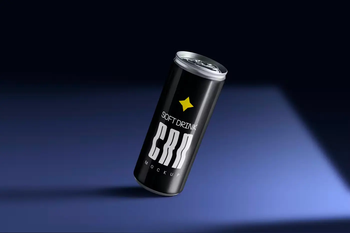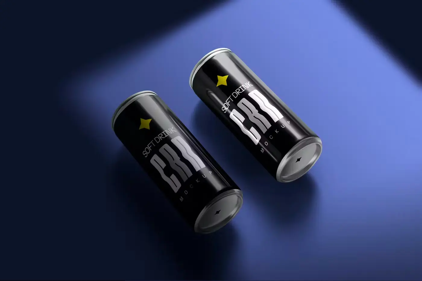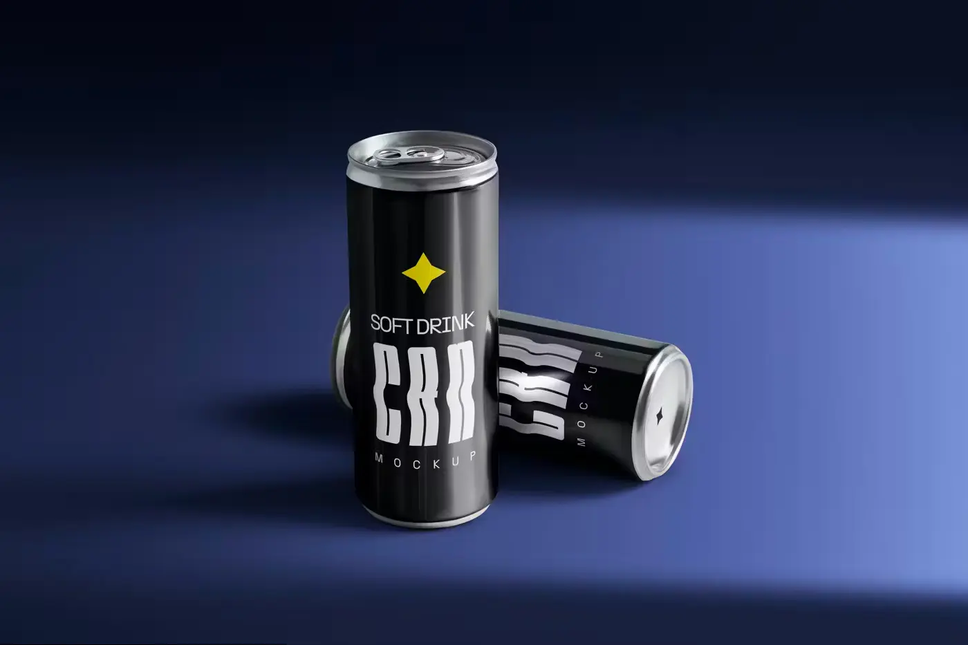 Slim Soft Drink Can Mockups 5款铝制细长易拉罐饮料模型罐身品牌logo设计贴图ps包装样机素材模板