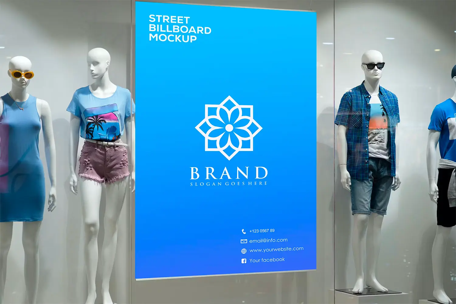 Billboard Mockup 服装店展示橱窗服装商场广告海报展示样机素材