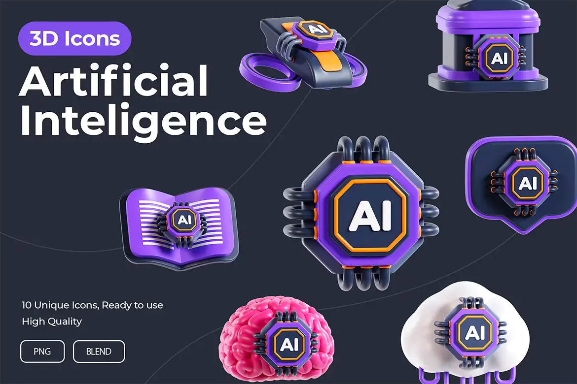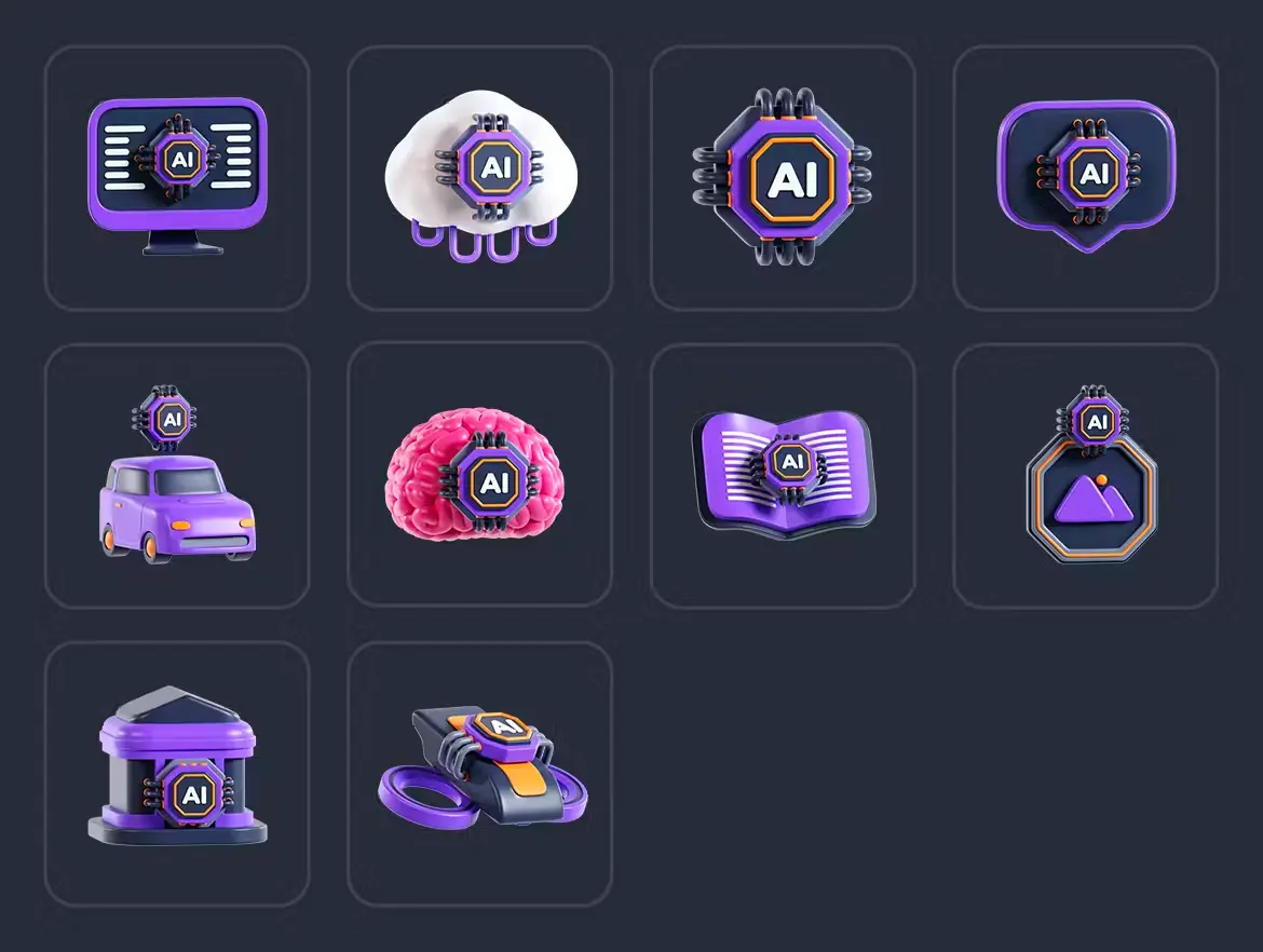 Artificial Intelligence 3D Icons 10款科技未来Ai人工智能设备3D图标icon设计素材webp免抠图片