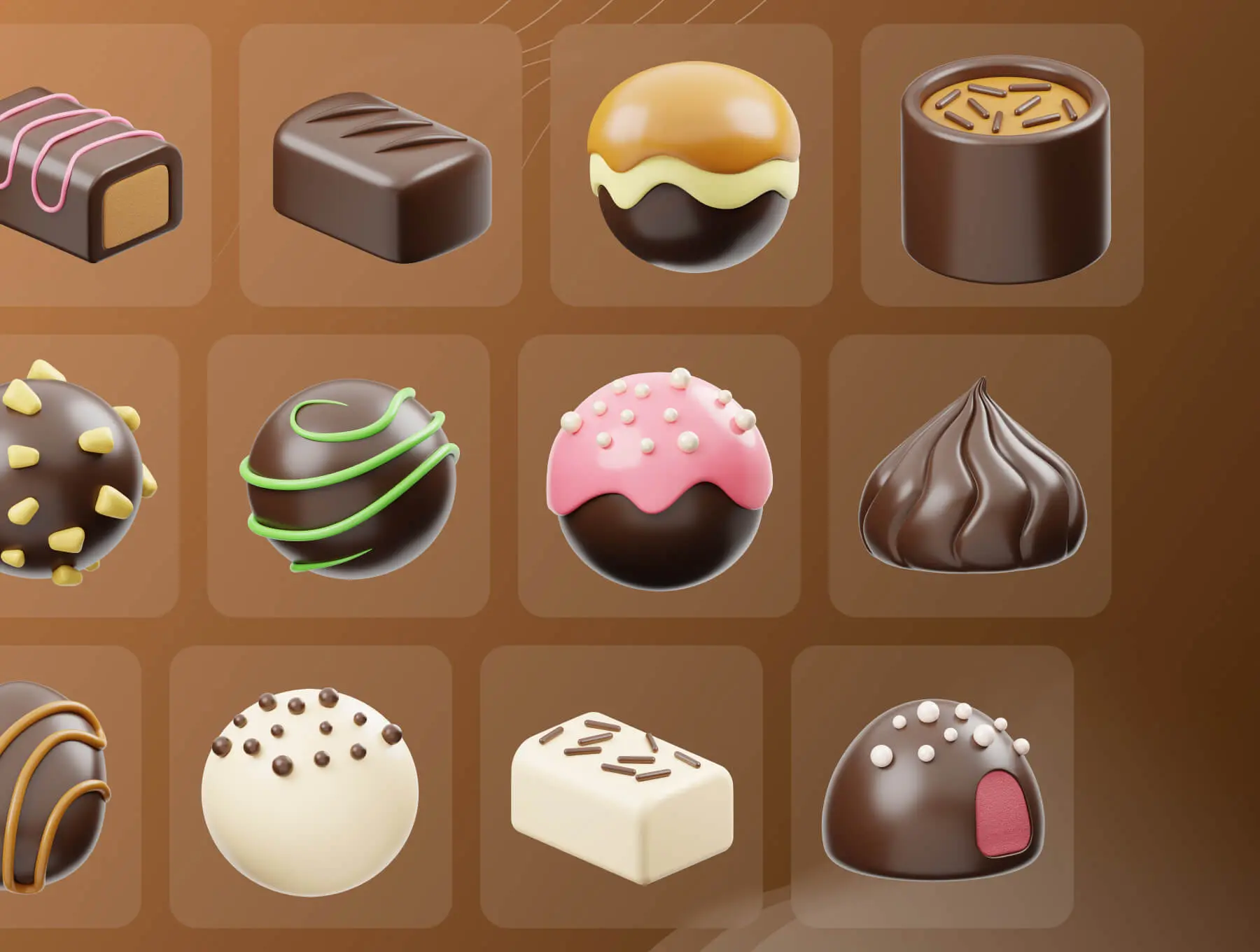 Chocolate 3D Icon 20款卡通有趣巧克力糕点甜点3D三维图标Icons设计素材Blender模型