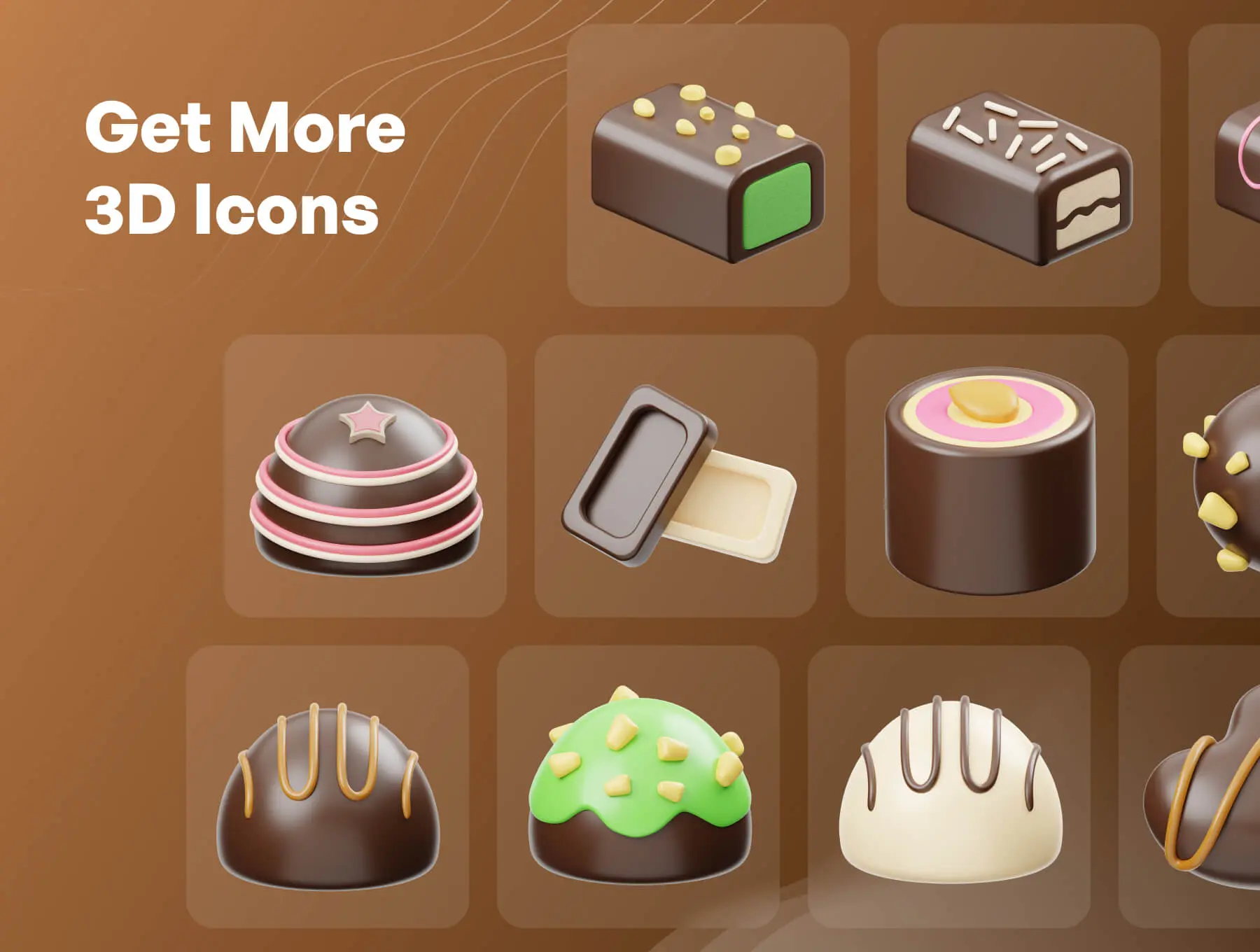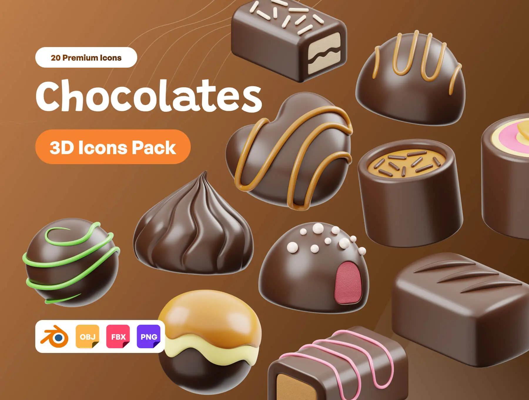 Chocolate 3D Icon 20款卡通有趣巧克力糕点甜点3D三维图标Icons设计素材Blender模型