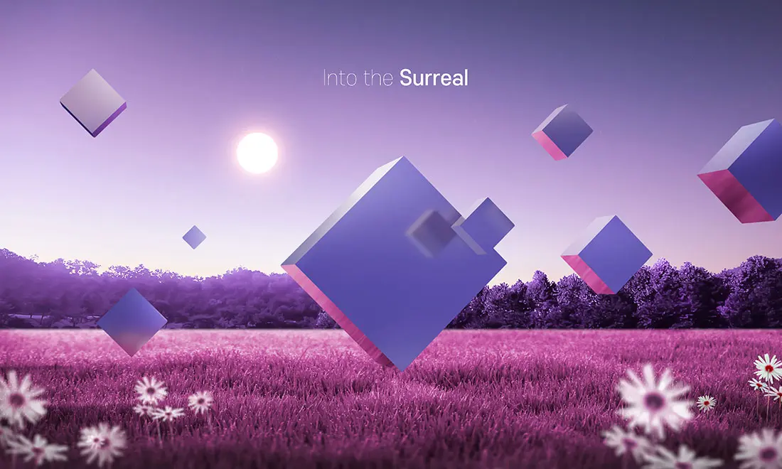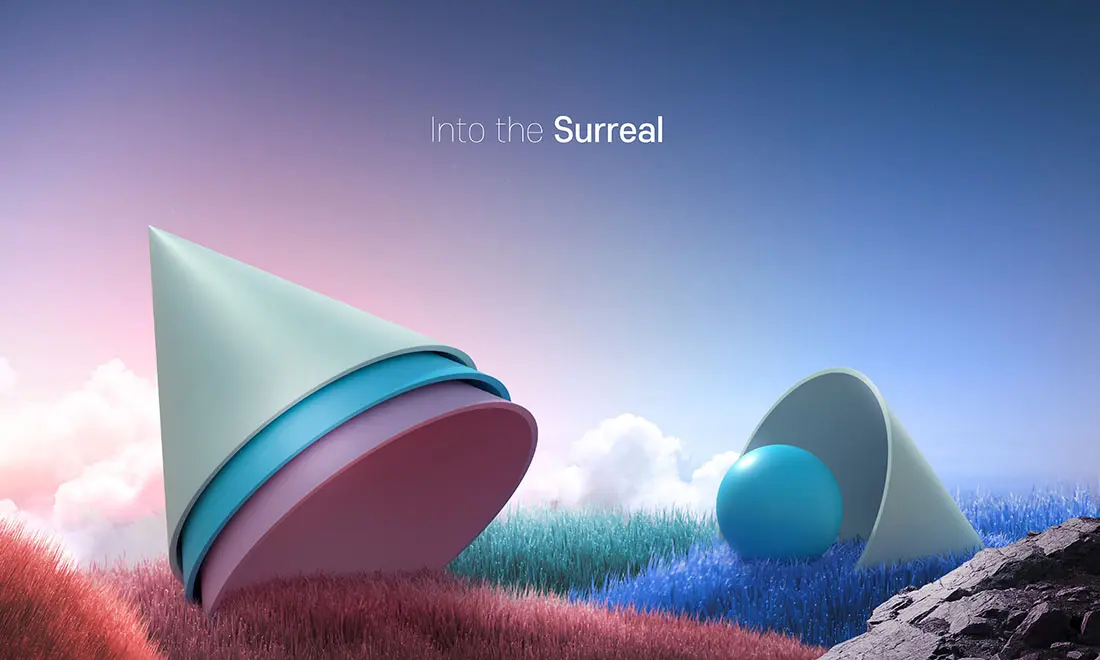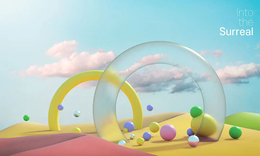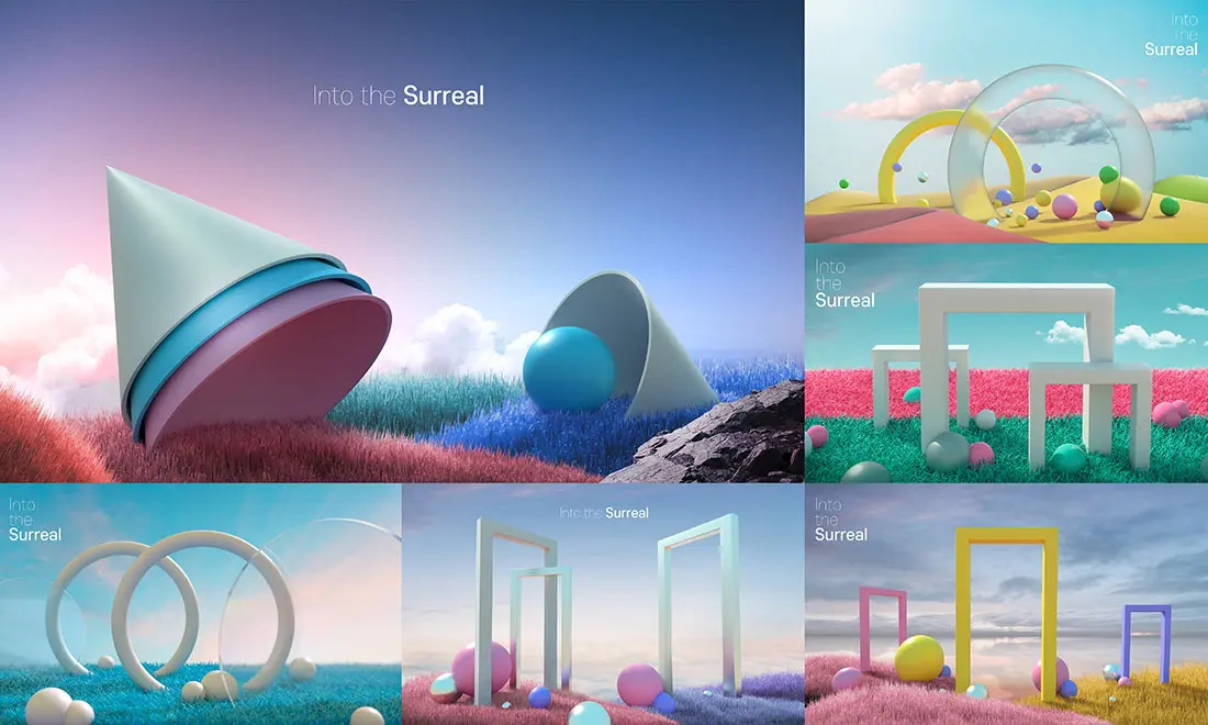 Into the Surreal 15款梦幻超现实主义科幻3D几何图形抽象艺术主视觉海报设计ps素材