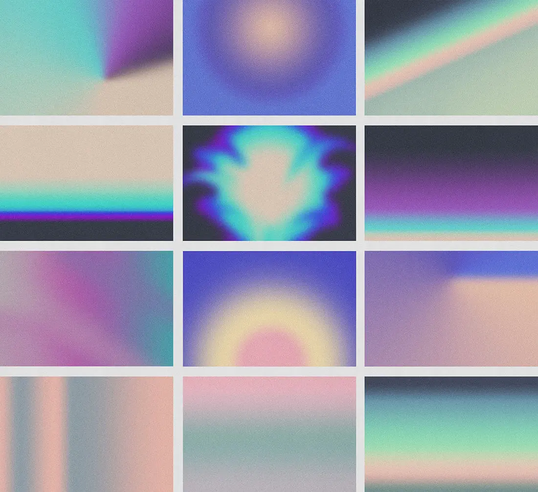 NOSTALGIA GRADIENT Textures & Shapes 36款70年代怀旧复古迷幻颗粒噪点弥散光渐变错位艺术背景图片素材