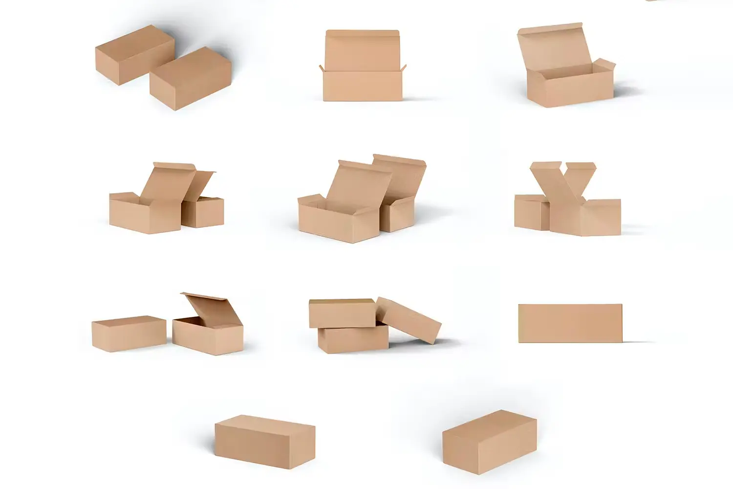 Rectangle Kraft Cardboard Paper Box Mockup 长方形牛皮纸鞋盒纸箱快递打包盒包装设计ps样机素材展示效果图