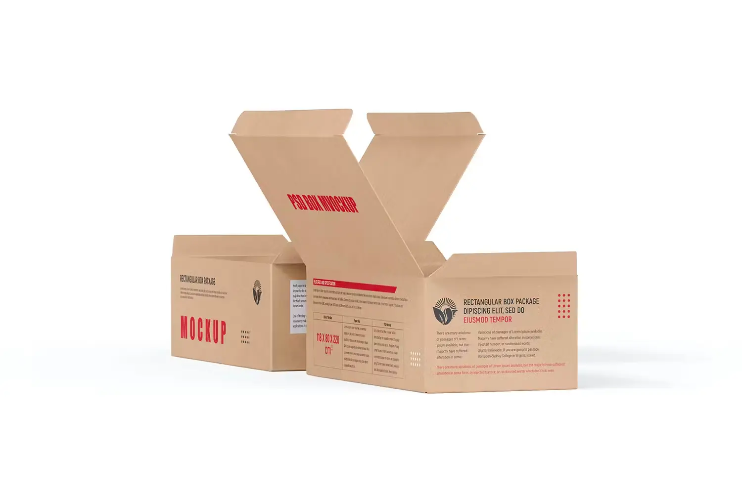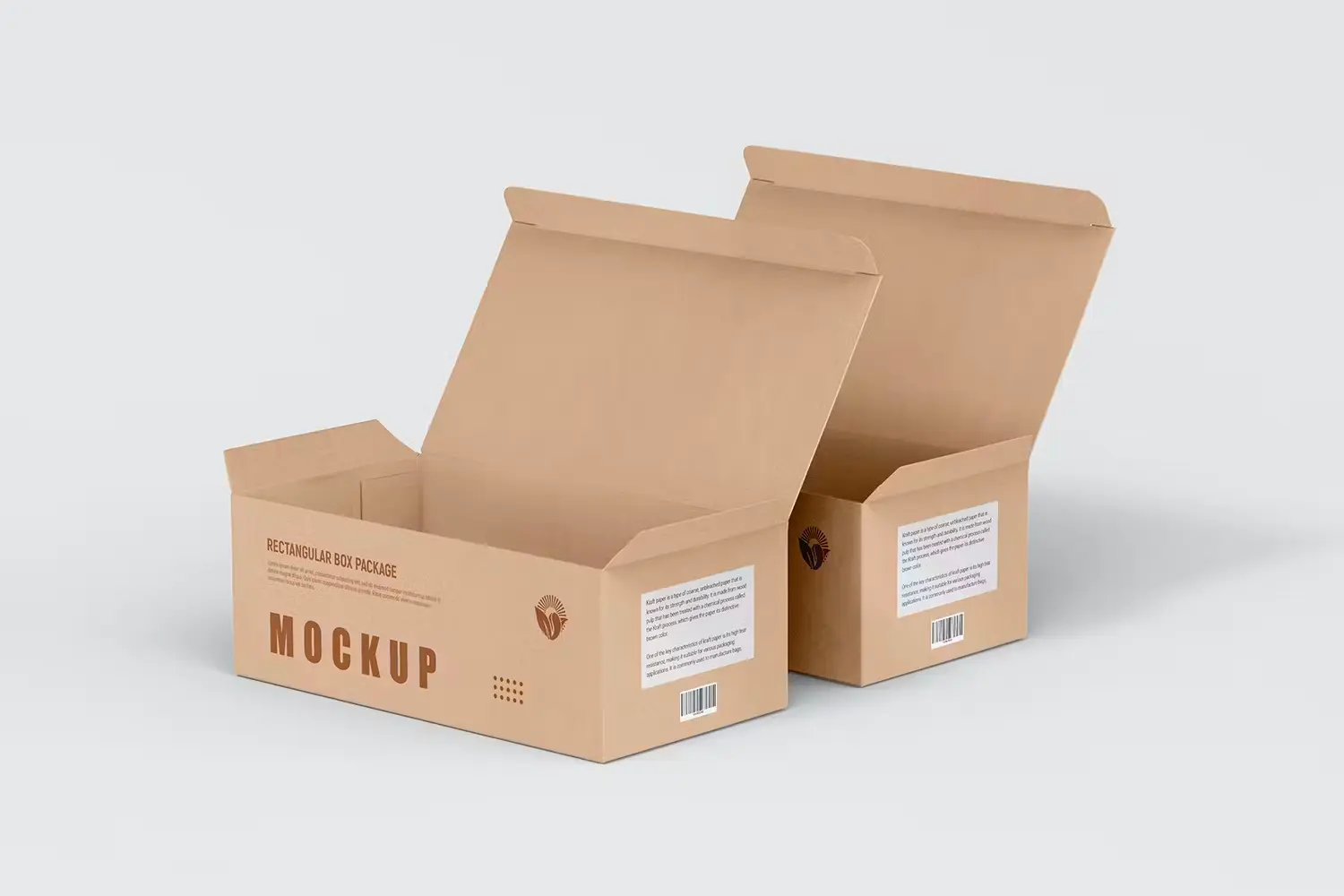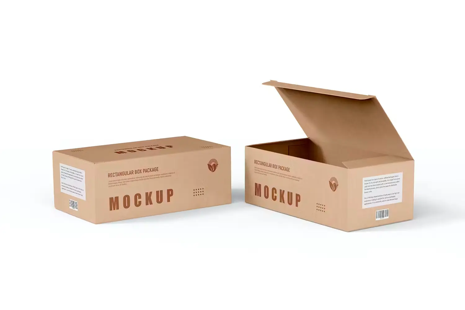 Rectangle Kraft Cardboard Paper Box Mockup 长方形牛皮纸鞋盒纸箱快递打包盒包装设计ps样机素材展示效果图