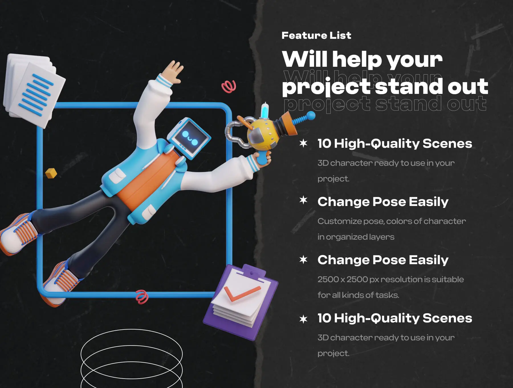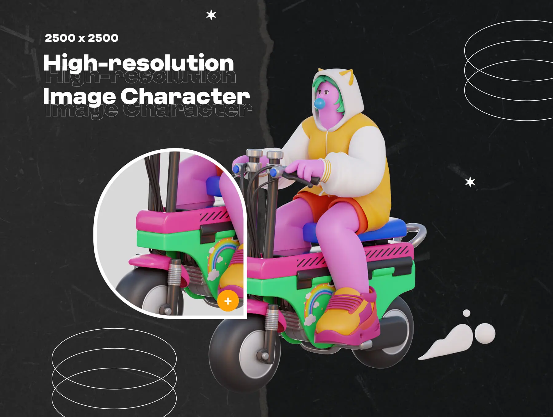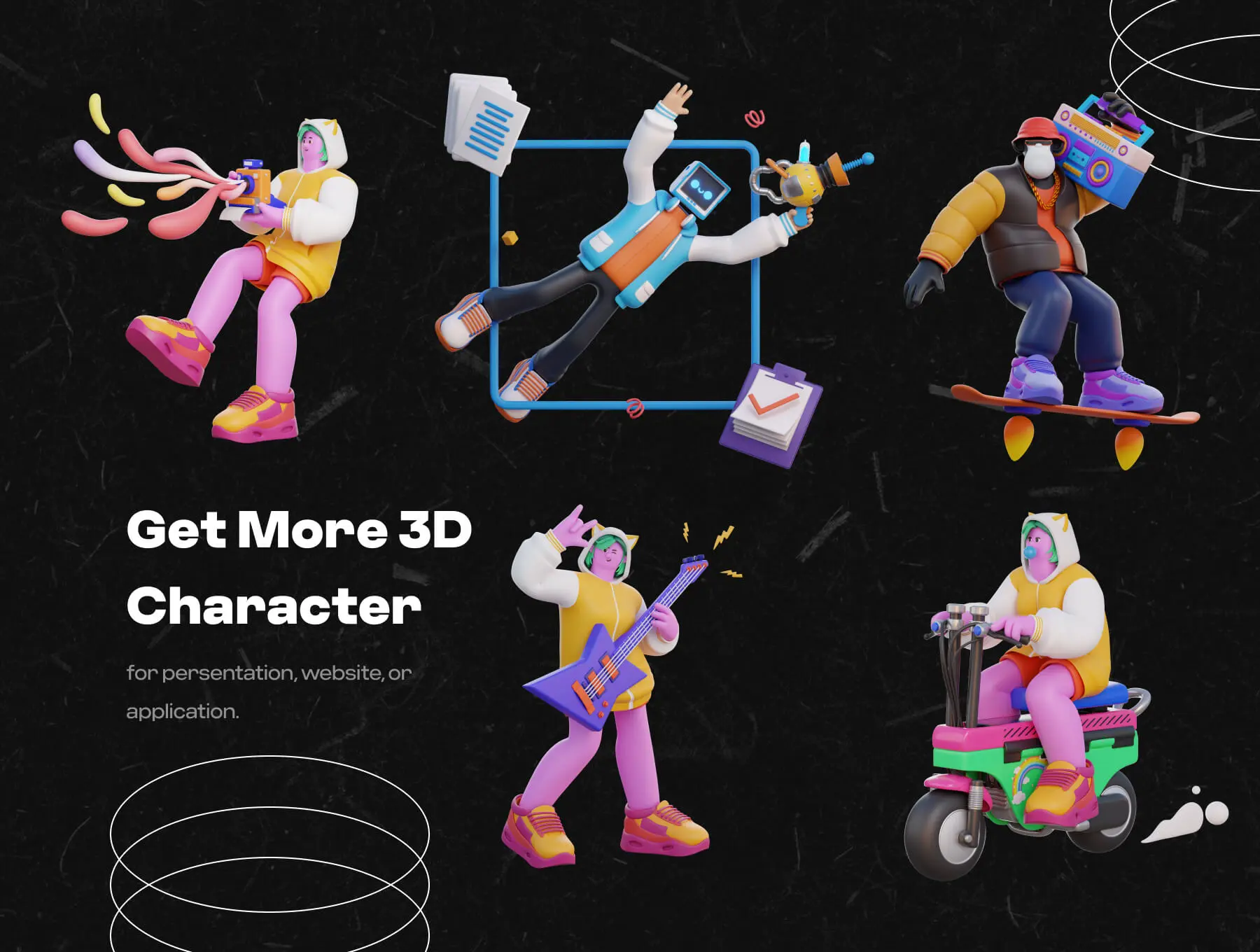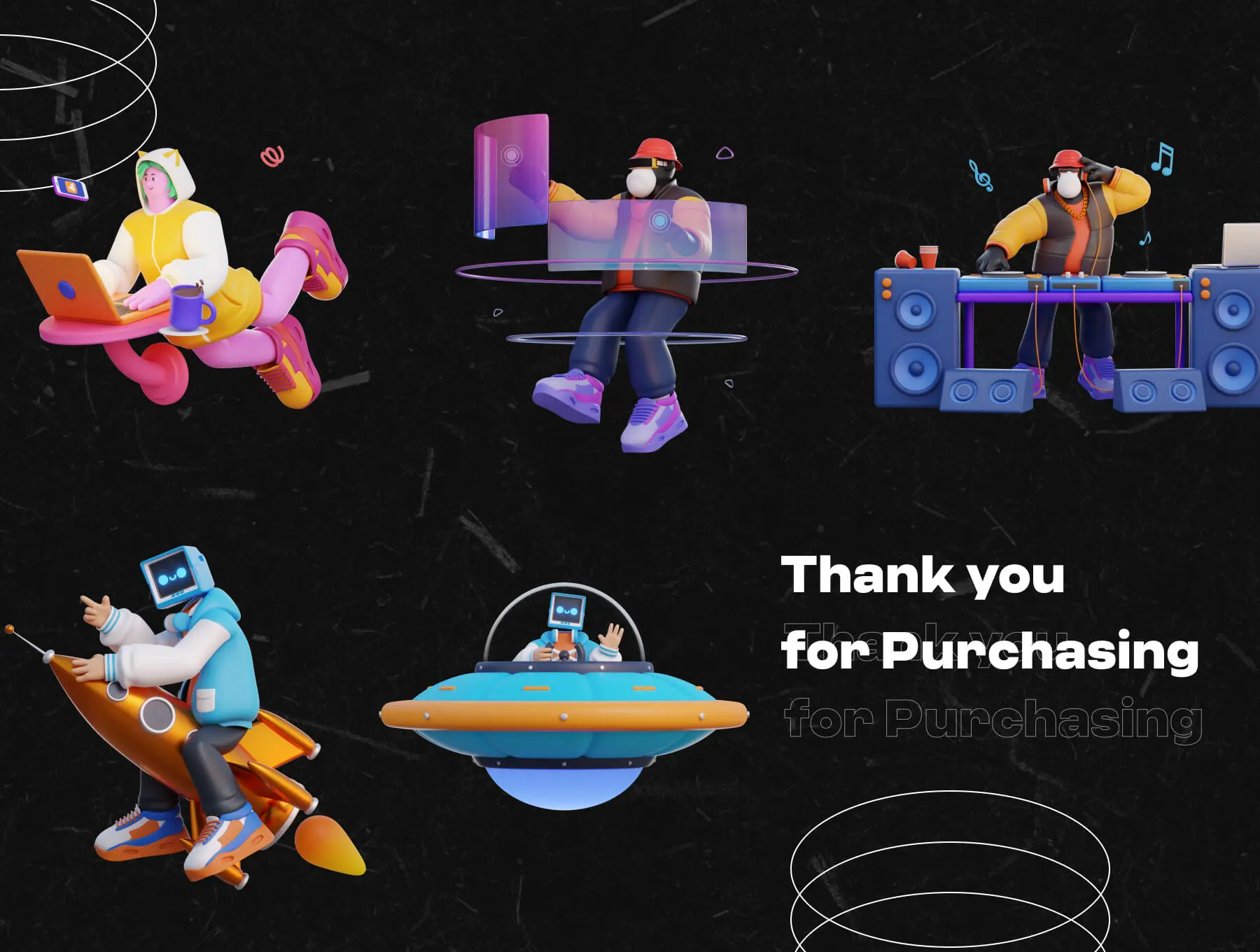 3D Hi Fi Retro Futuristic Character 3D立体创意潮流复古未来主义音乐潮人插图插画webp免抠设计素材