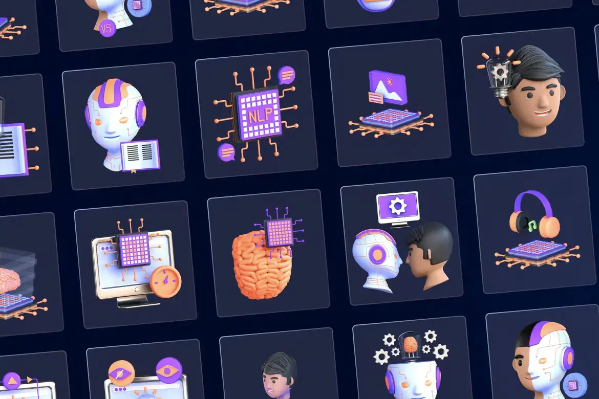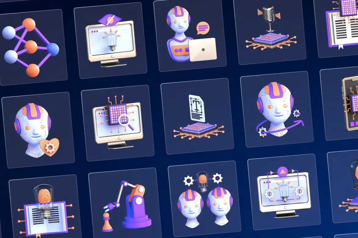 3D Artificial Intelligence Icons 30款人工智能Ai科技应用场景演示3D图标icon站位插图插webp免抠图片设计素材