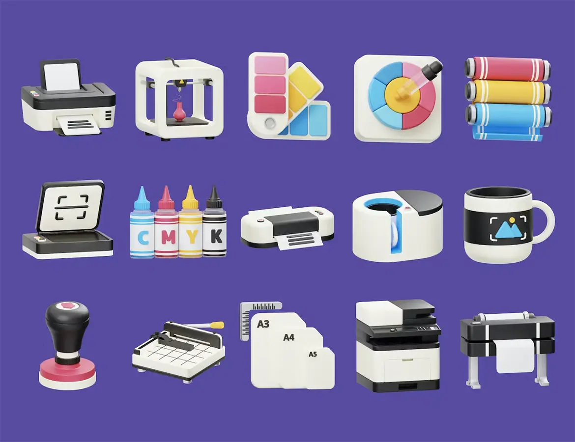 Digital Printing 3D Icon 15款数字打印色卡墨盒打印机3D图标